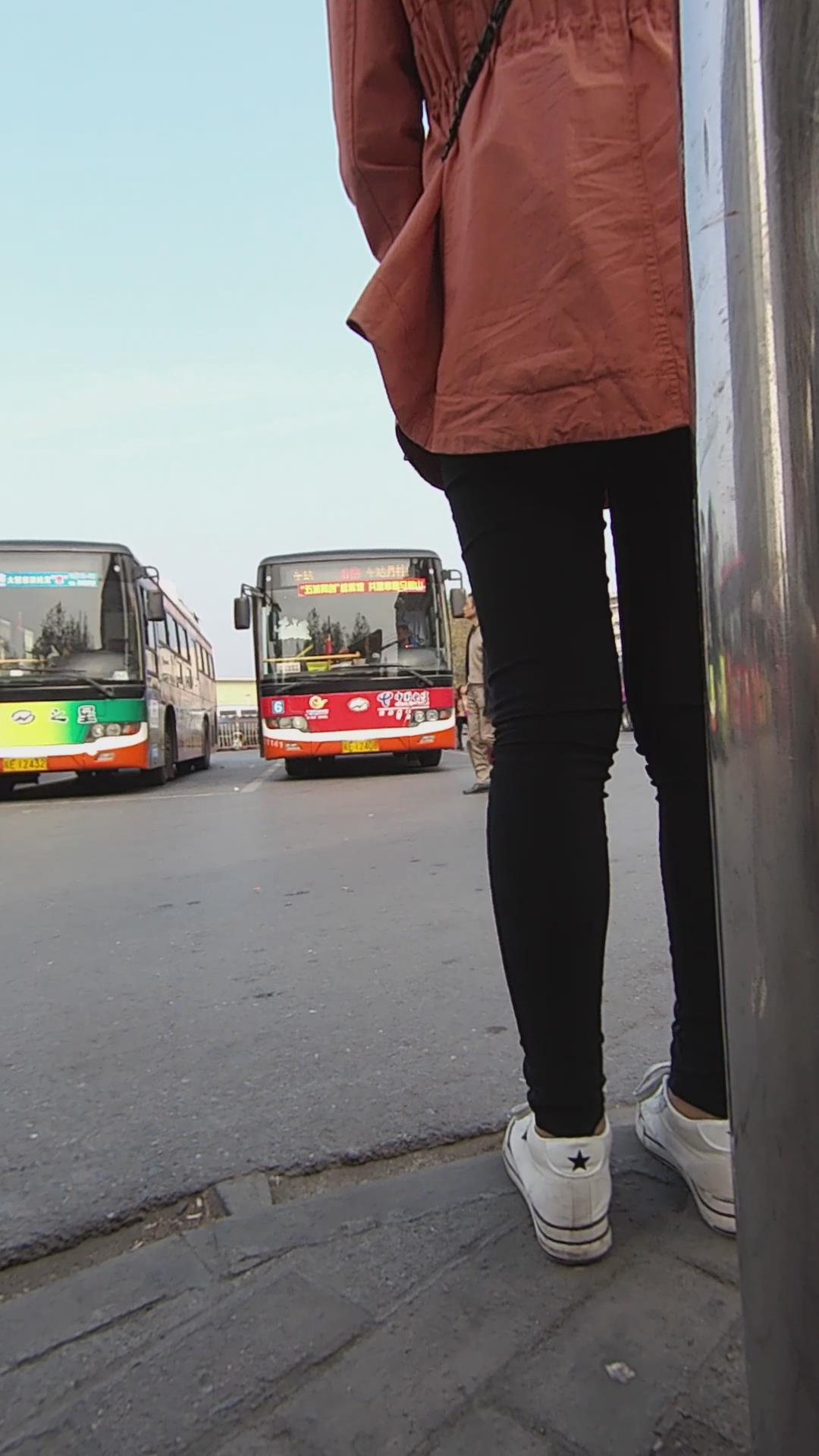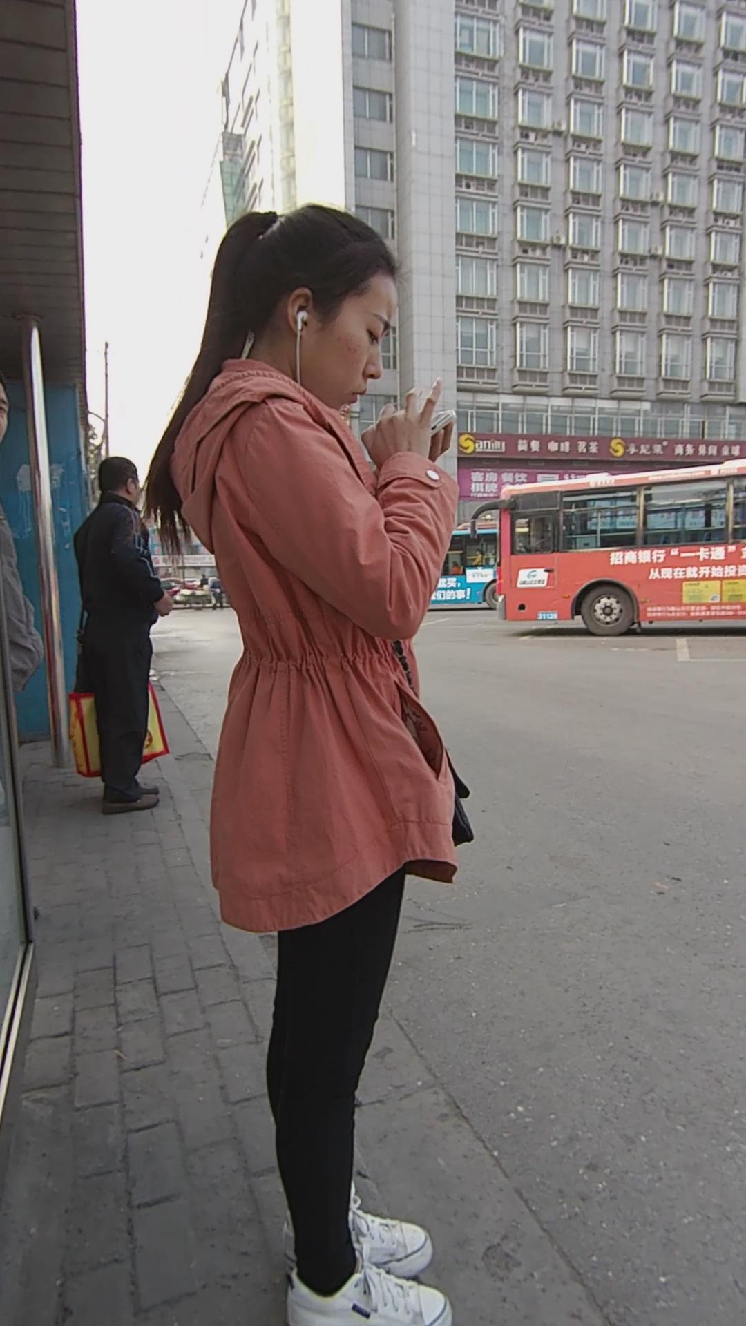 公交站等车的清纯马尾辫小美女 编号5567
