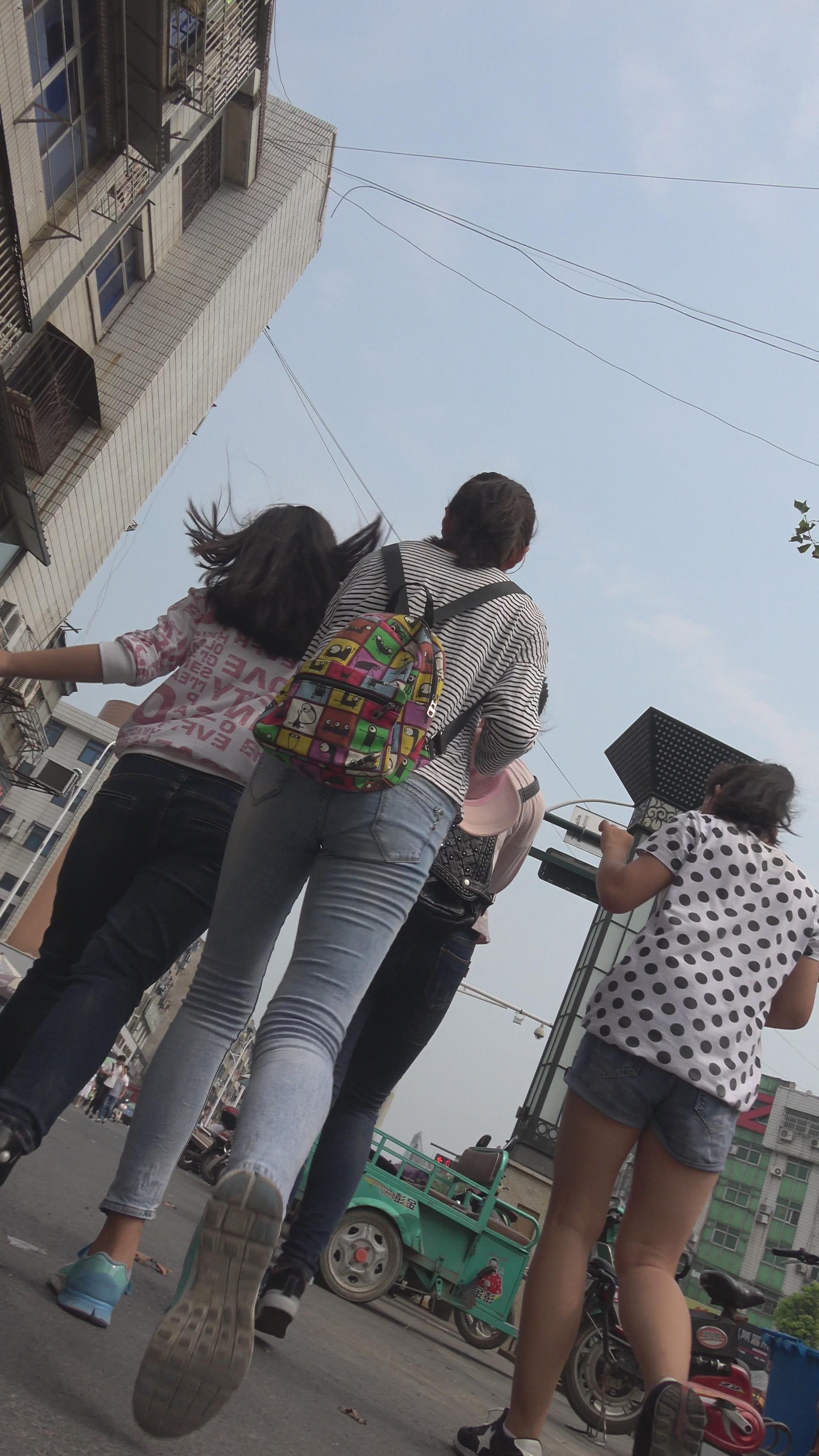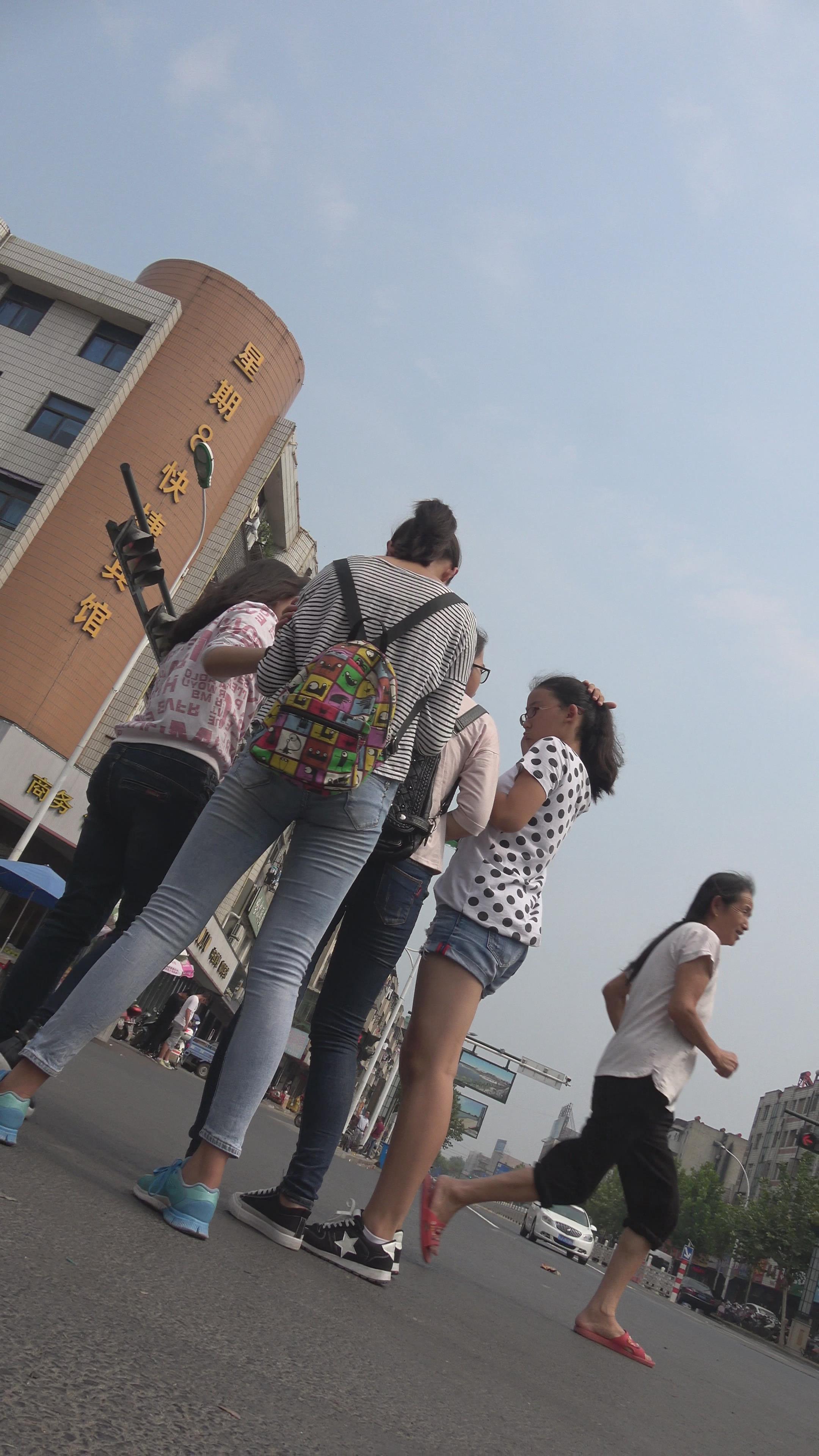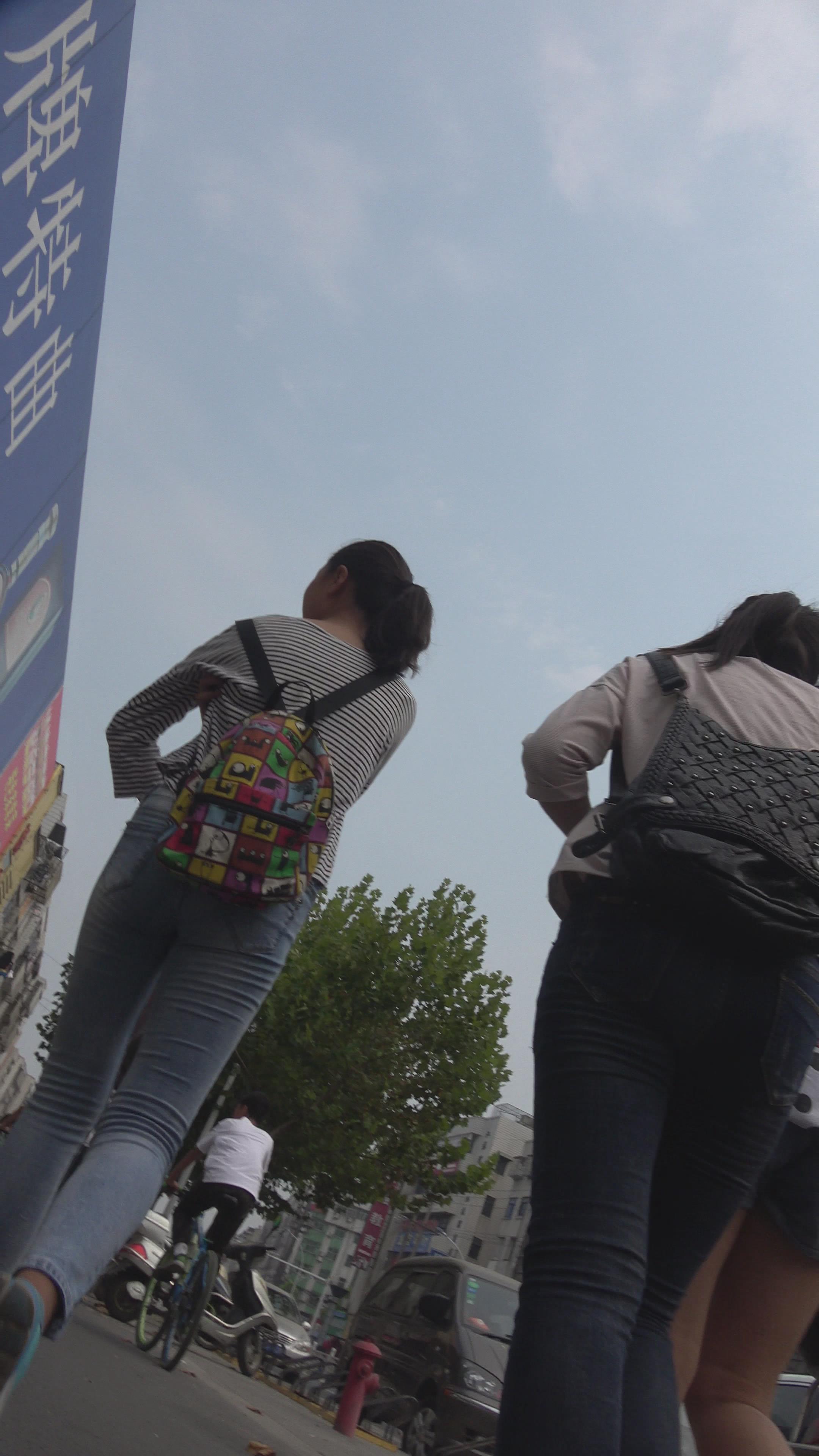 紧身蓝色牛仔裤学生妹 编号5591