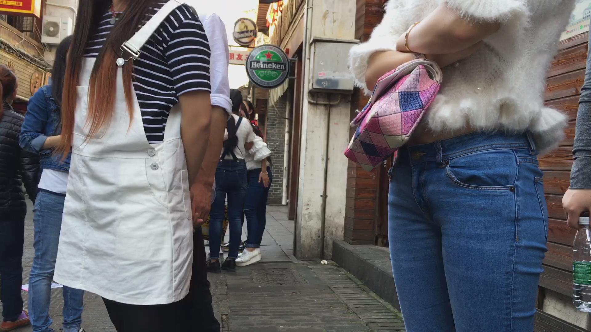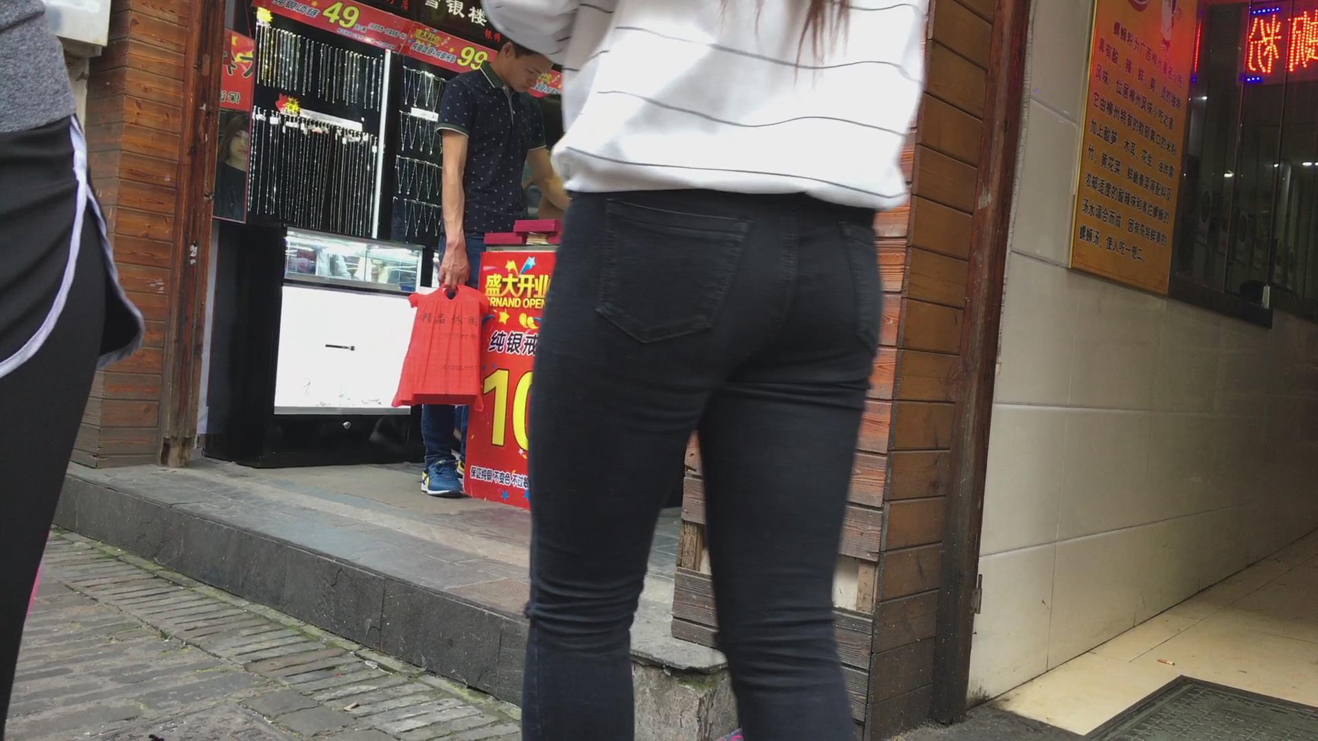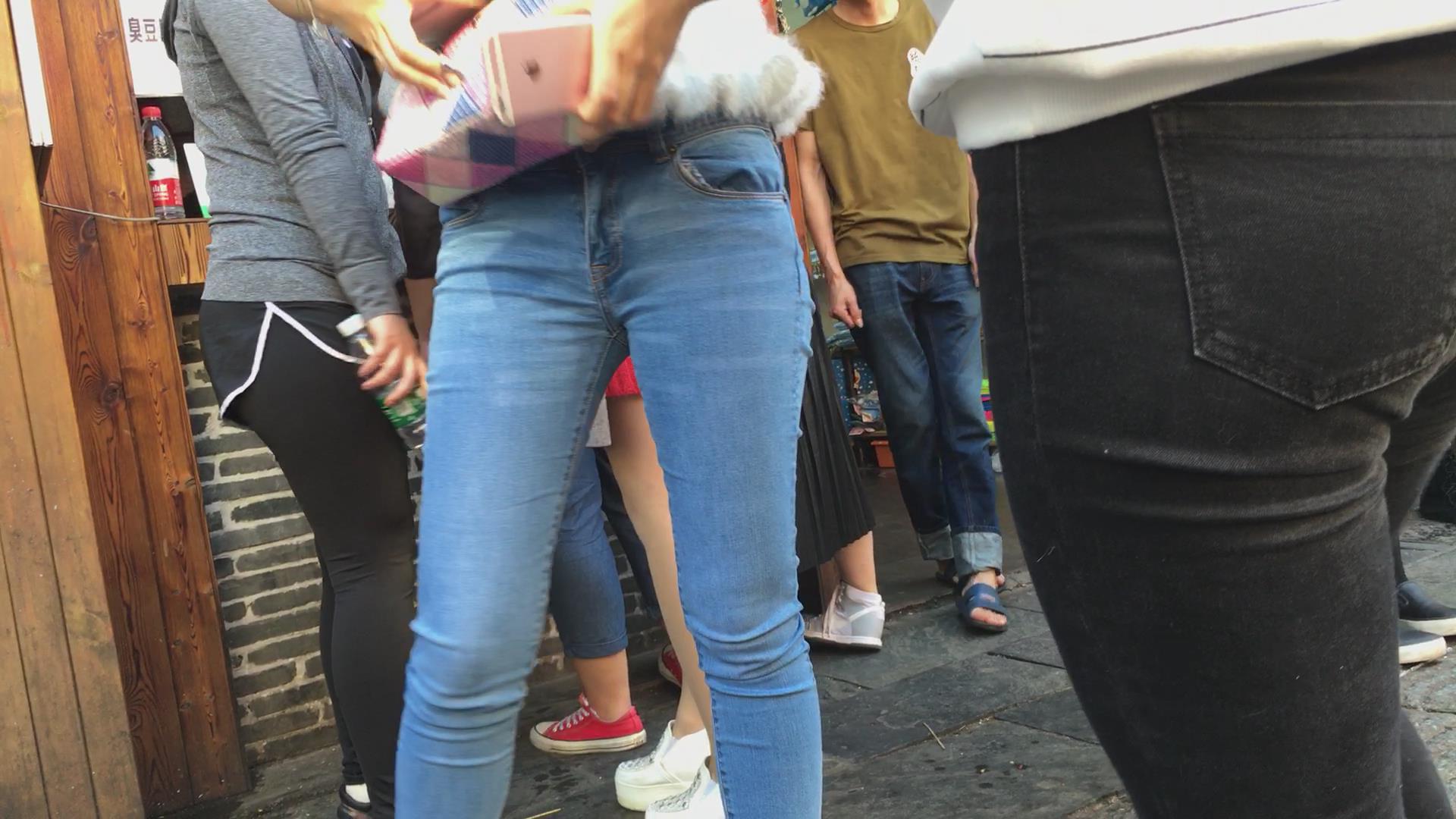 紧身蓝色牛仔裤美三角女孩 编号5592