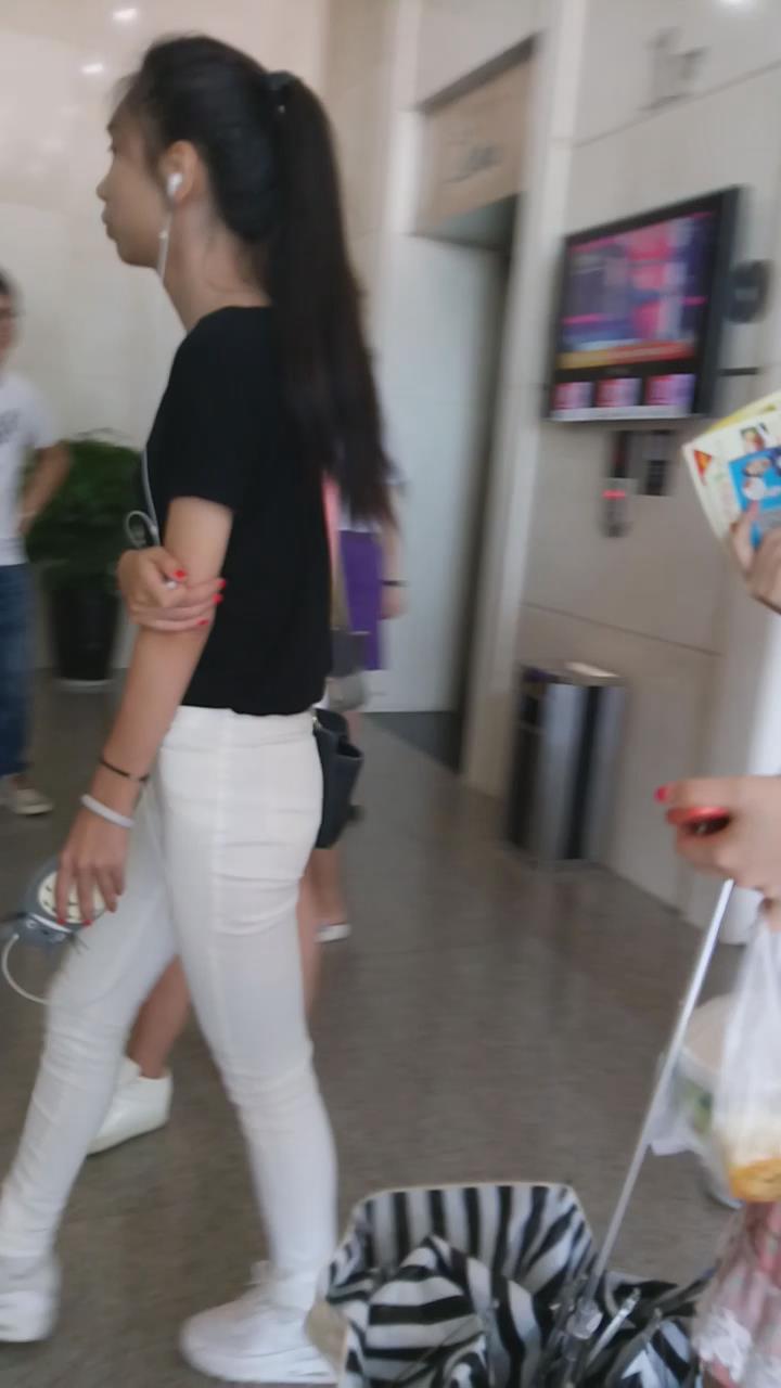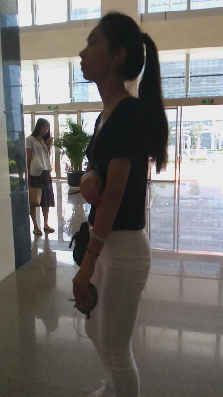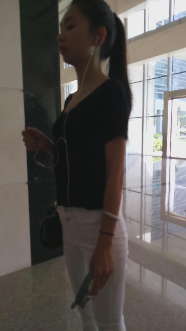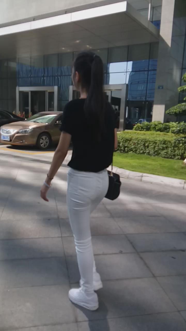 紧身白裤马尾辫美眉 编号5603