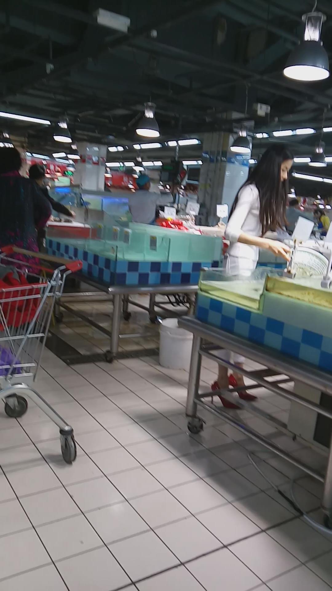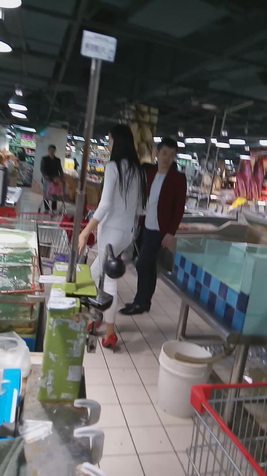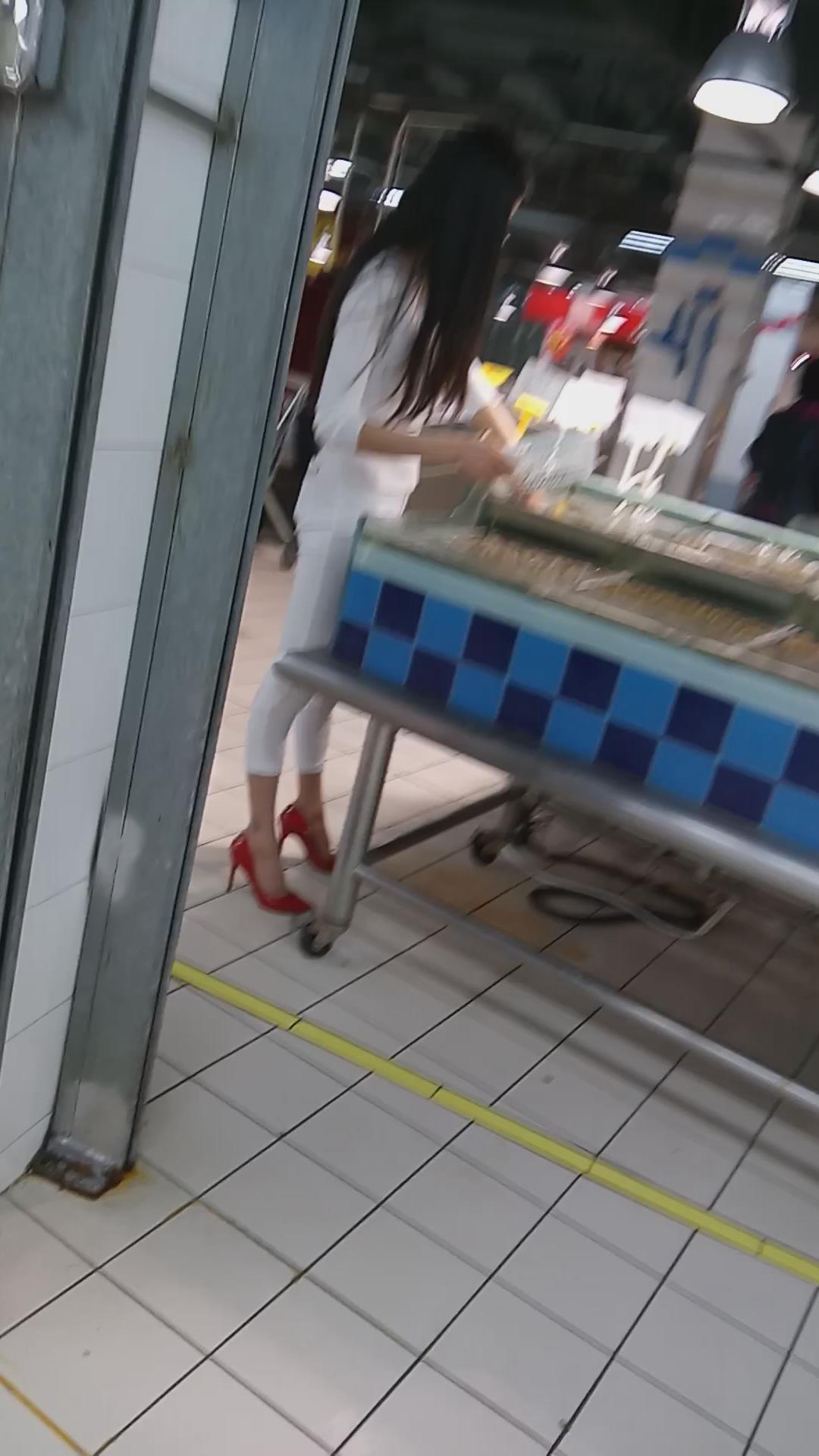 高挑紧身白裤红色高跟鞋美女 编号5616