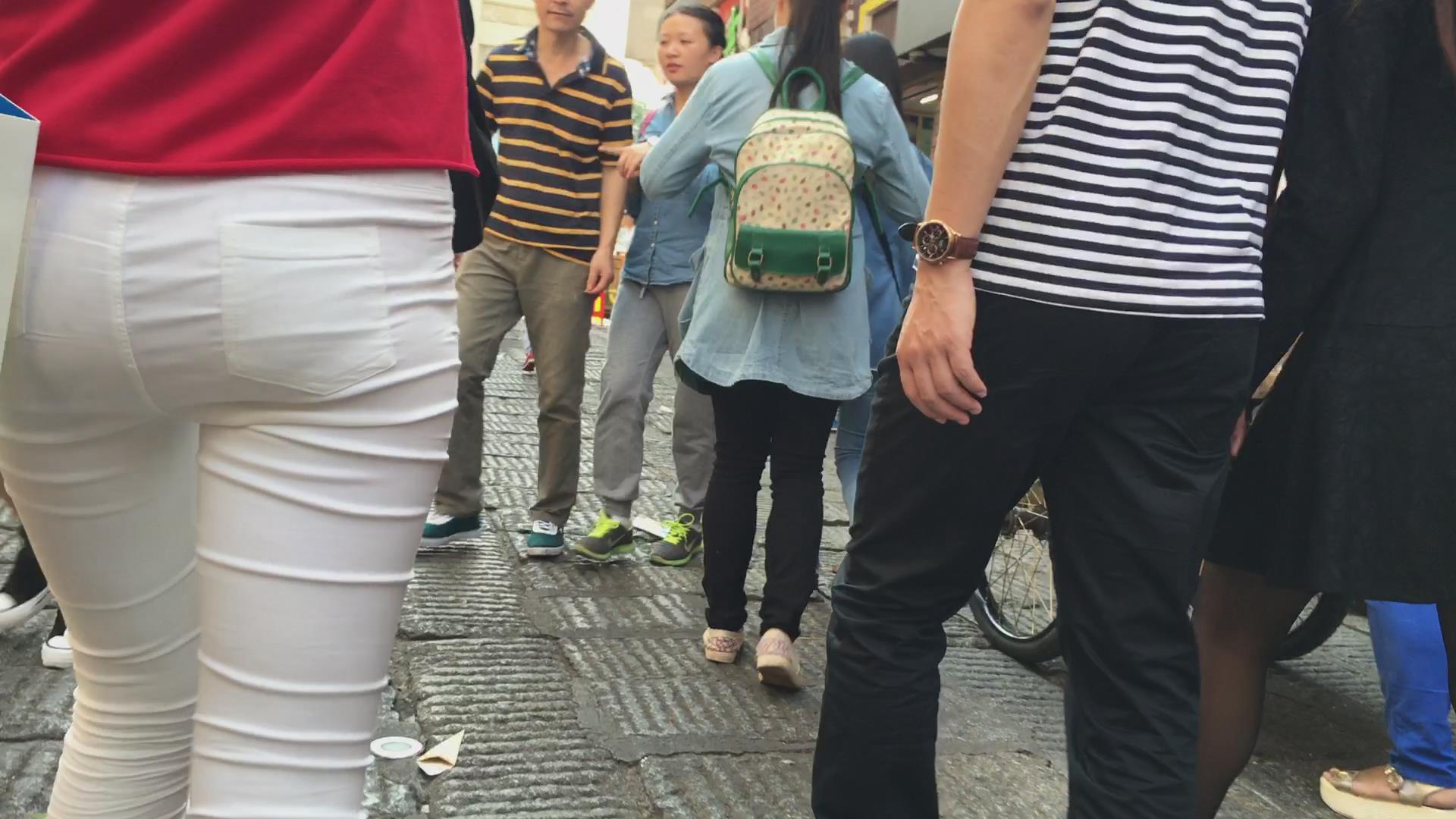 紧身白裤斑点内内红衣小美女 编号5618