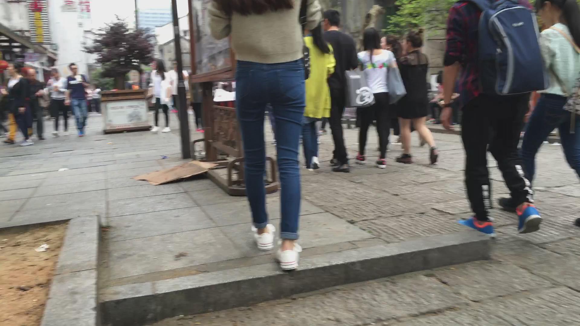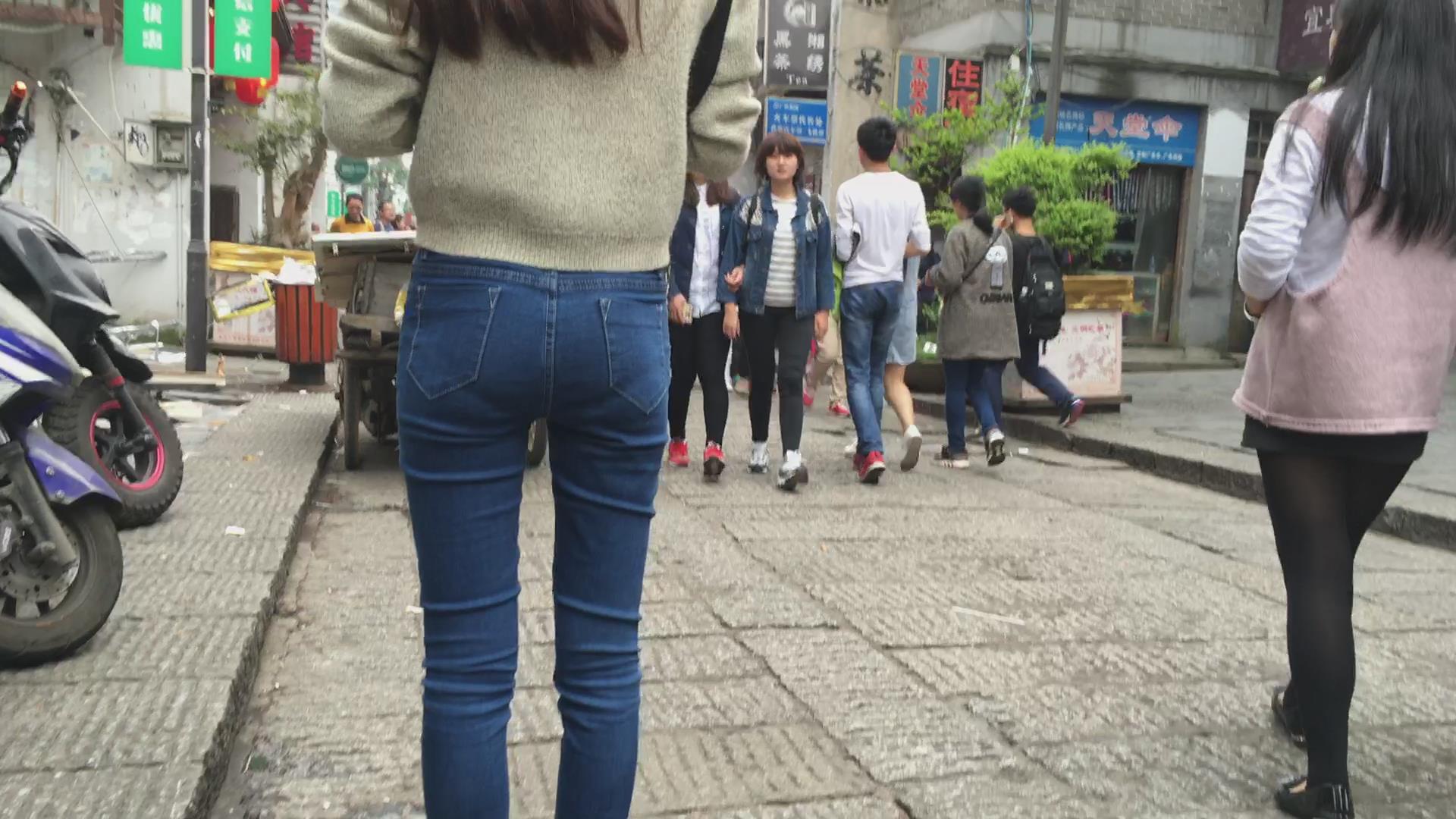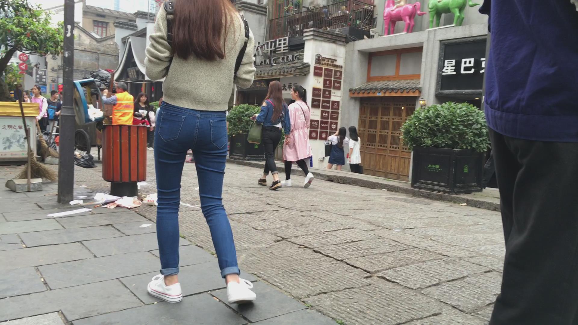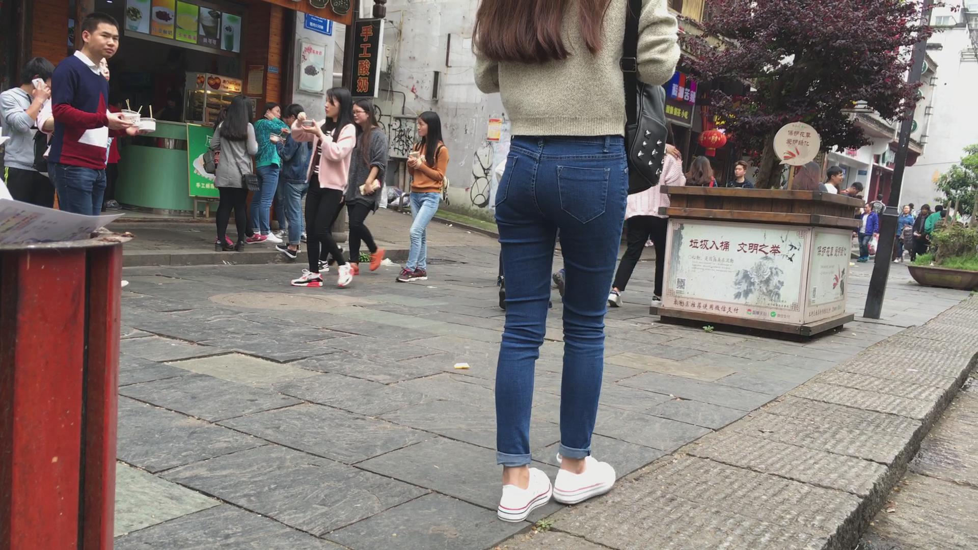 紧身蓝色牛仔裤清纯小美女 编号5622
