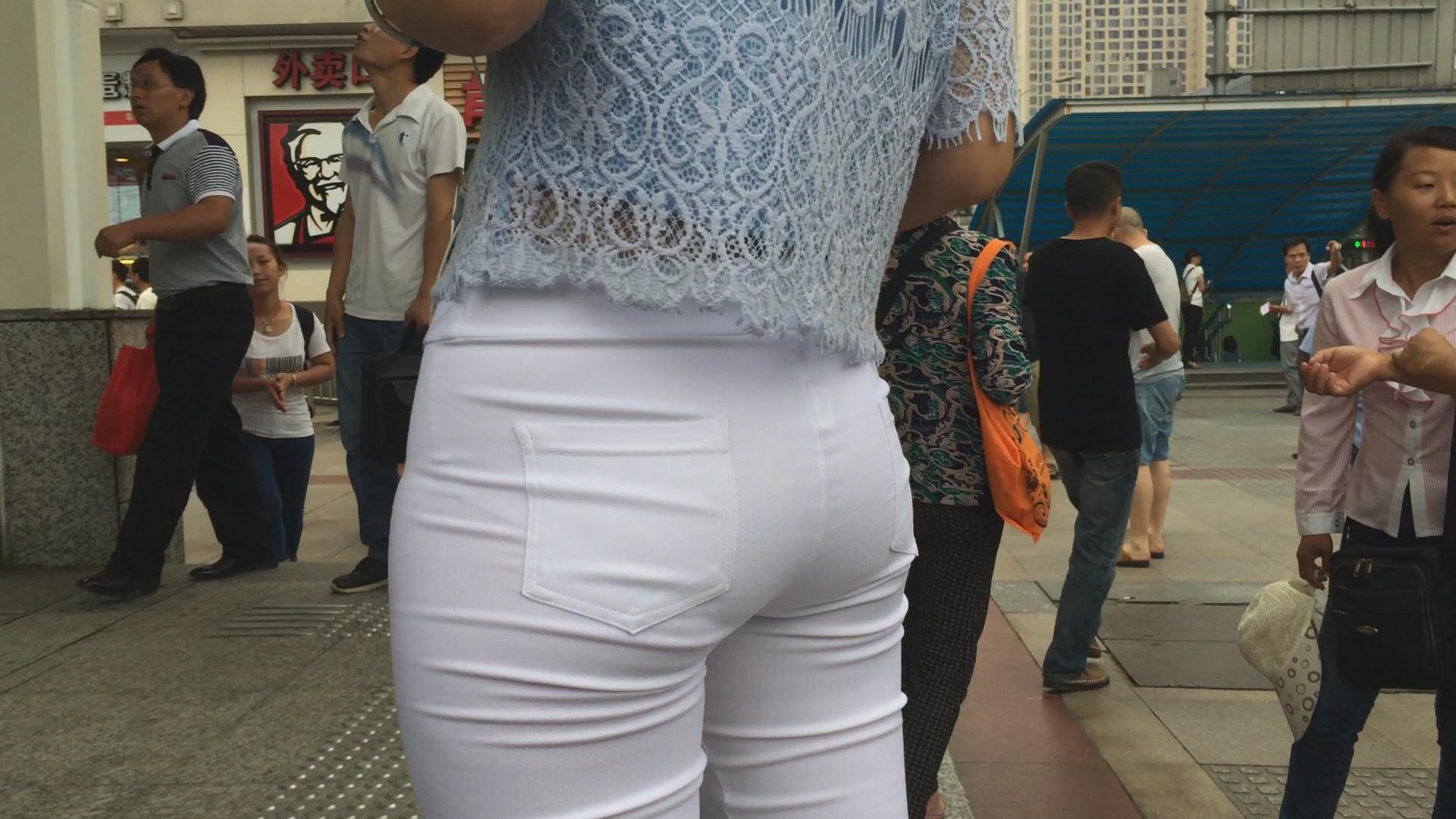 超紧身白裤圆臀破高跟鞋美妇 编号5635