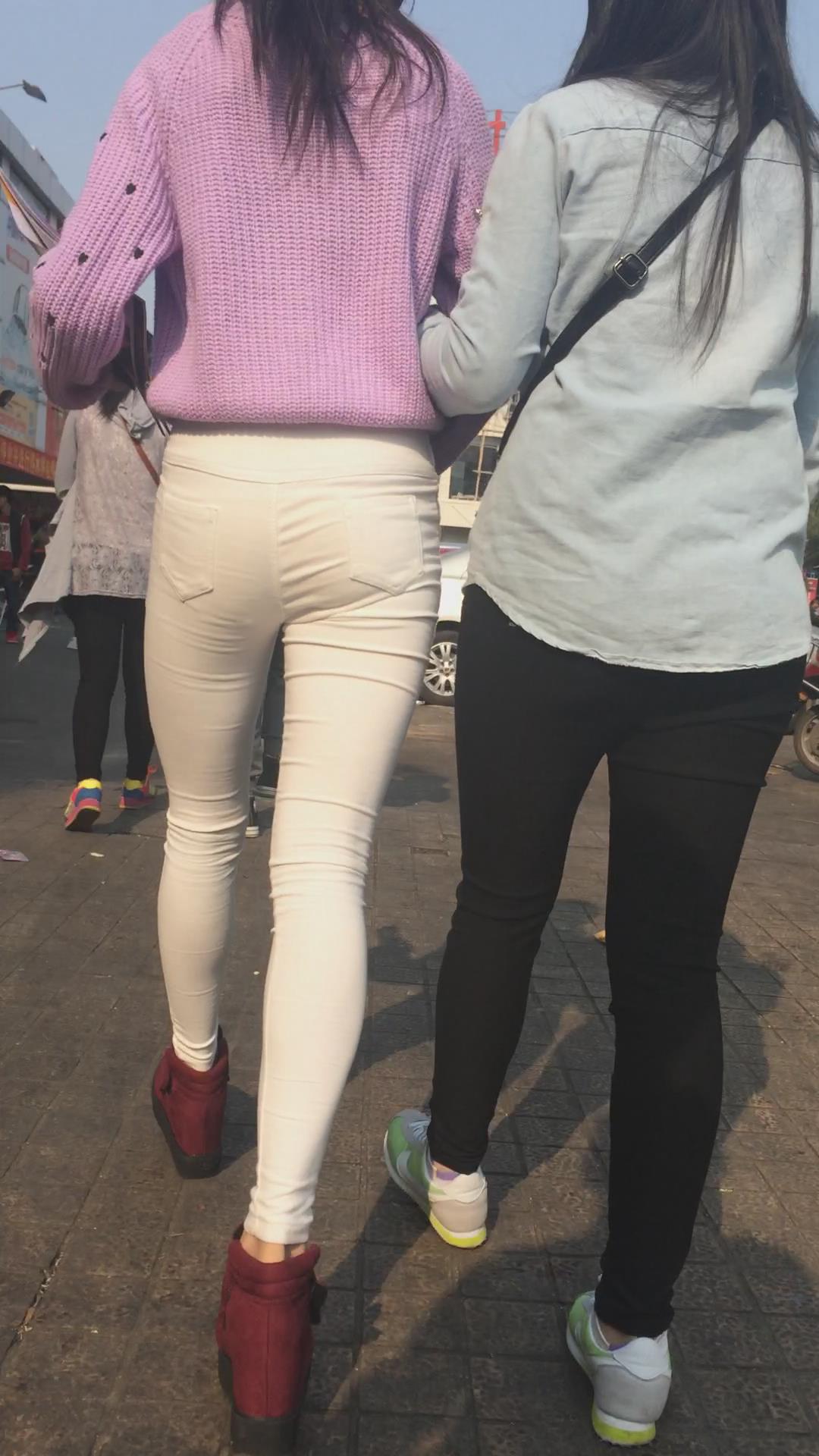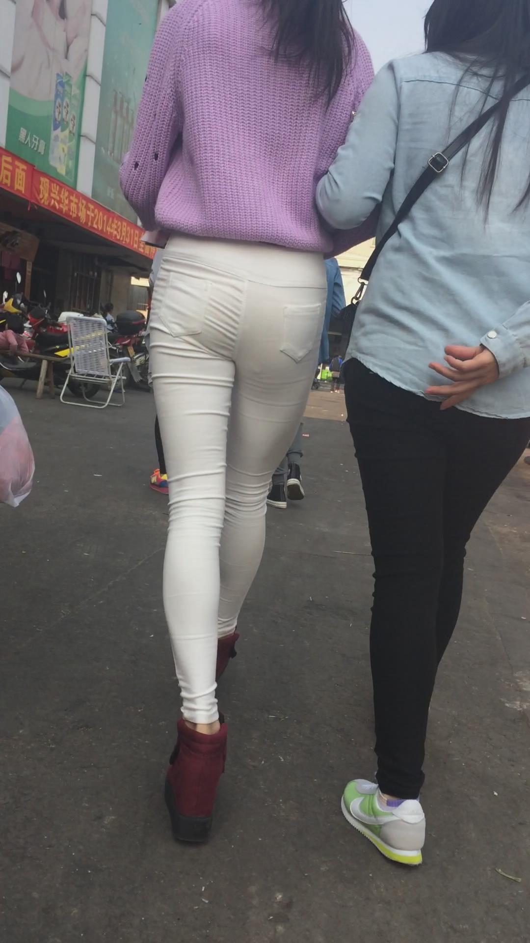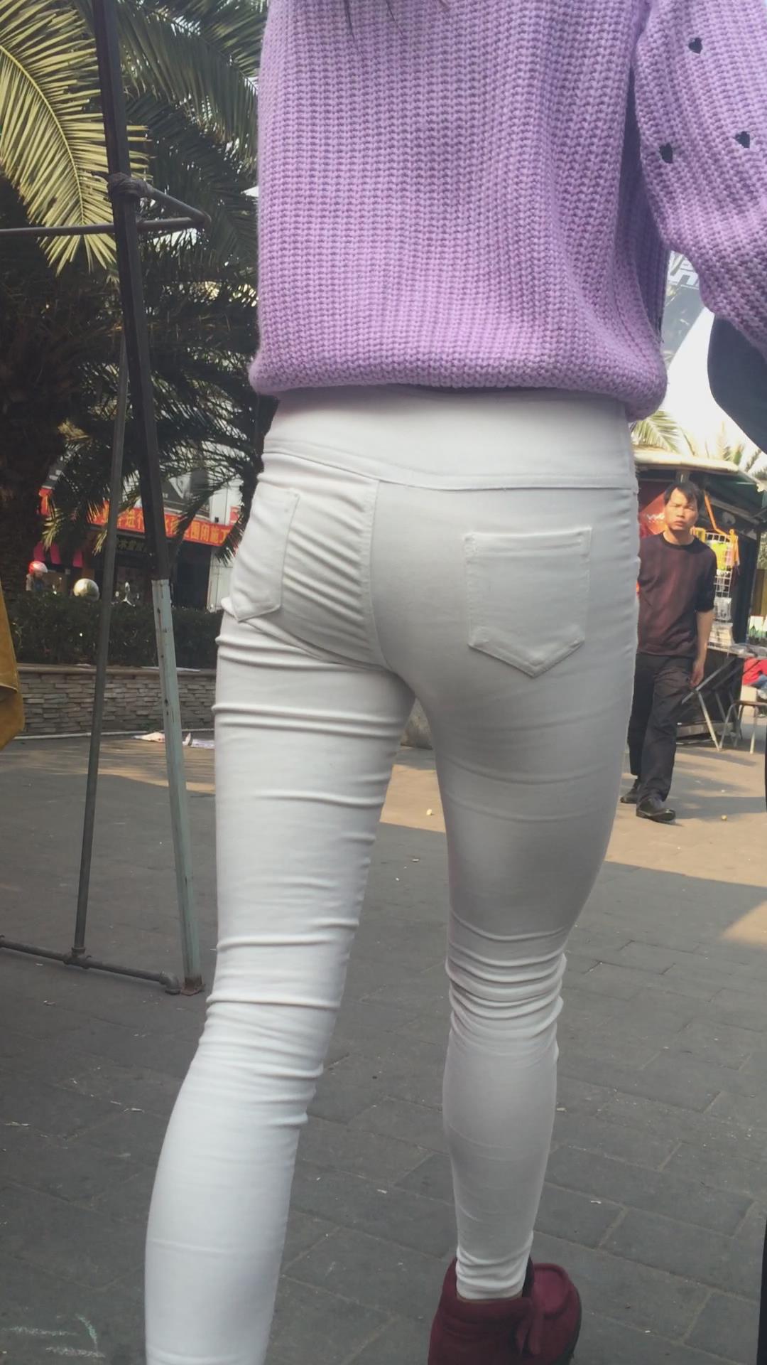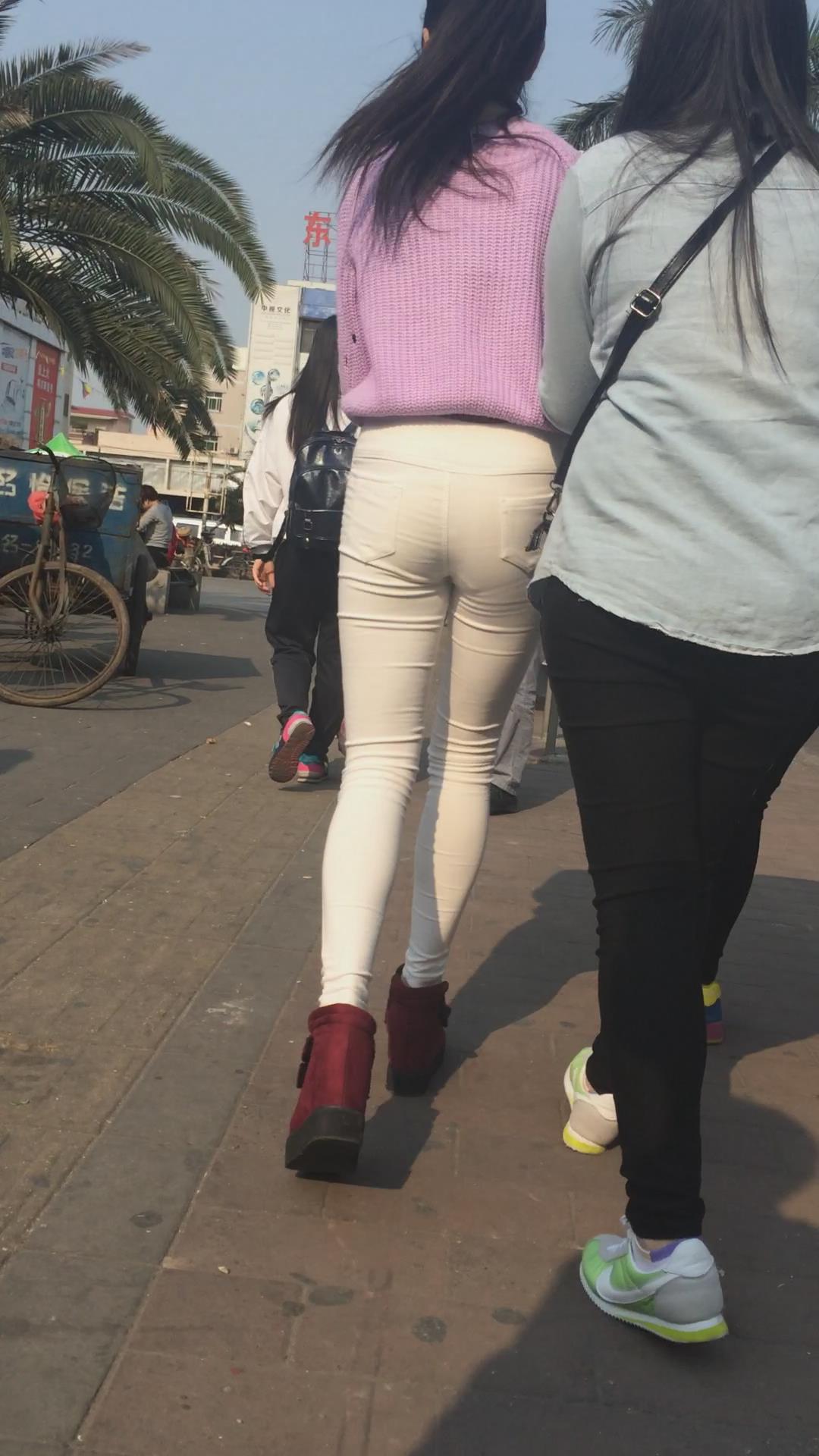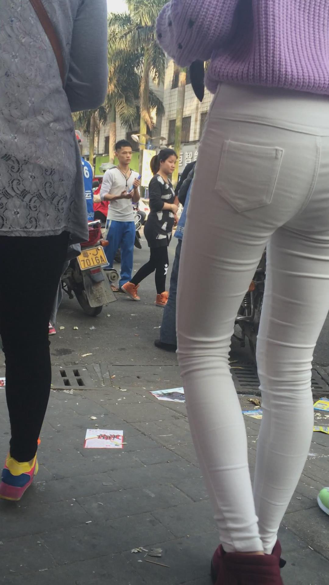 街拍粉衣紧身白裤苗条清秀美女 编号5659