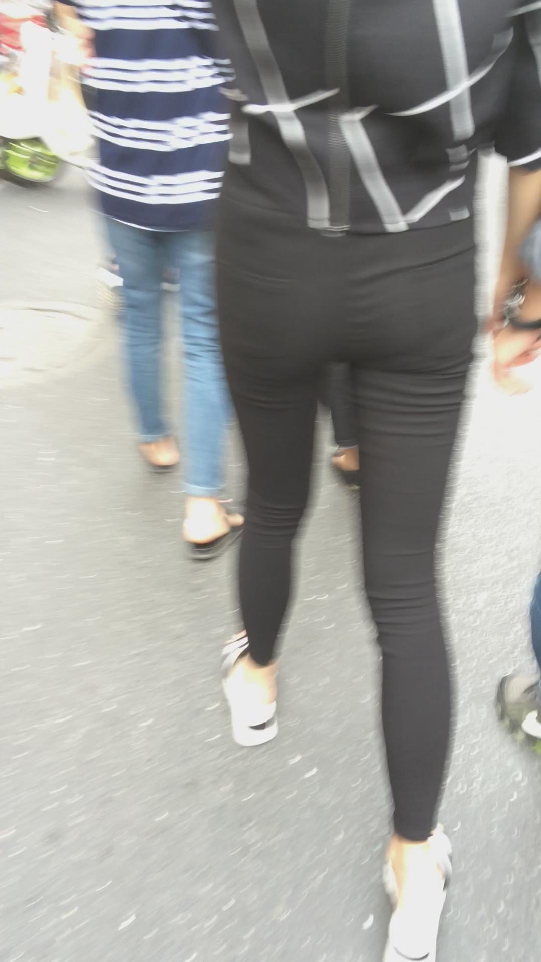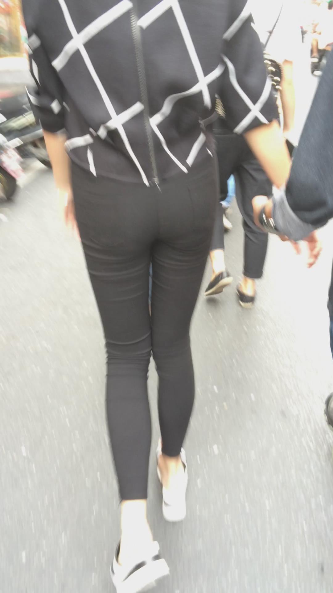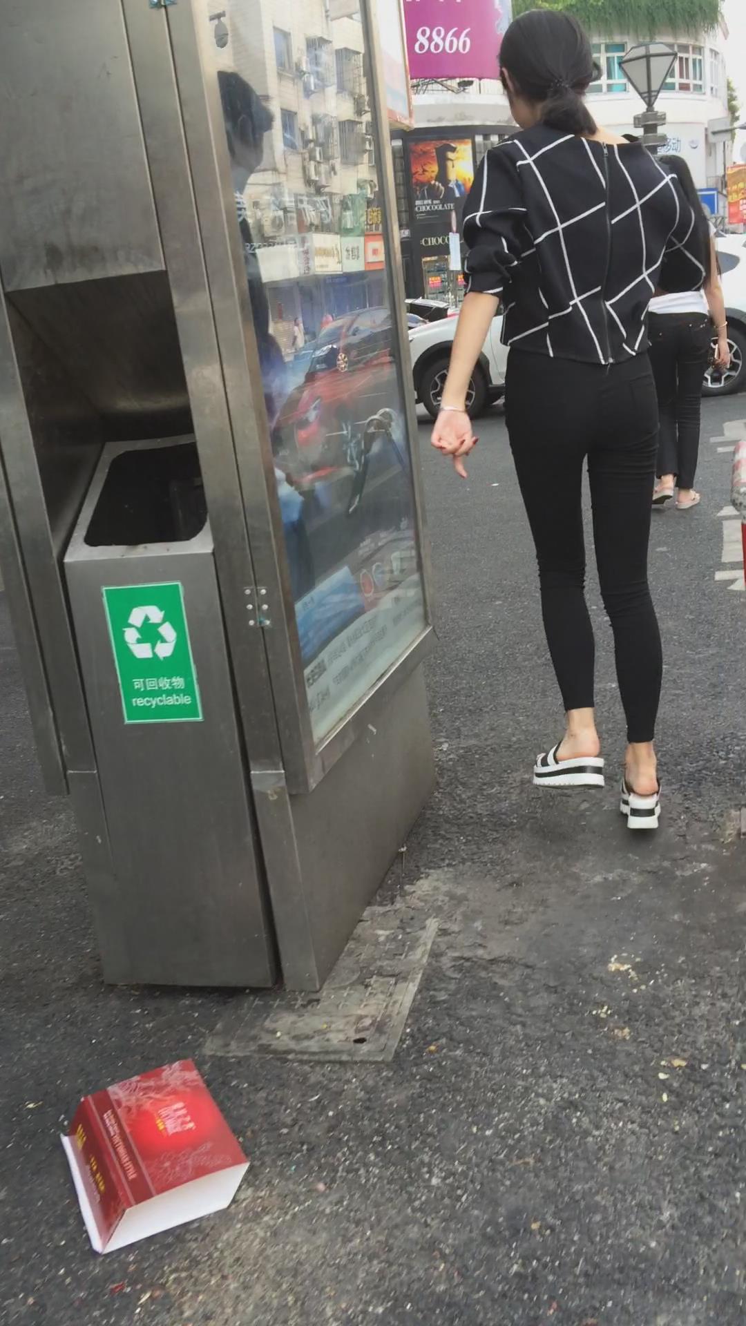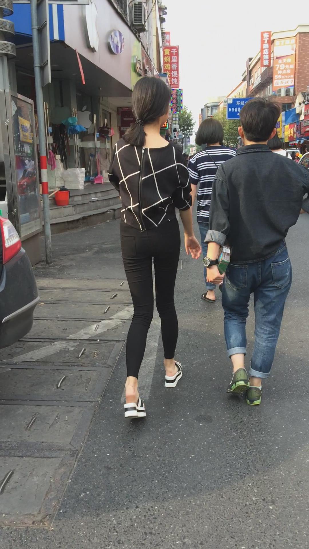 街拍黑色紧身裤小美女 编号5661