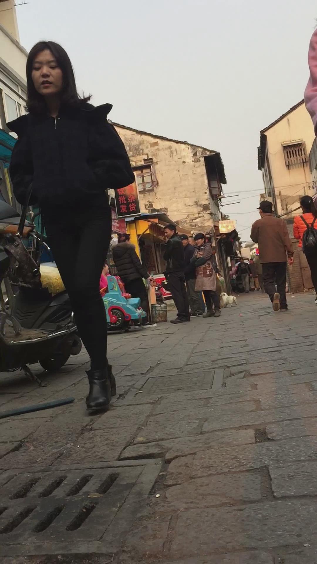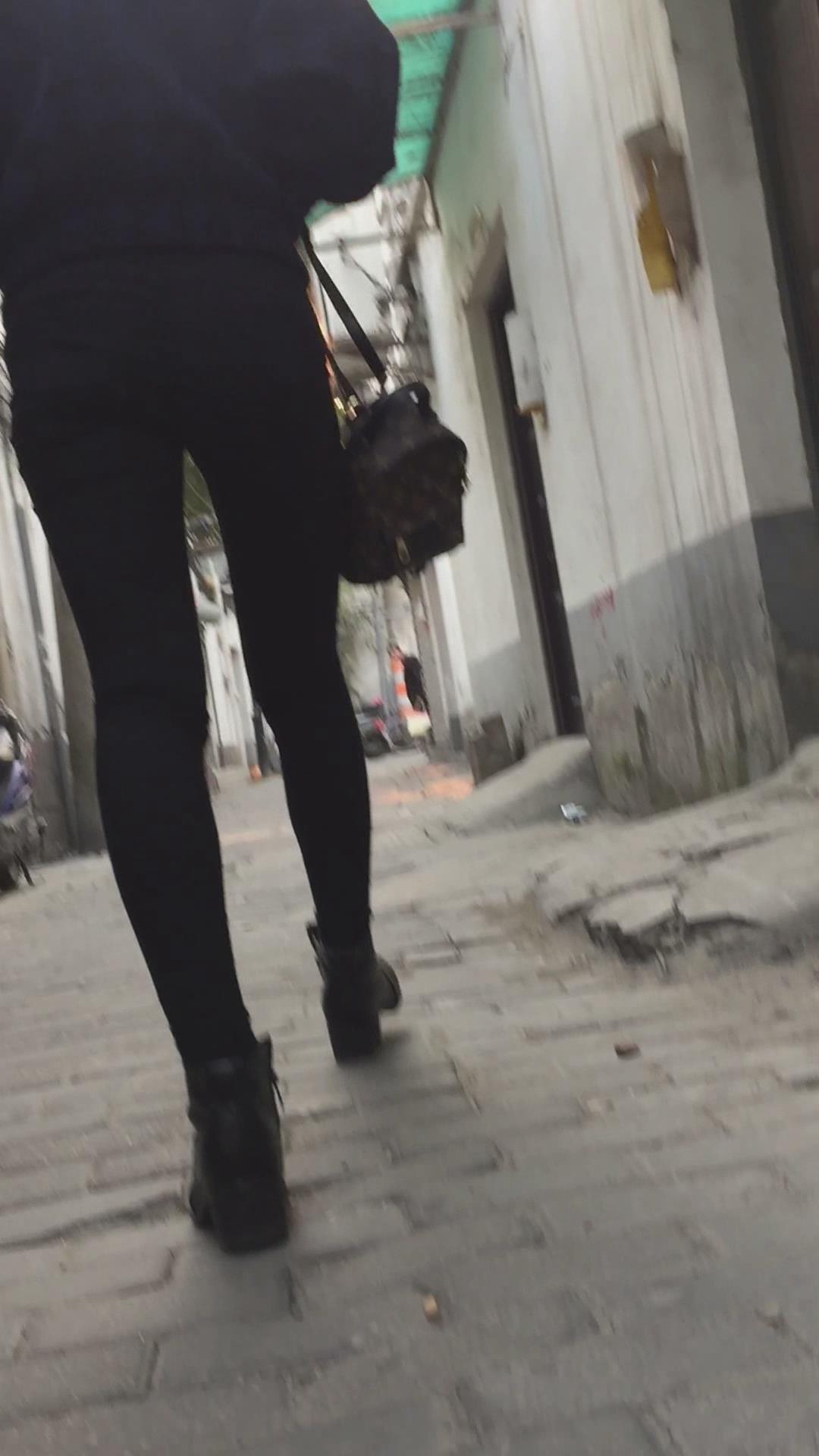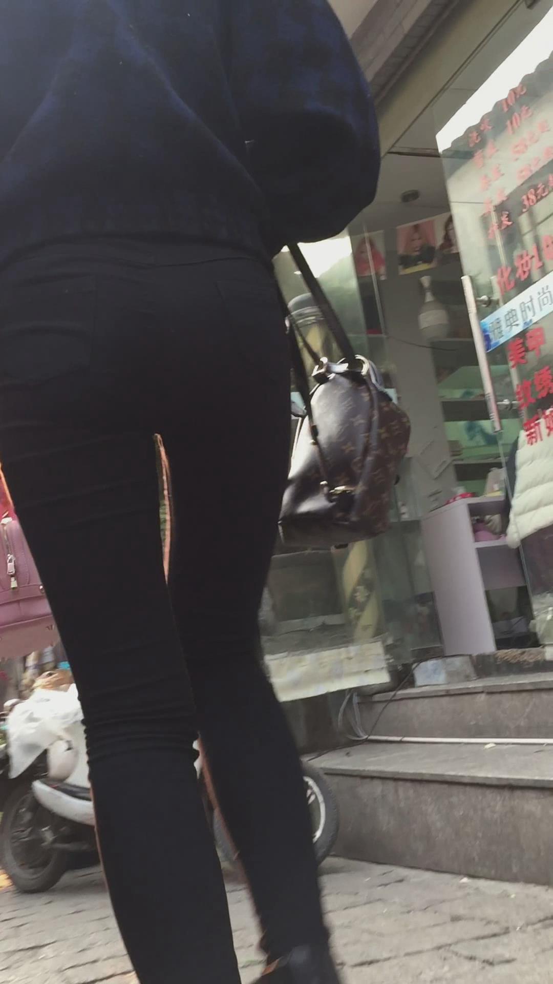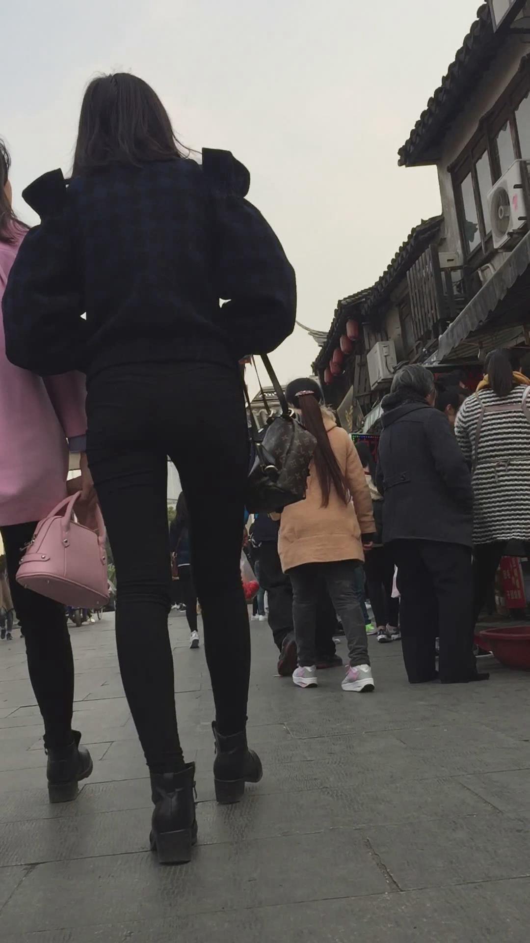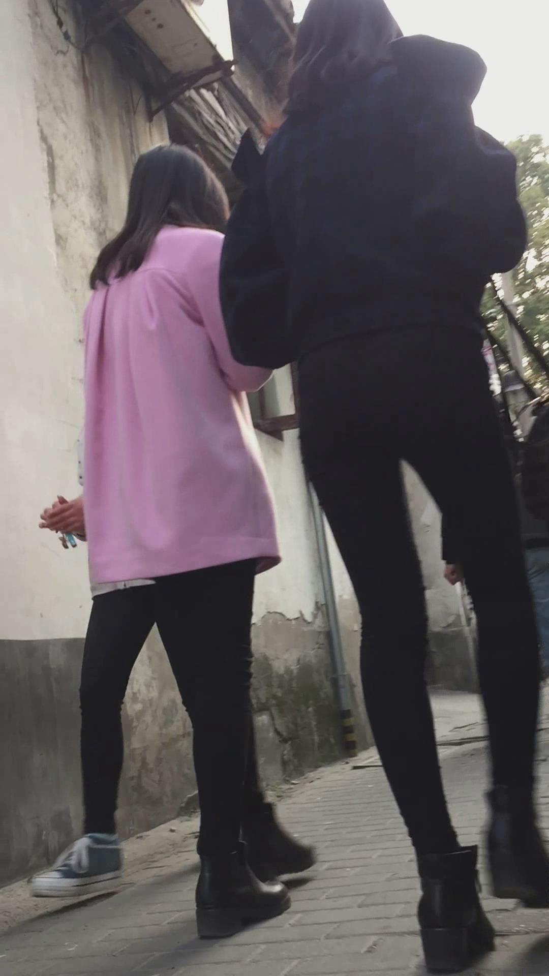 跟闺蜜一起逛的苗条细腿紧身铅笔裤美女 编号5697