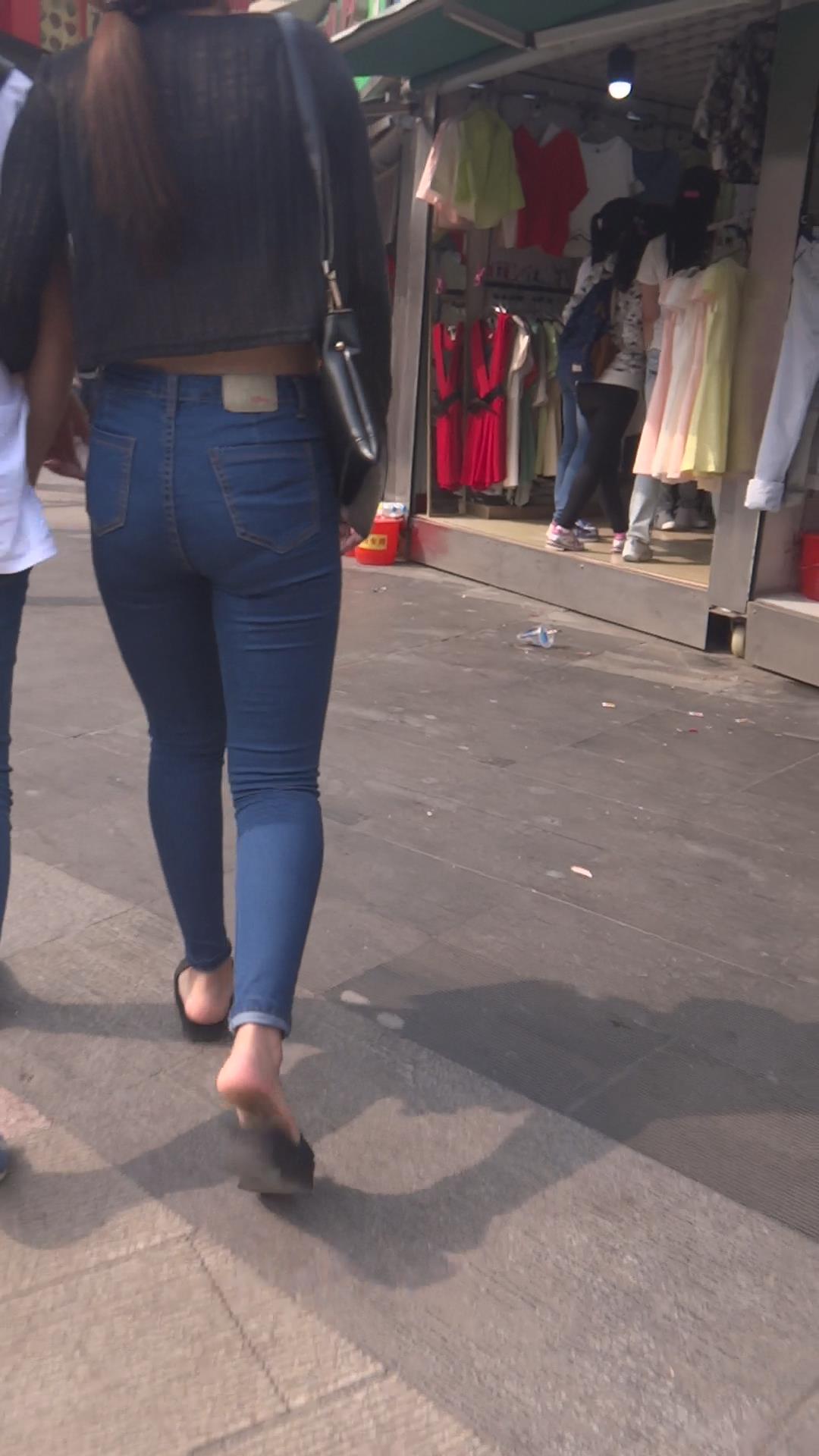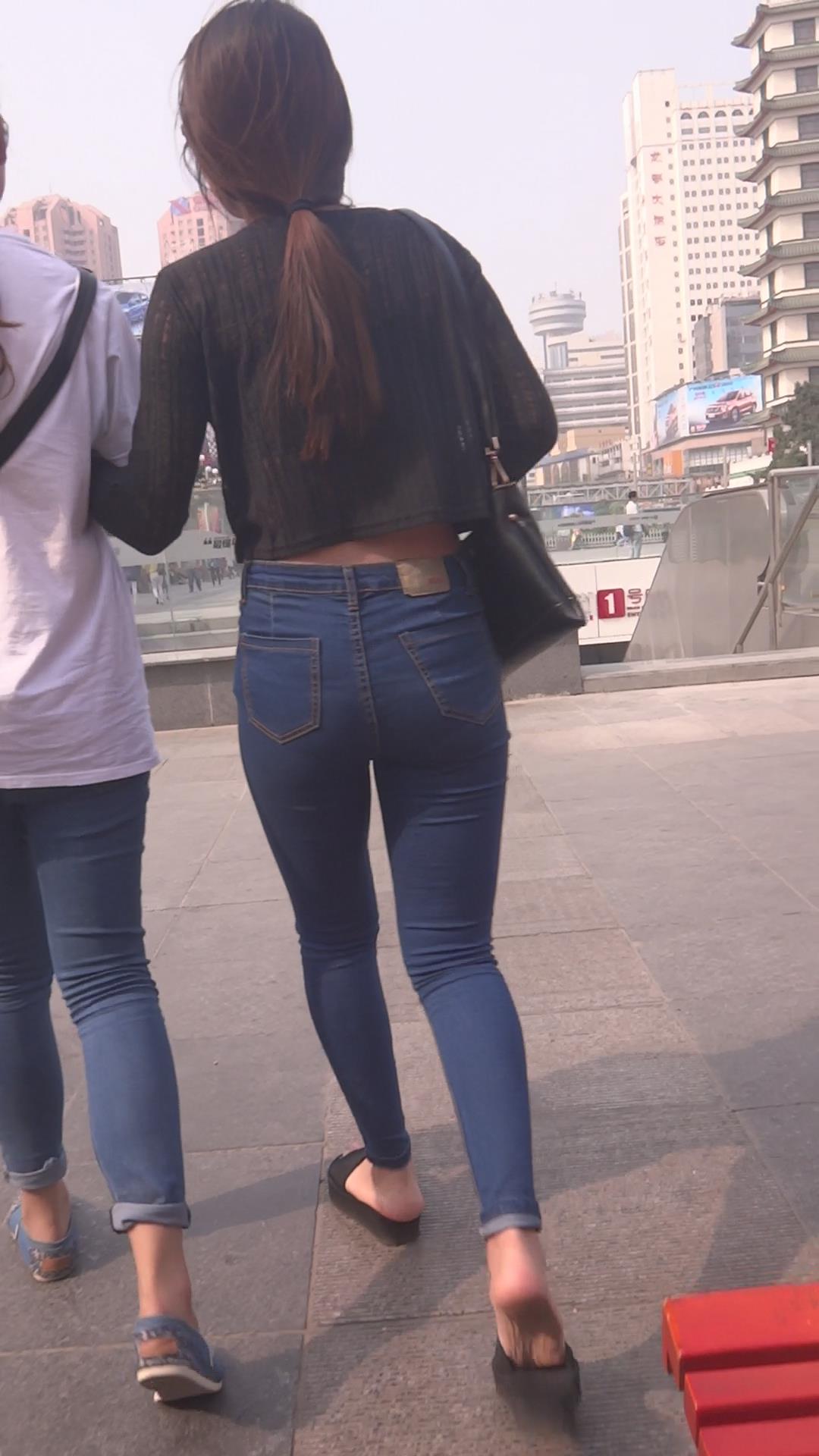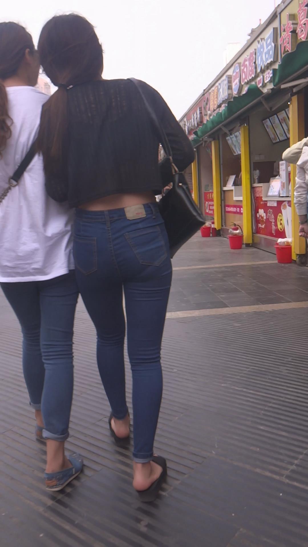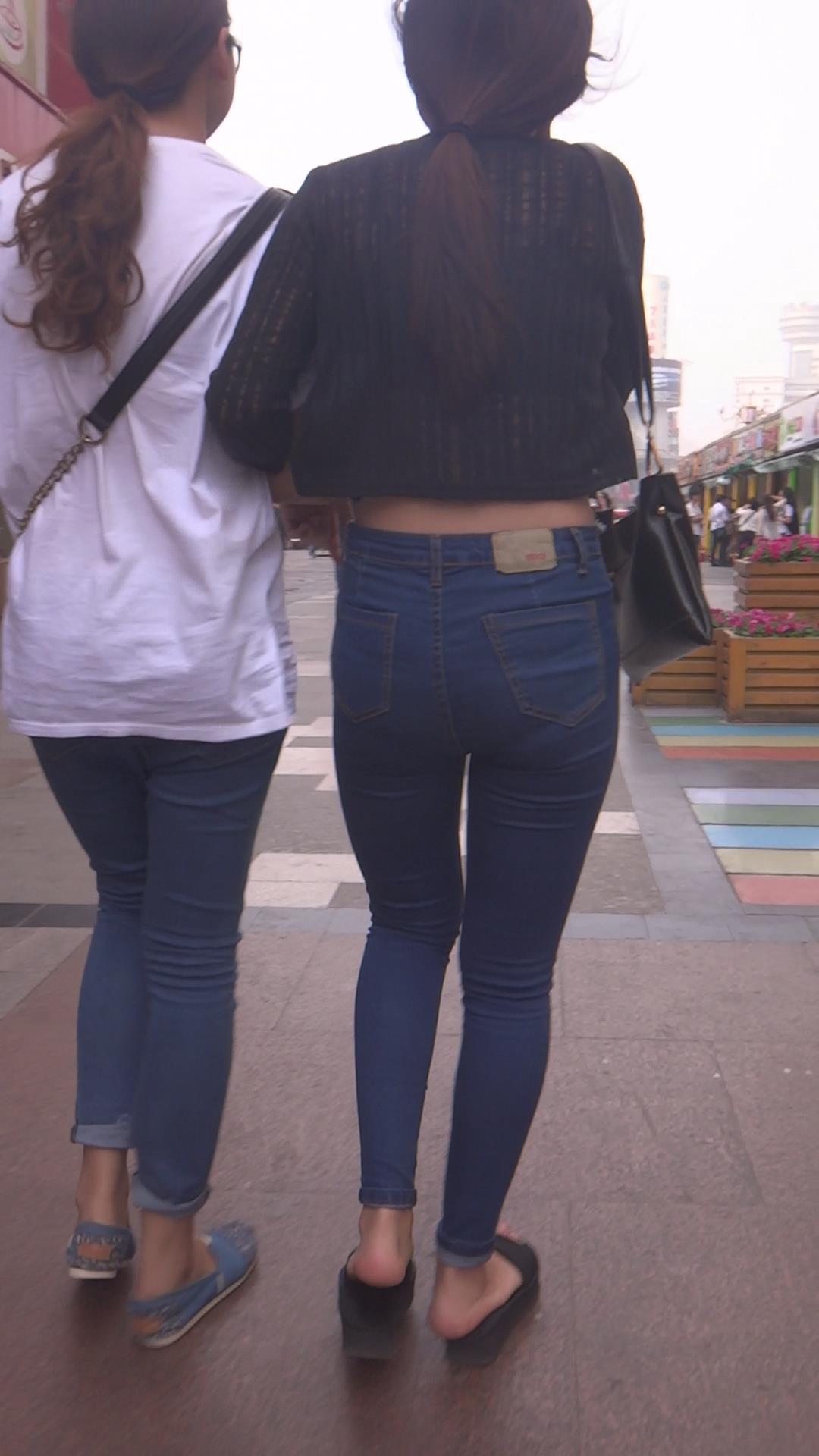 逛街偶遇圆臀好身材紧身蓝色牛仔裤美女姐妹花 编号5703