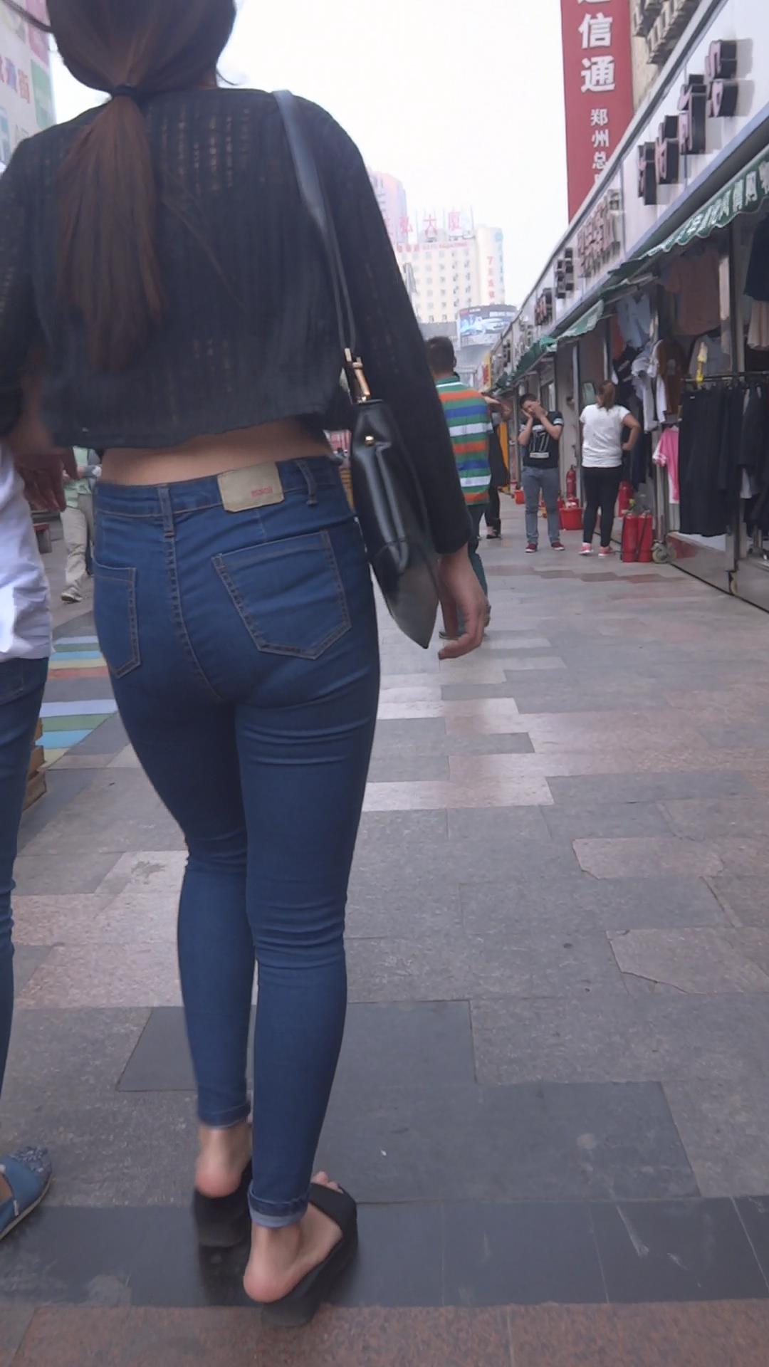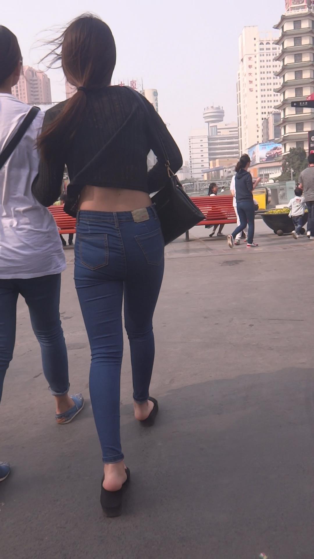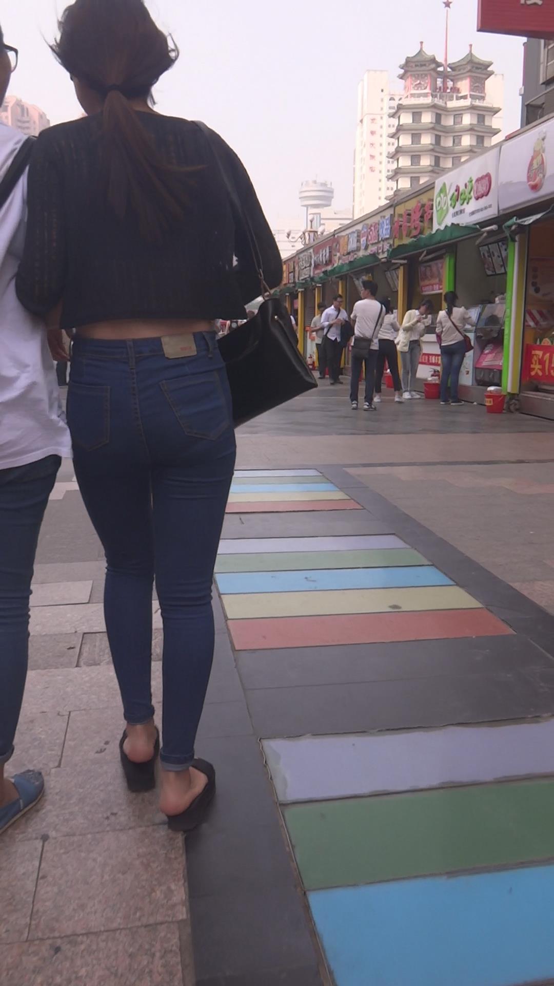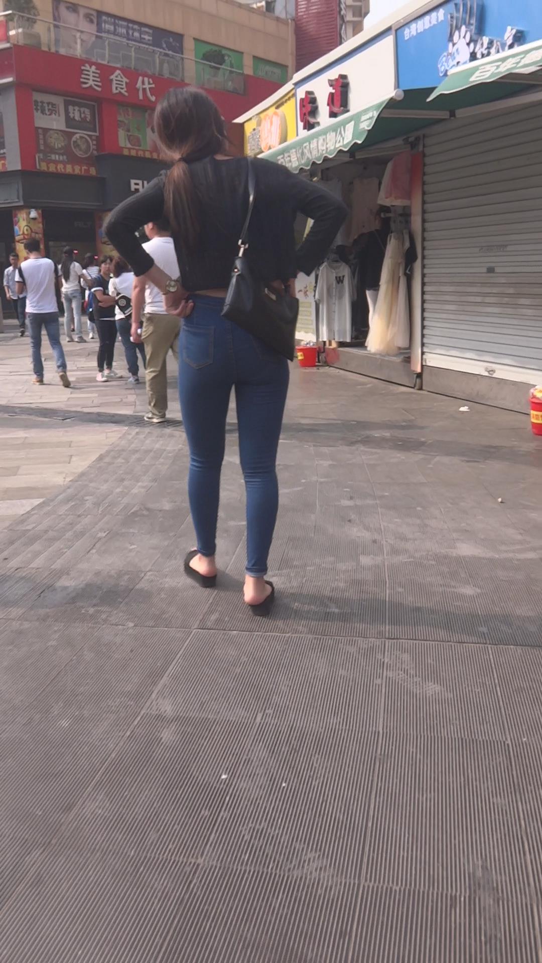 逛街偶遇圆臀好身材紧身蓝色牛仔裤美女姐妹花 编号5703