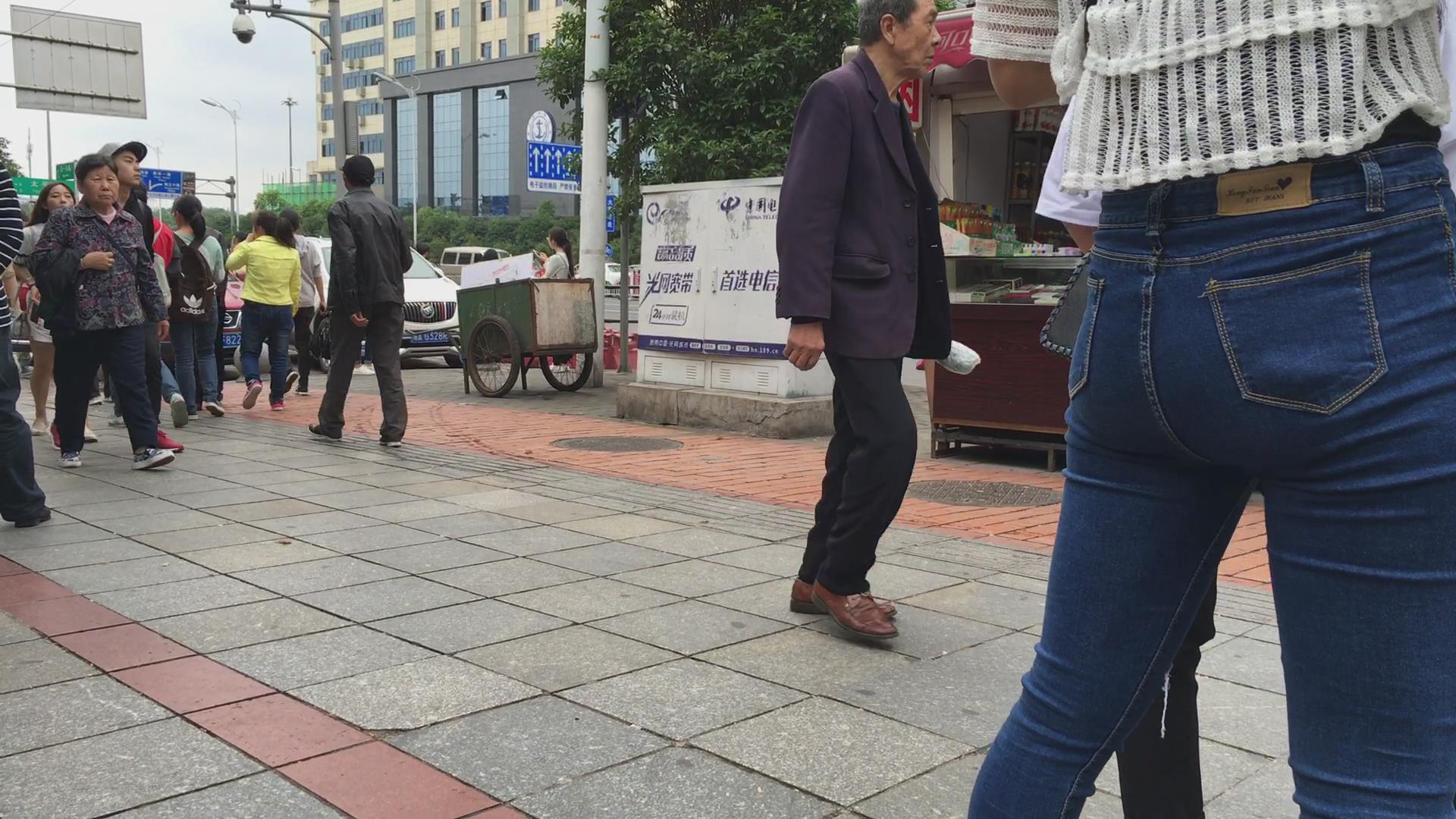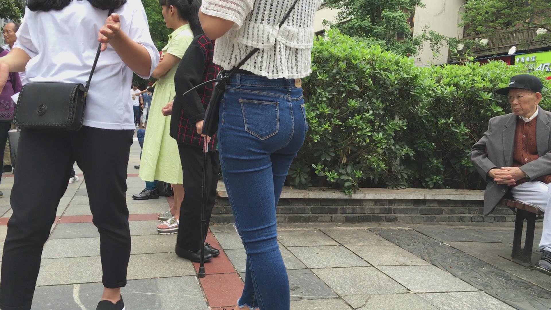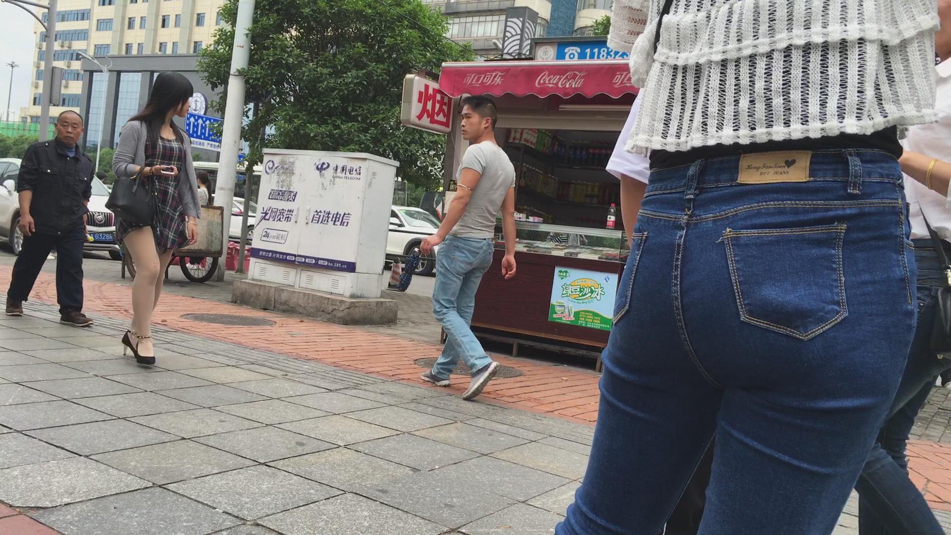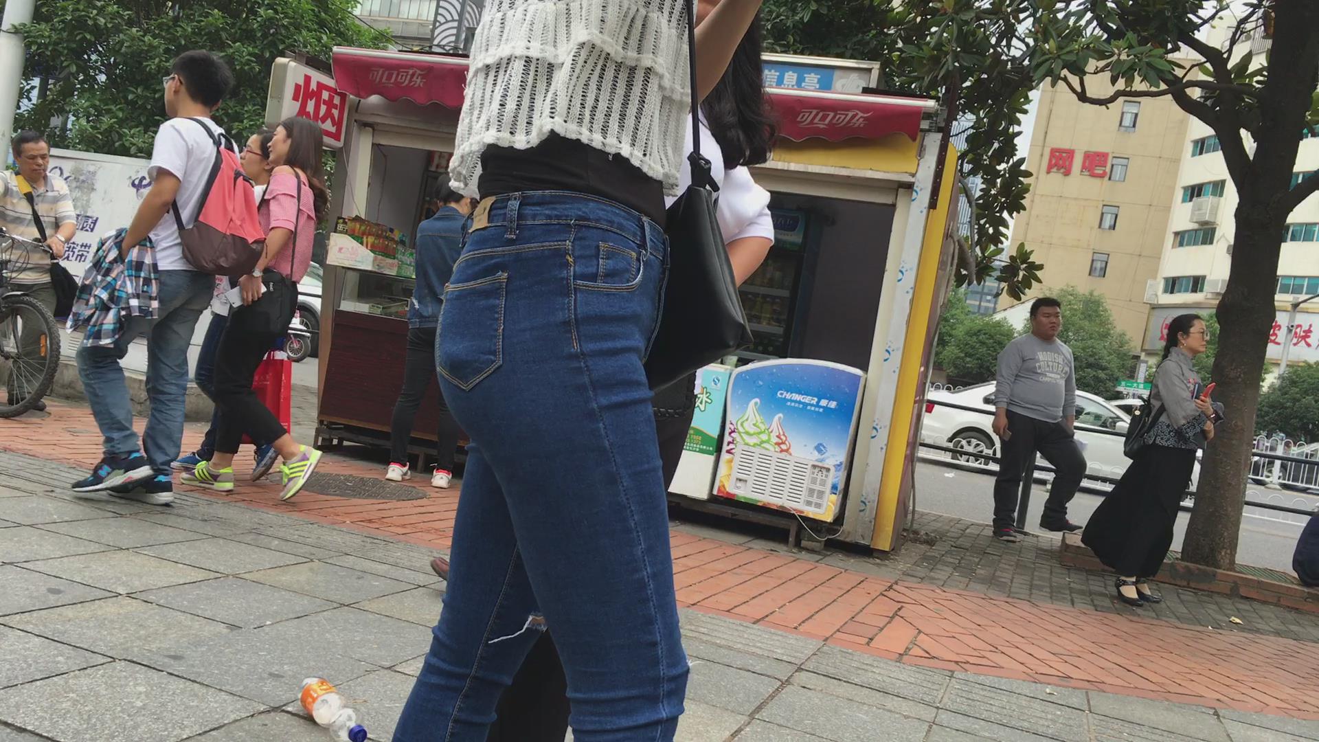 小清新紧身蓝牛圆臀牛仔裤美女 编号5709