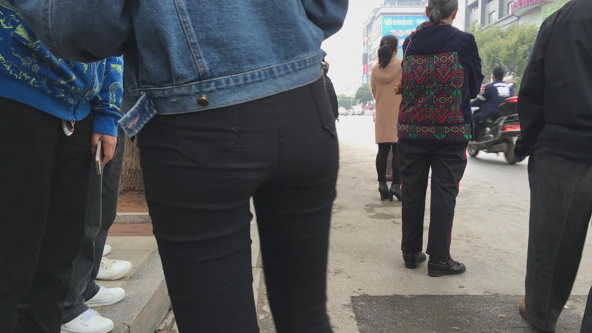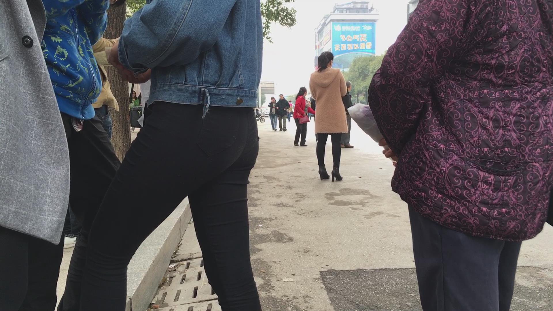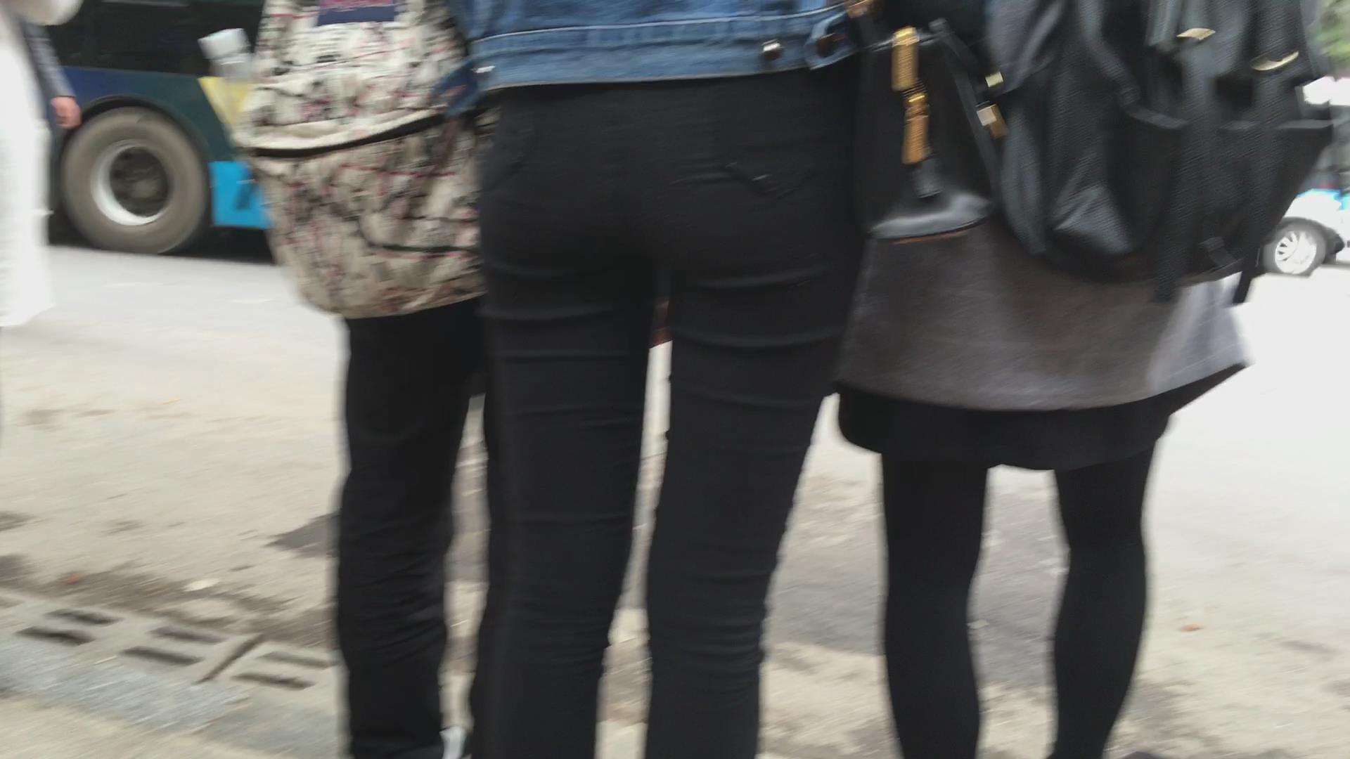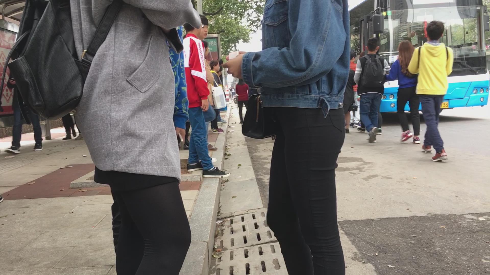 等车紧身黑裤三姐妹花 编号5714