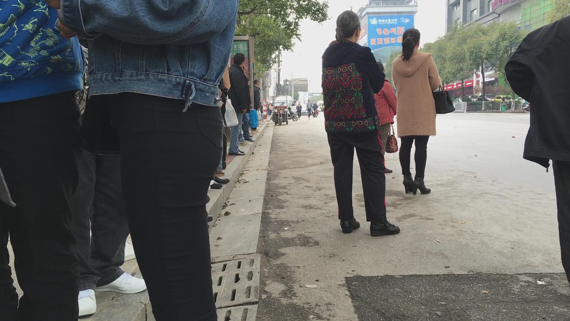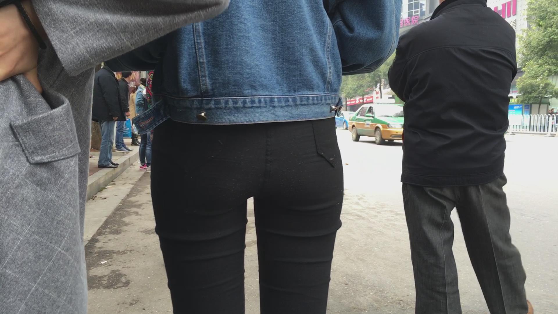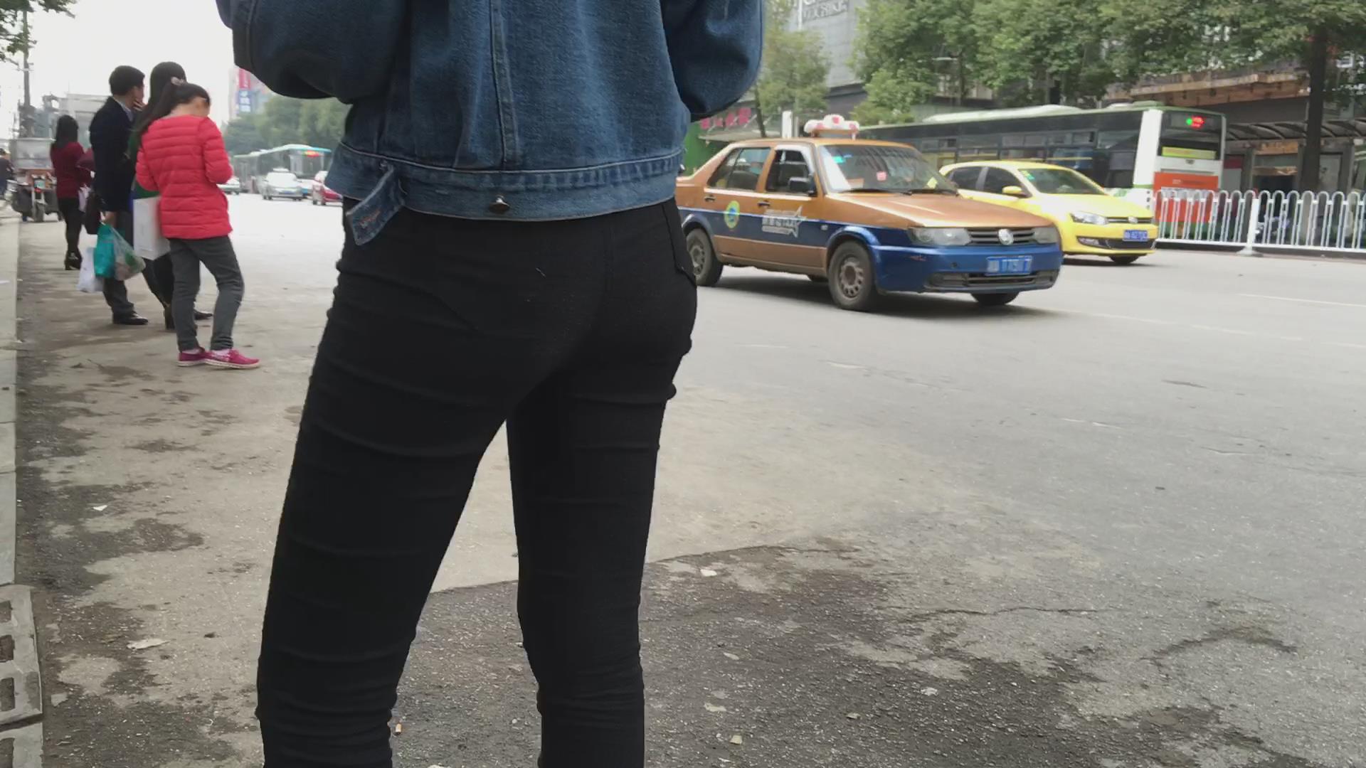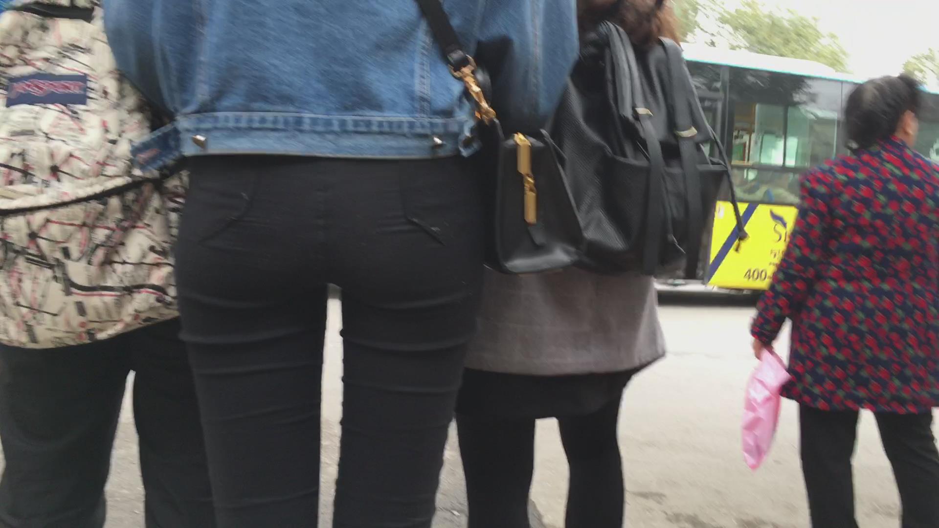 等车紧身黑裤三姐妹花 编号5714
