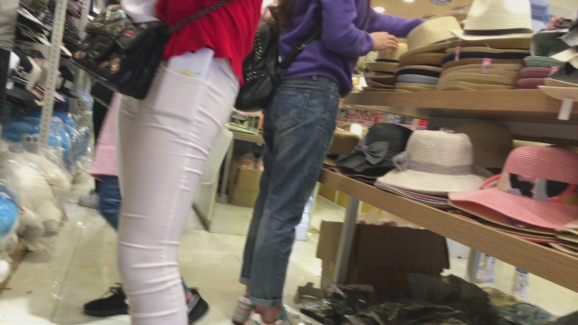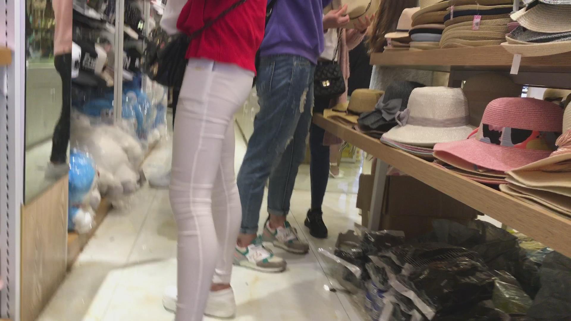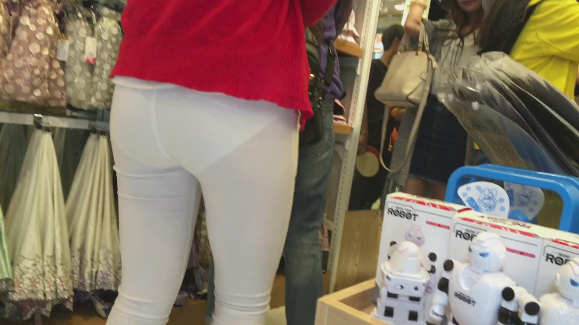 几乎透明的紧身白裤圆臀美眉,内内清晰可见 编号5718