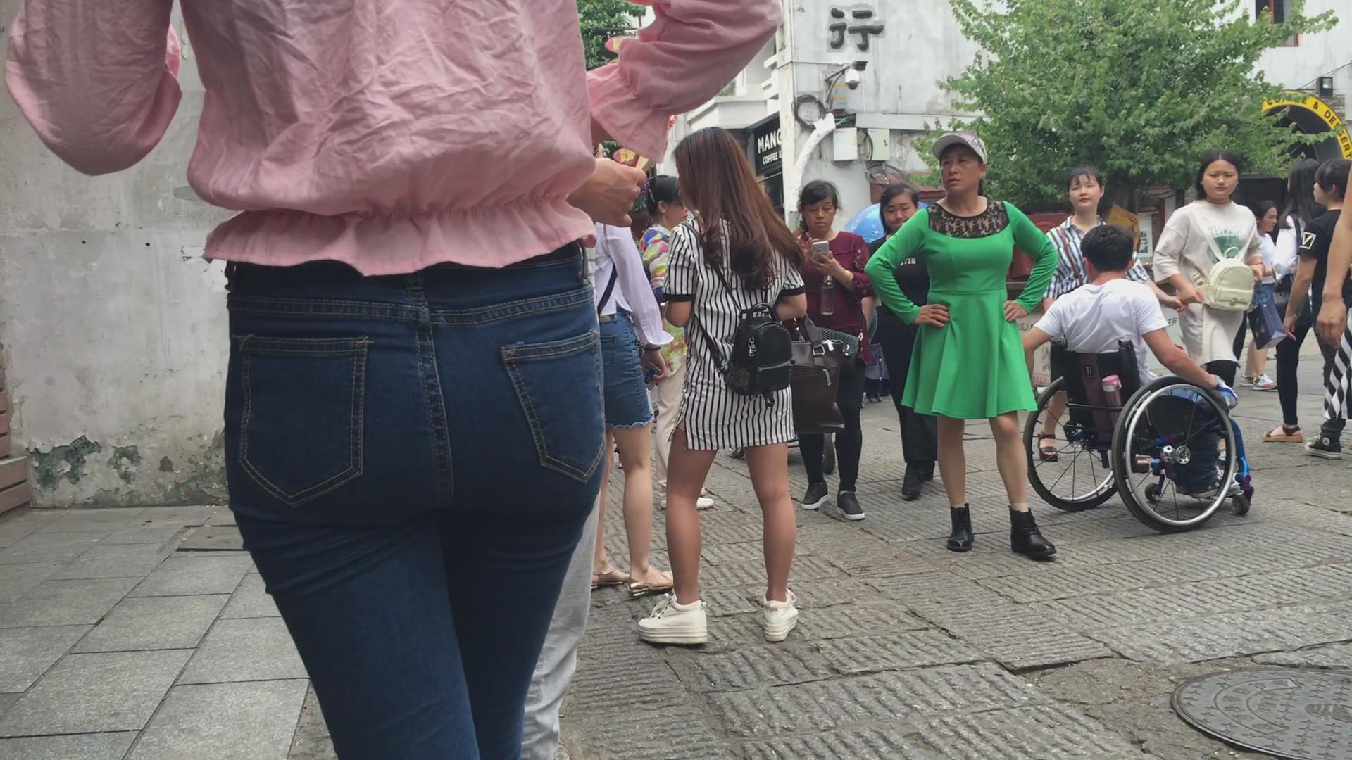 街拍超级紧身美臀美眉,三角区真美 编号5721