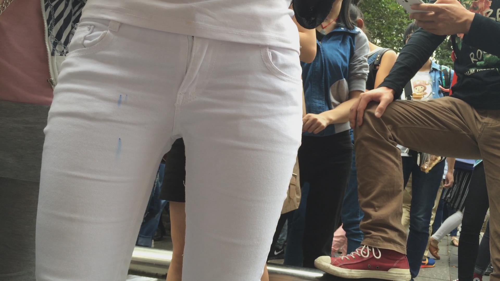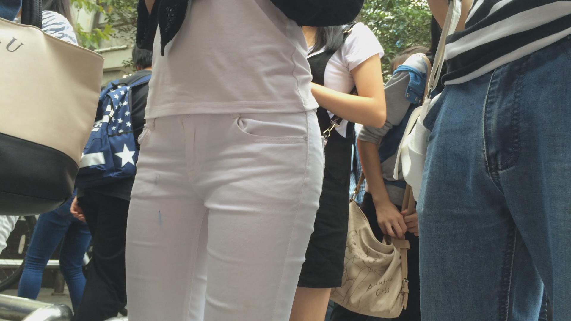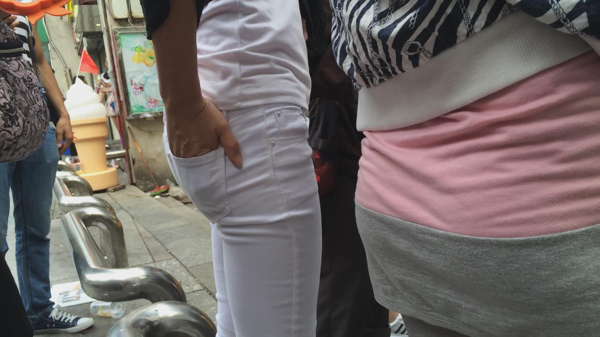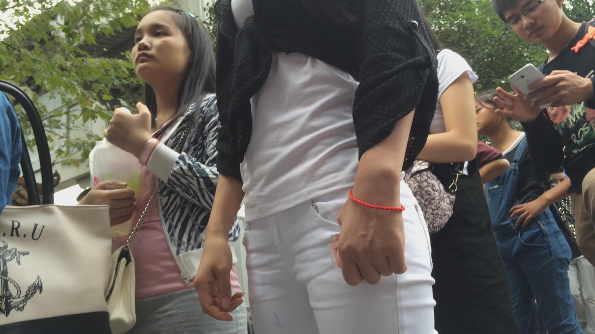 排队的翘臀紧身白裤美女,圆润饱满三角区超诱人 编号5749