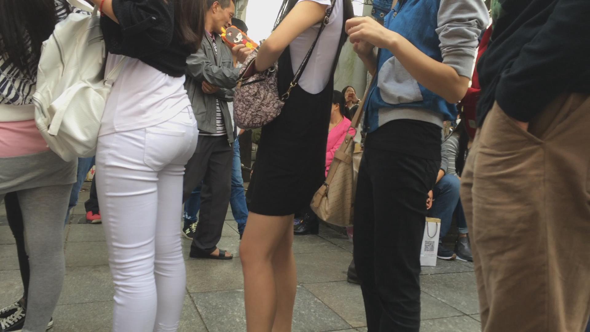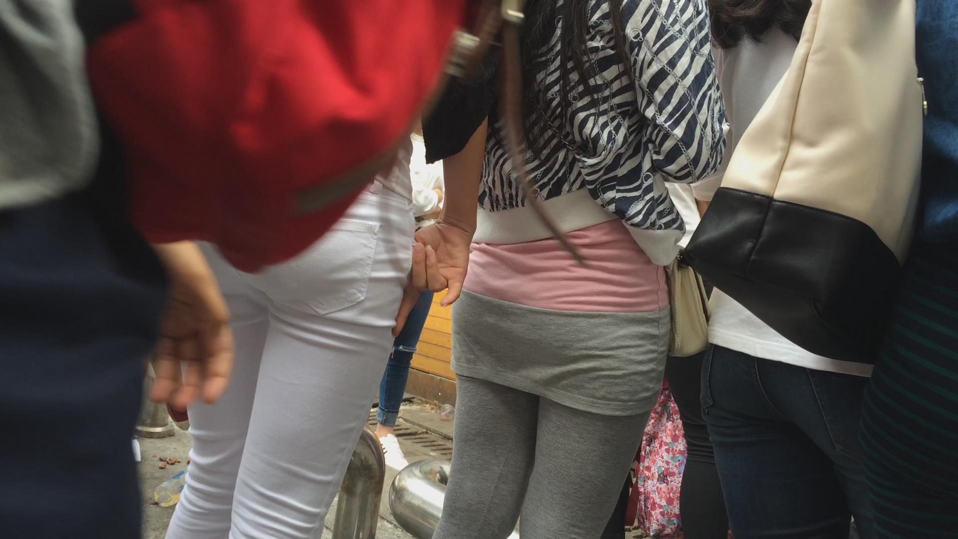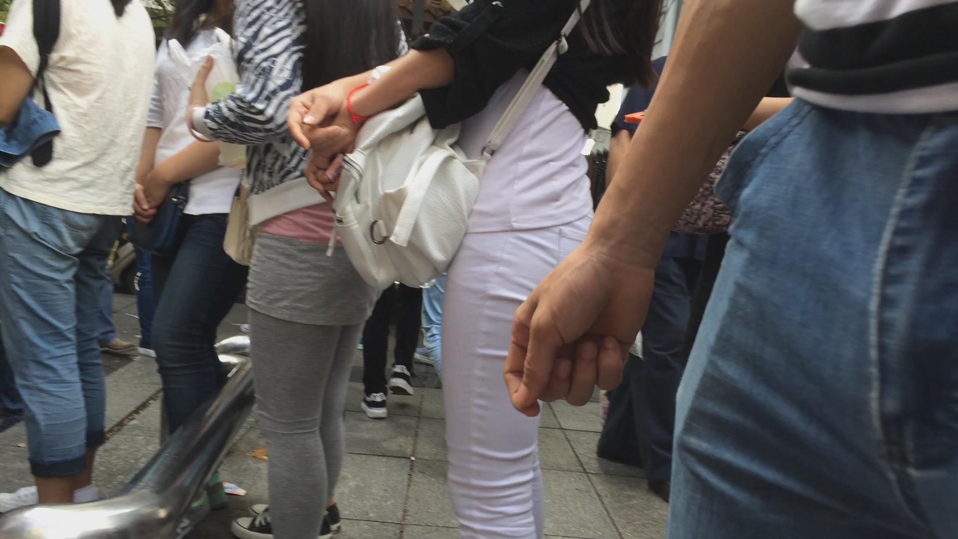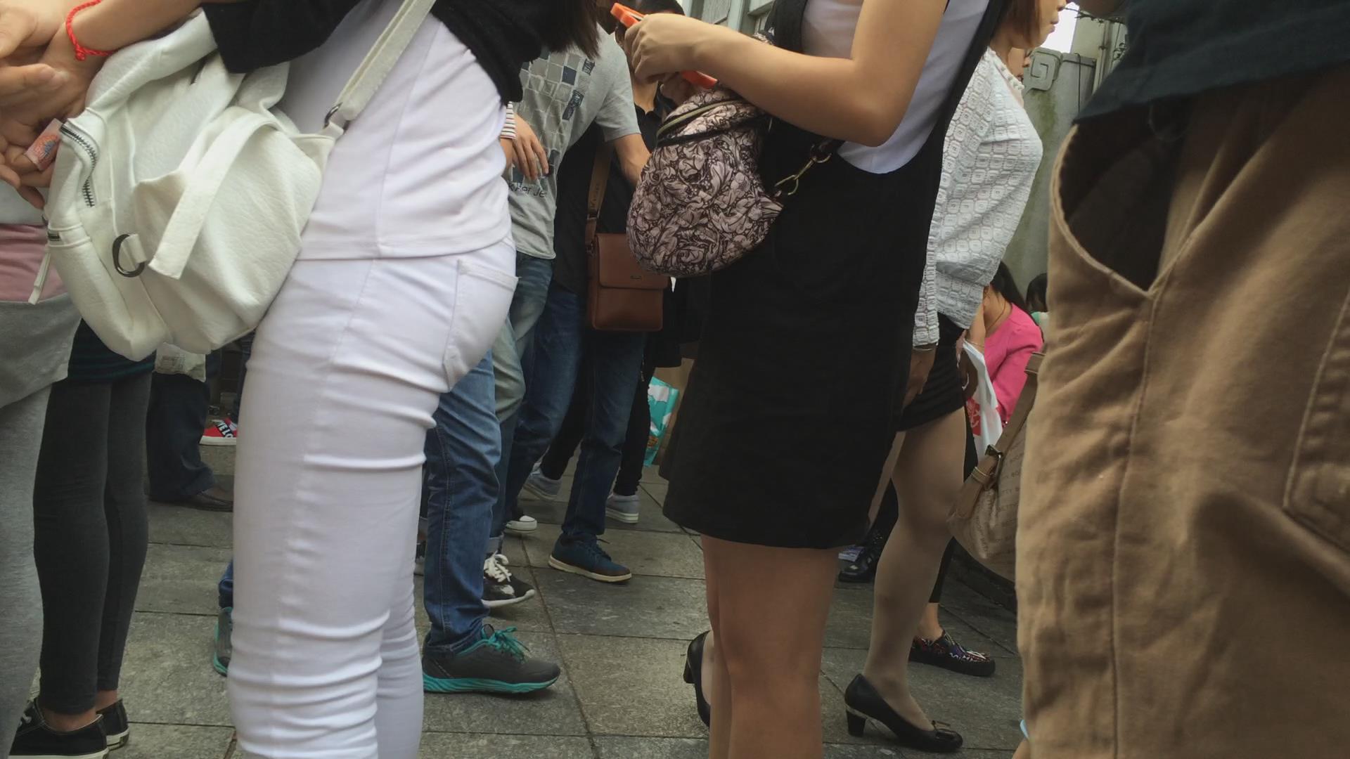 排队的翘臀紧身白裤美女,圆润饱满三角区超诱人 编号5749