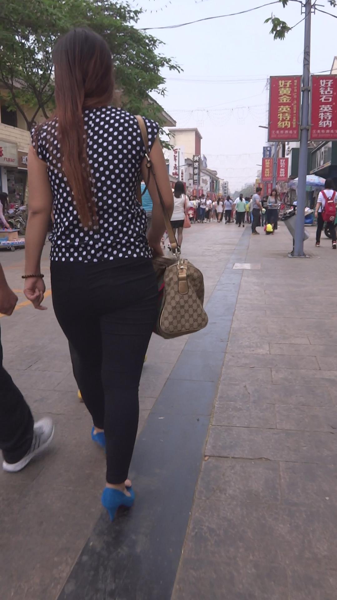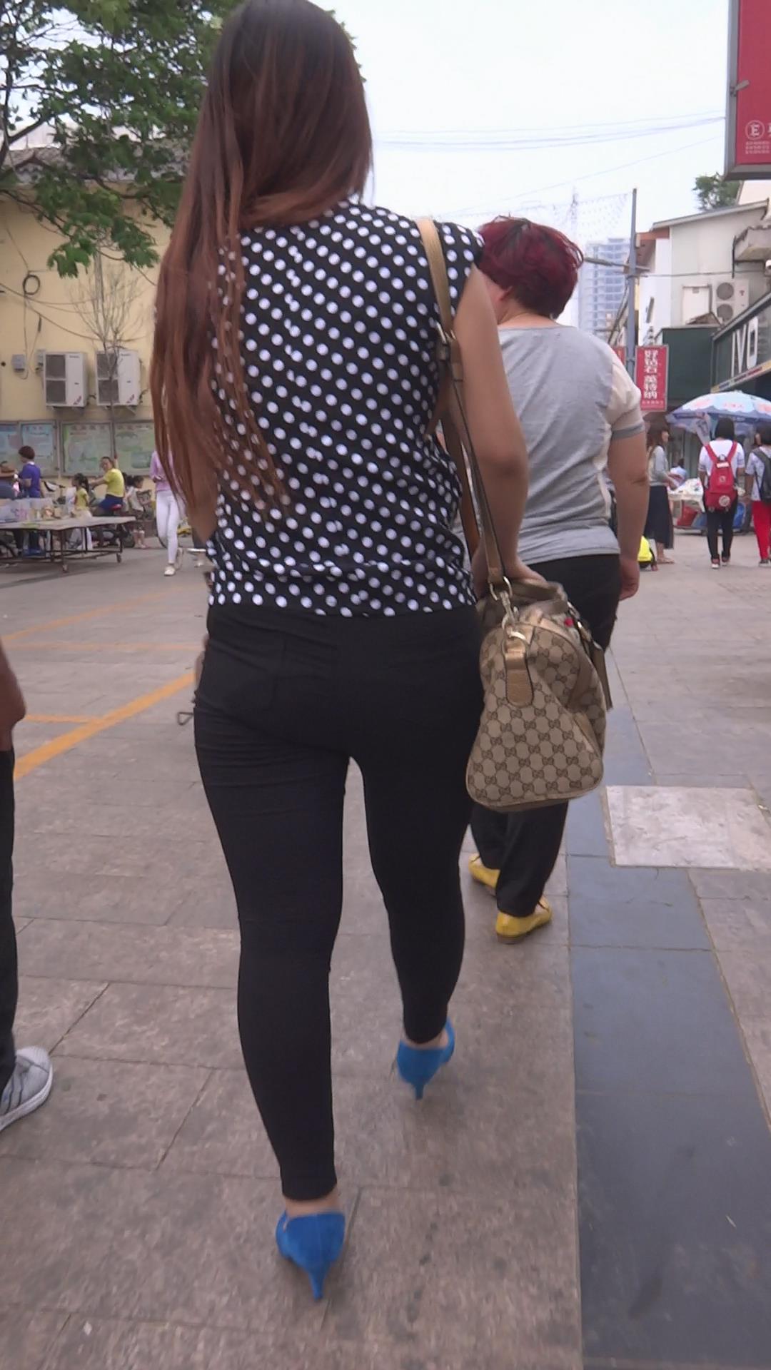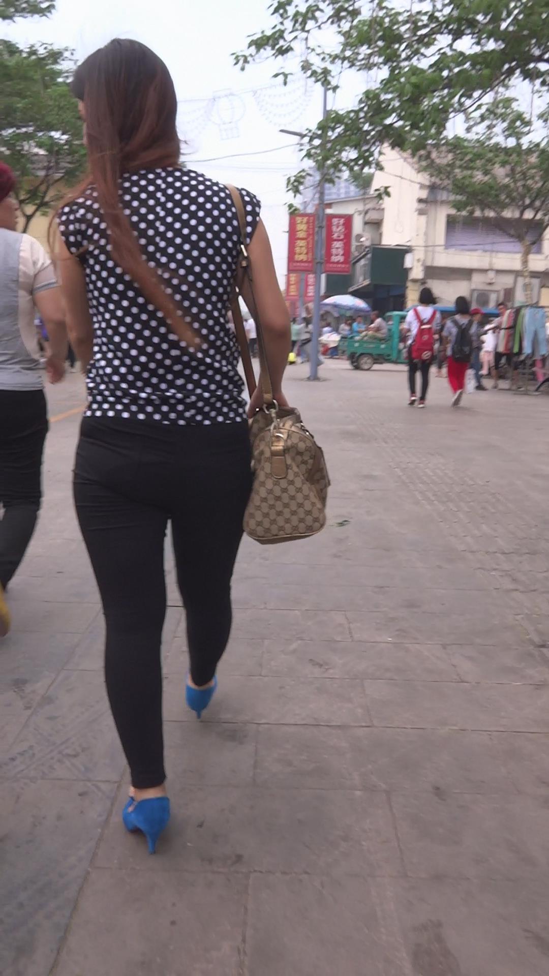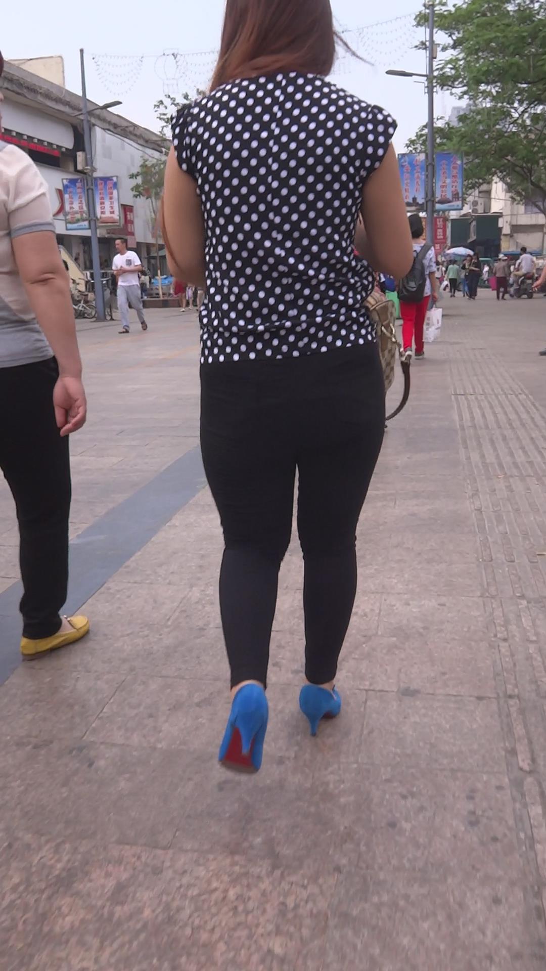 斑点衬衫肥臀蓝色高跟鞋女孩 编号5777
