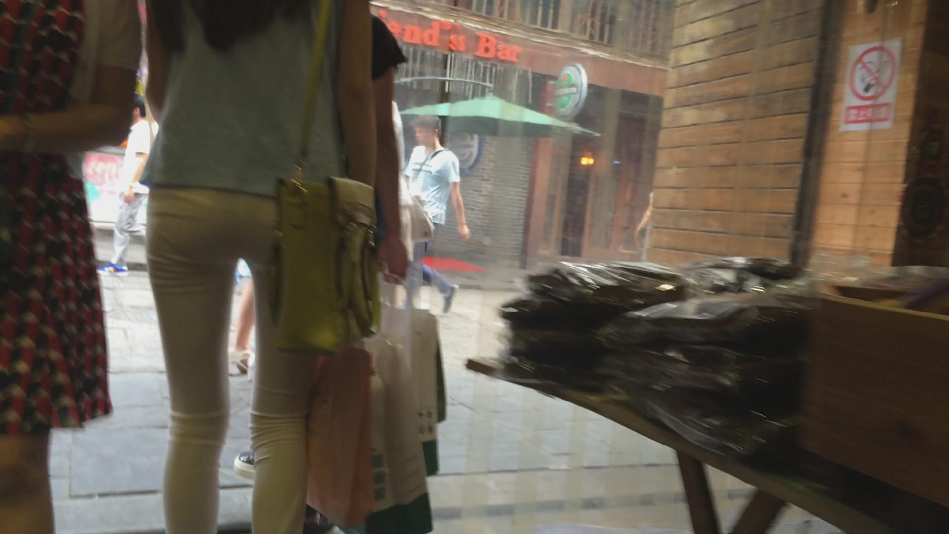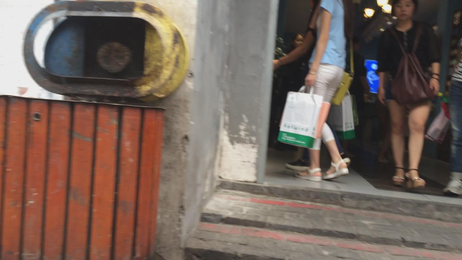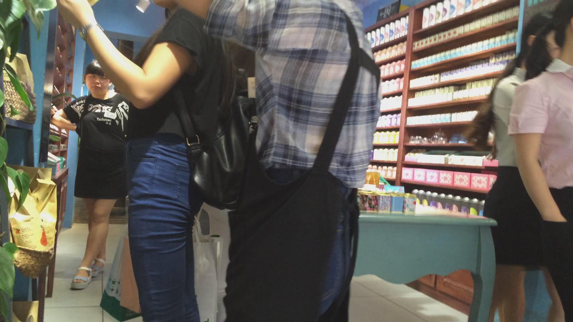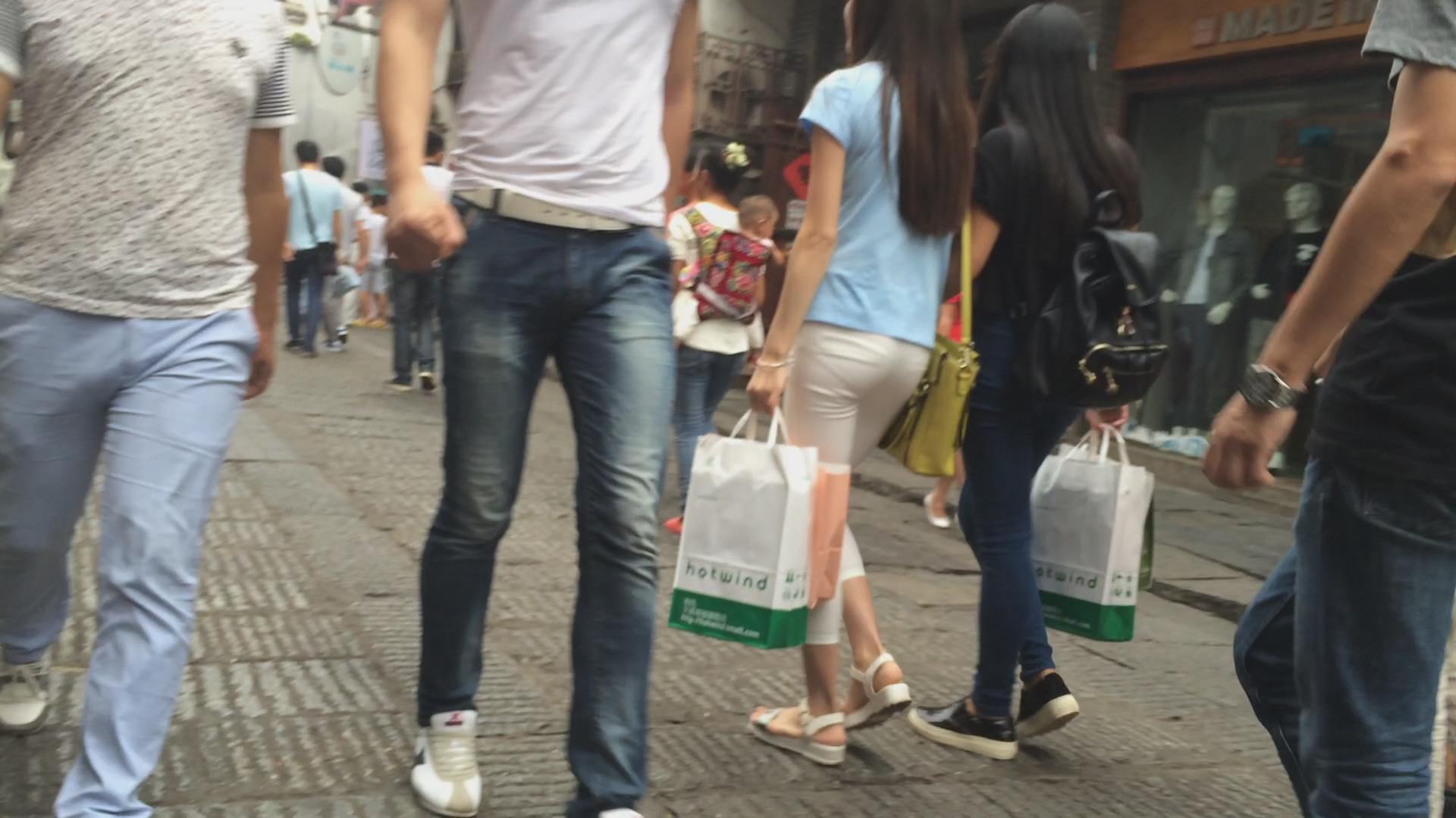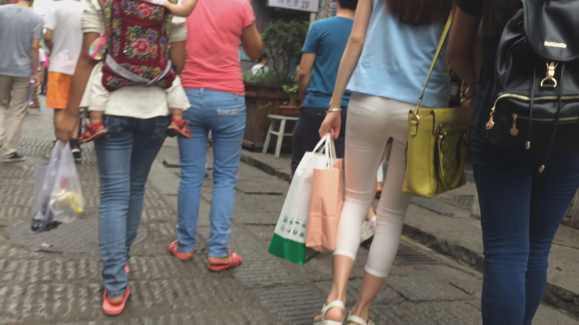 超紧绷的白裤细腿学生妹跟闺蜜逛街 编号5788