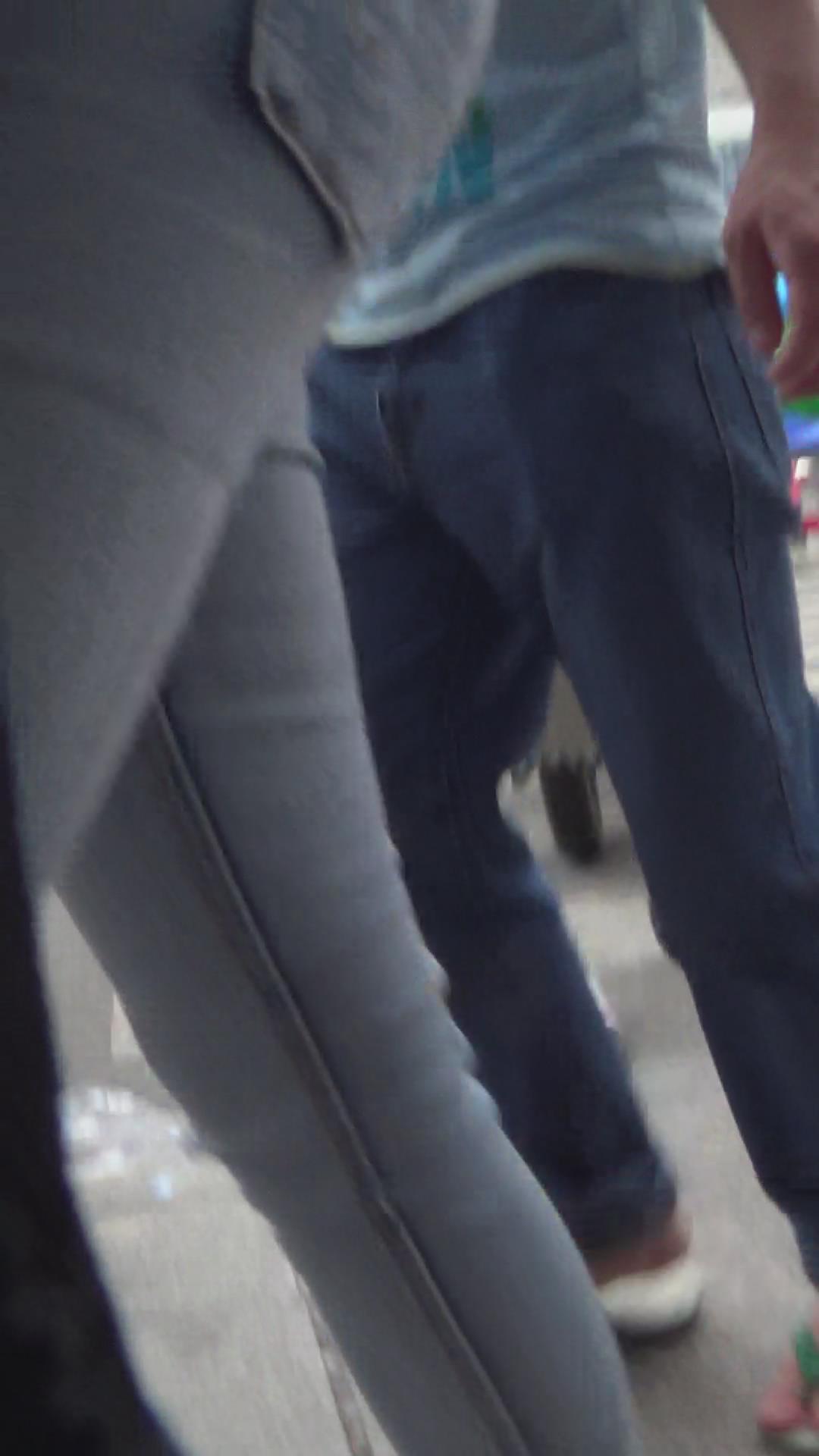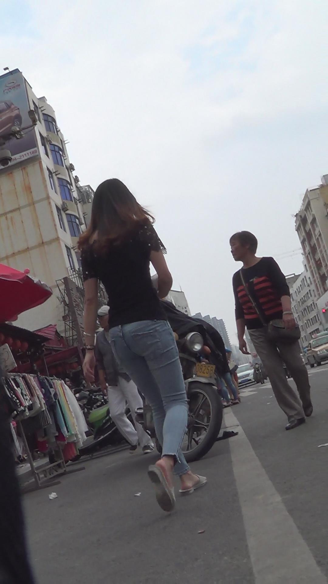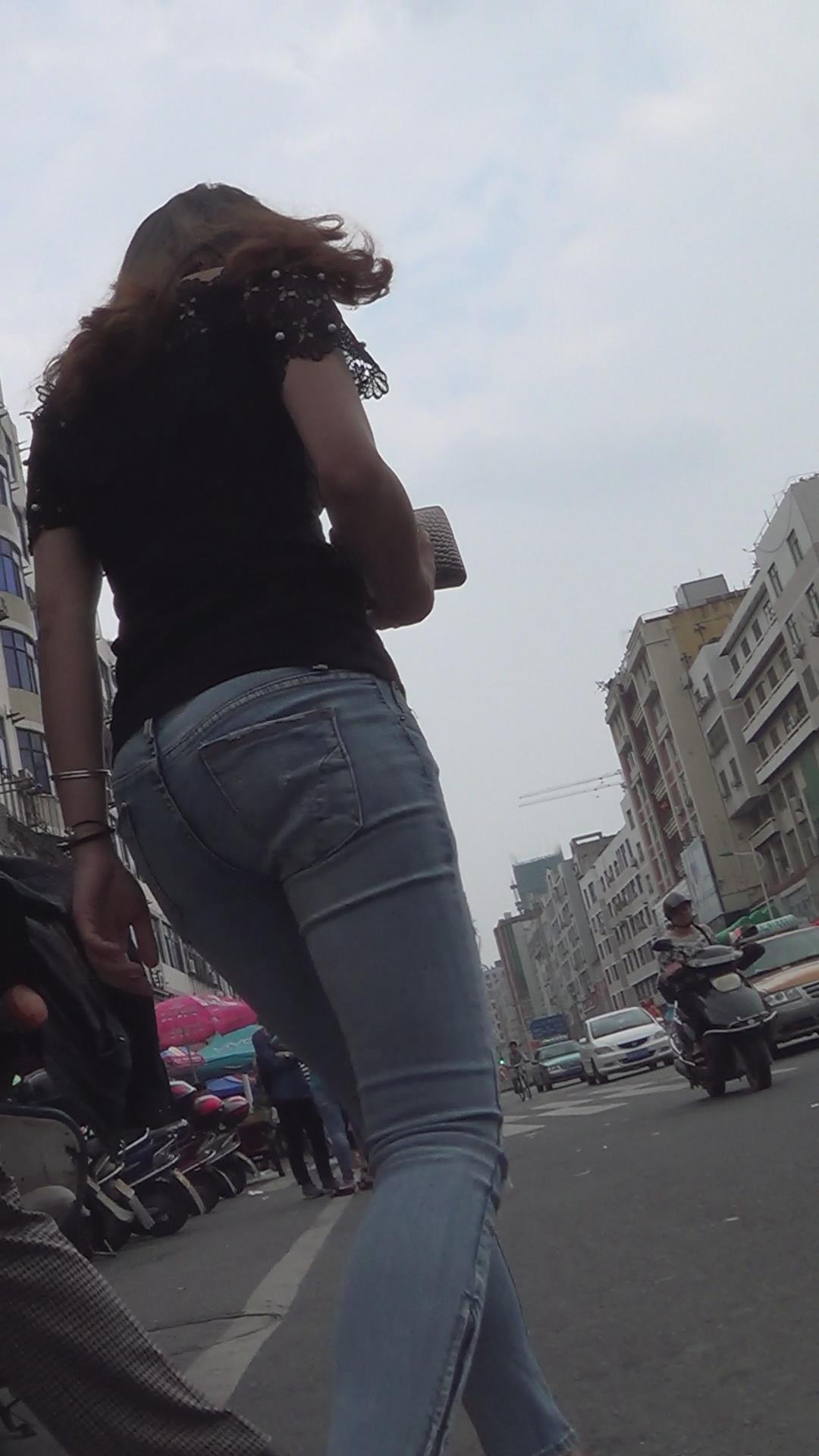 街拍蓝色紧身牛仔裤美女 编号5792