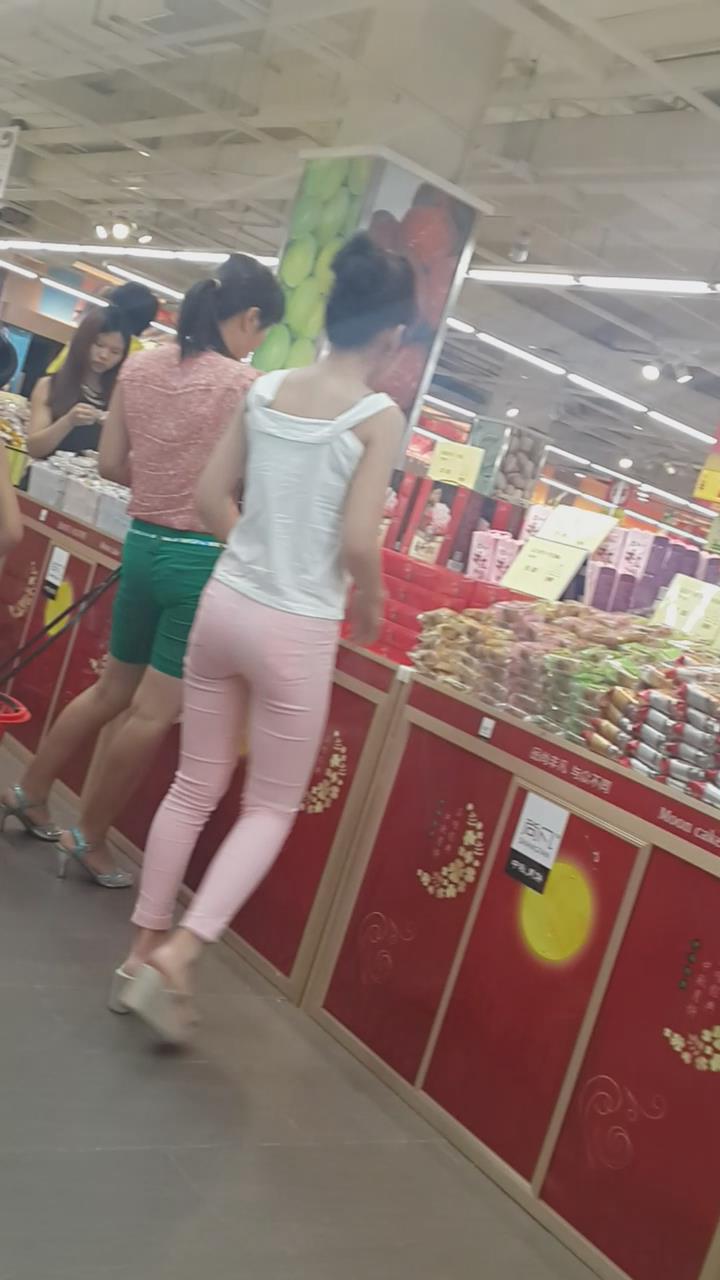 跟男友逛超市的粉色紧身裤苗条美女 编号5801