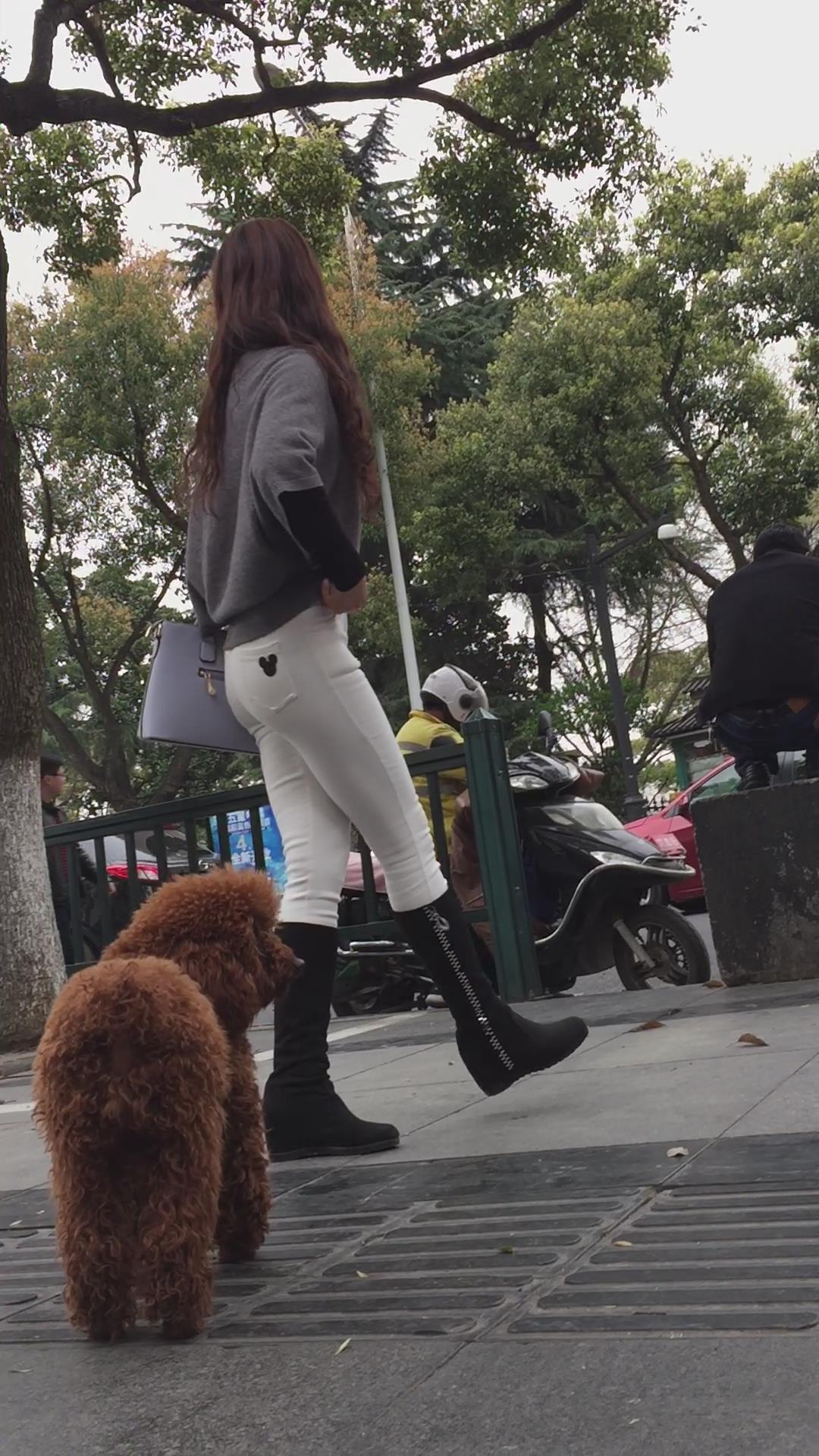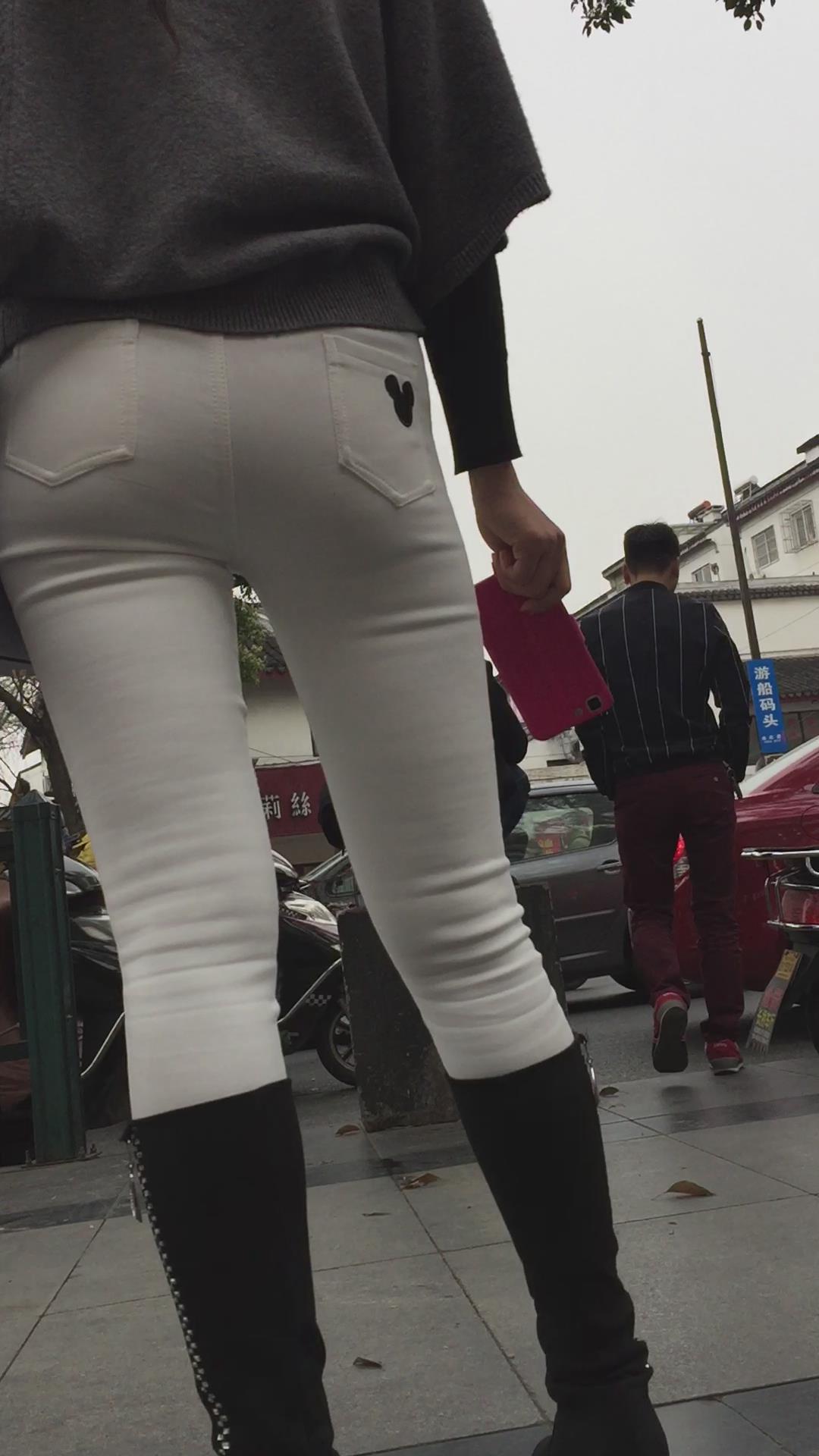 街拍紧身白裤长筒靴美少妇在等密友! 编号5807