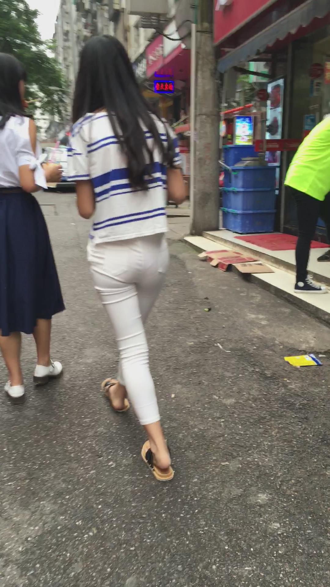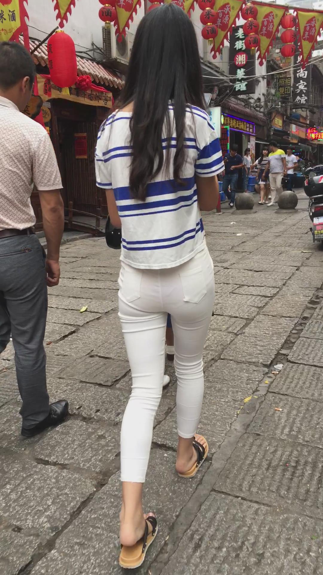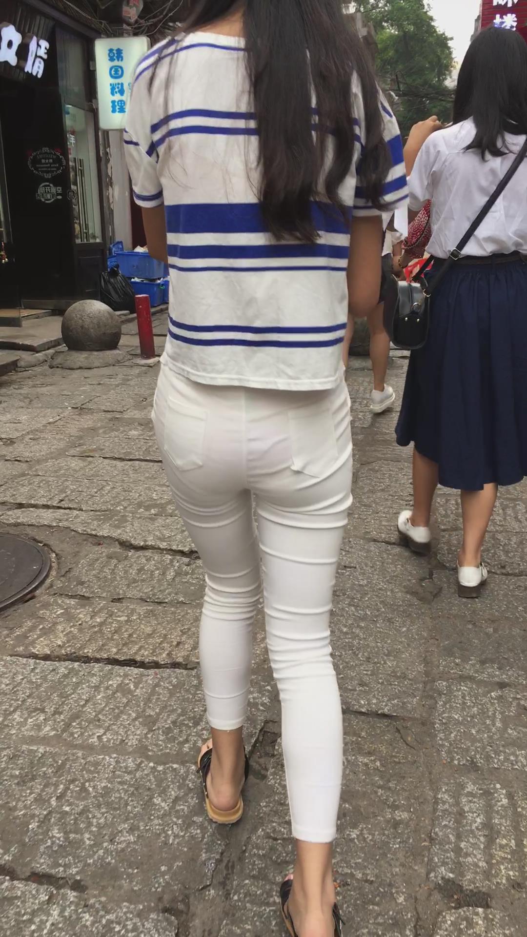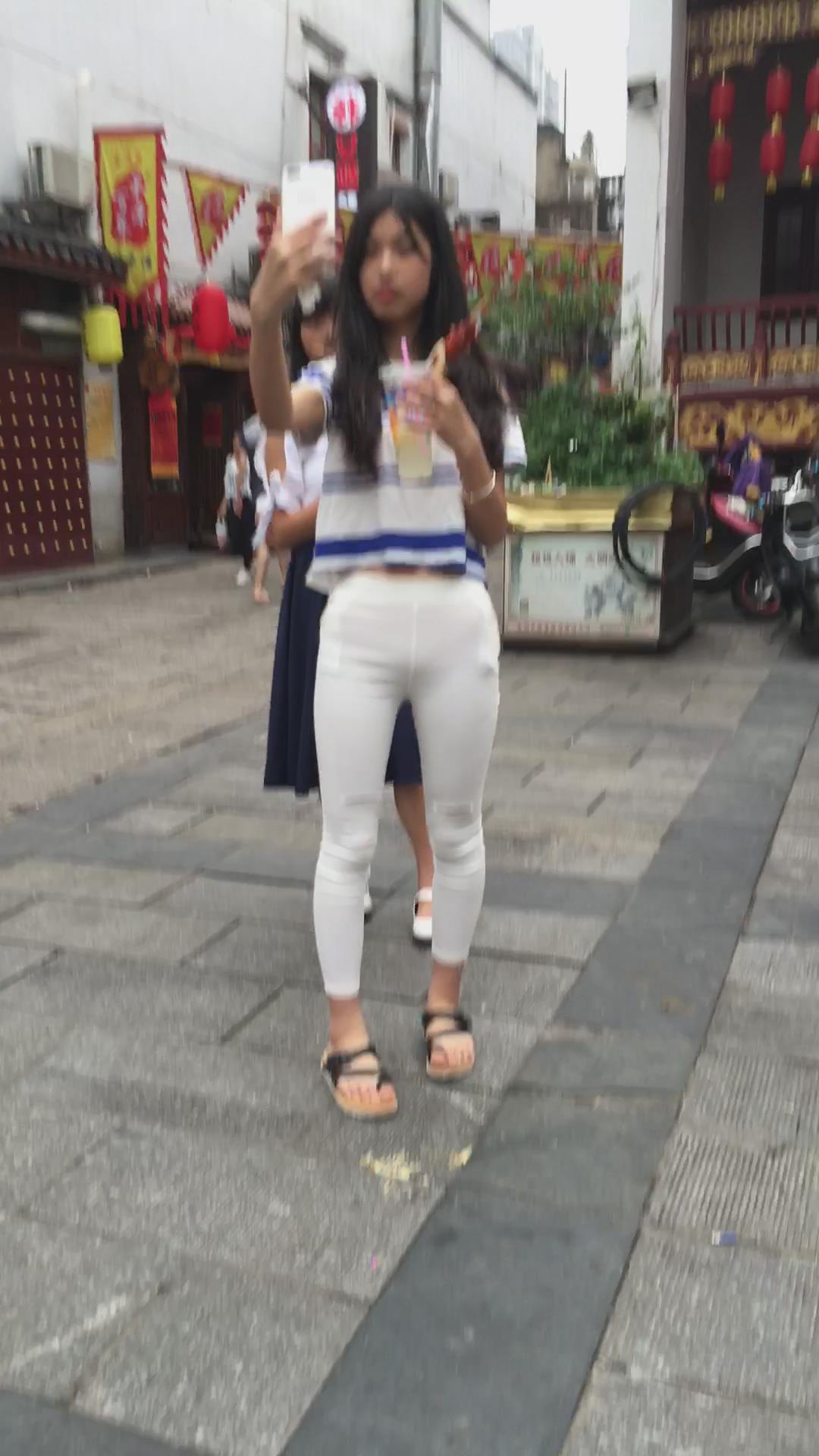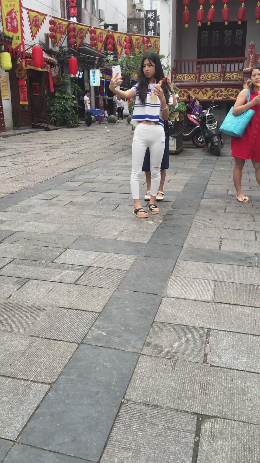喜欢自拍的清纯紧身白裤少女 编号5814