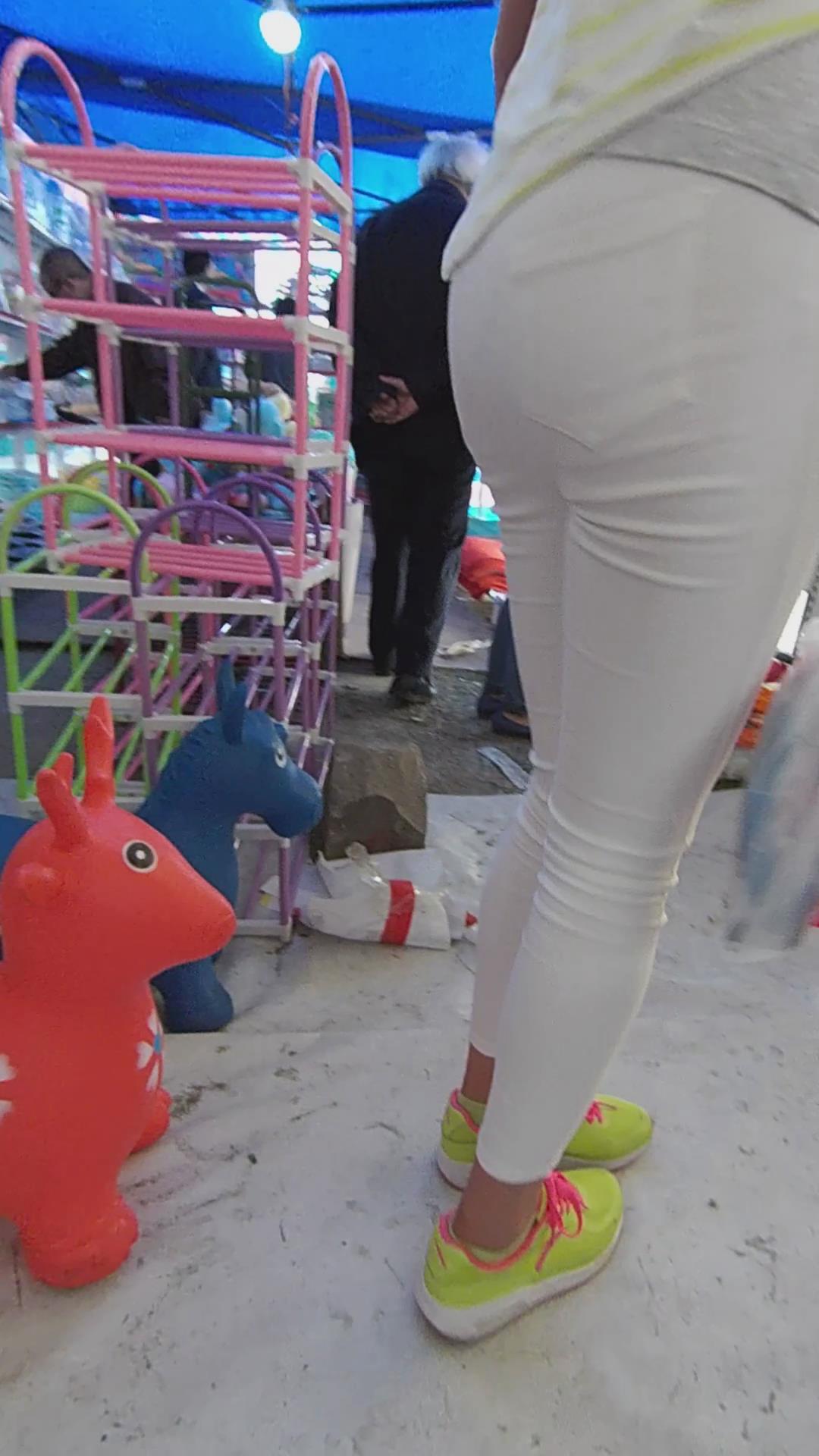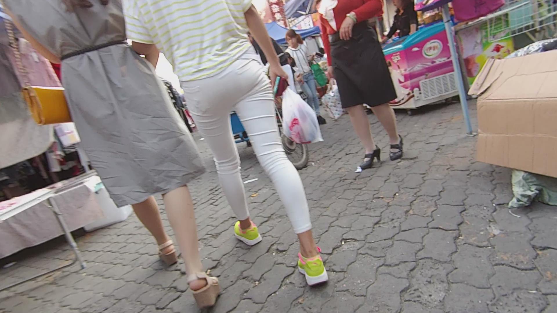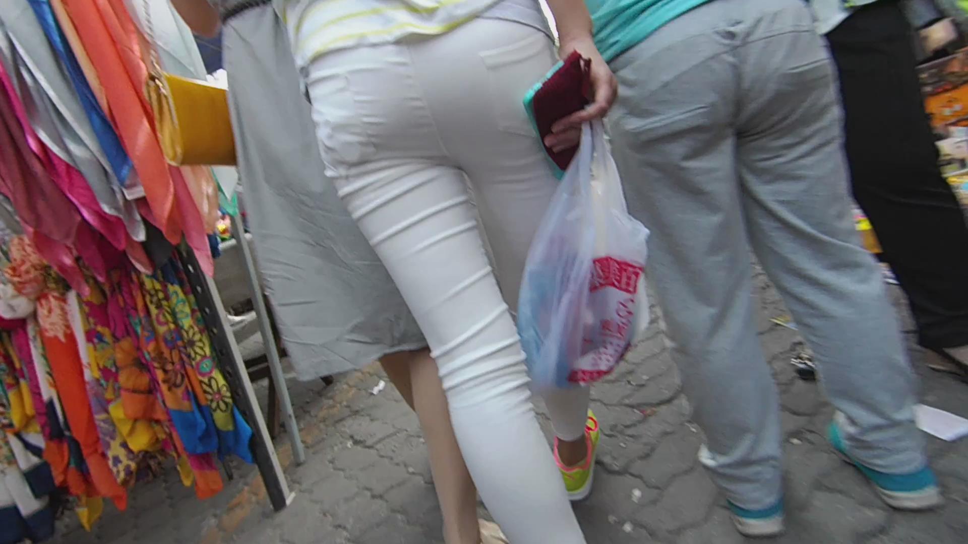 街拍清纯紧身白裤小美女 编号5816