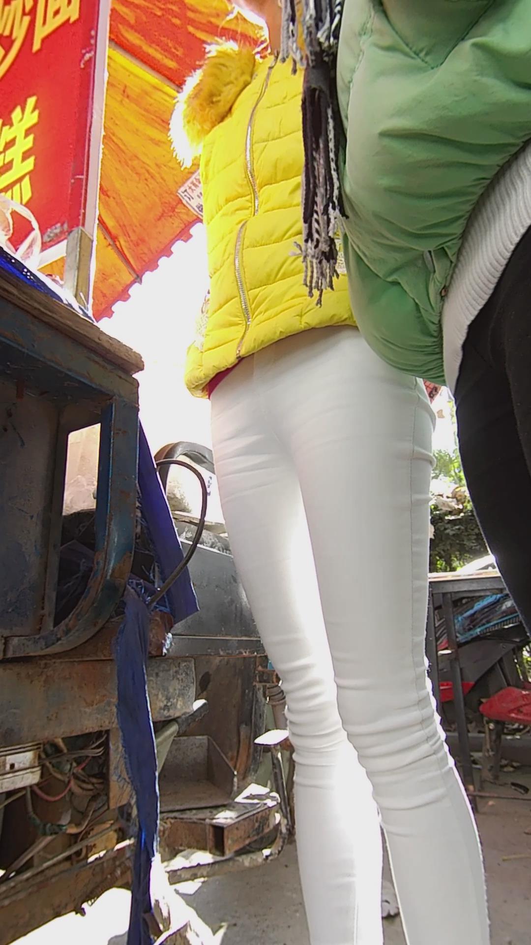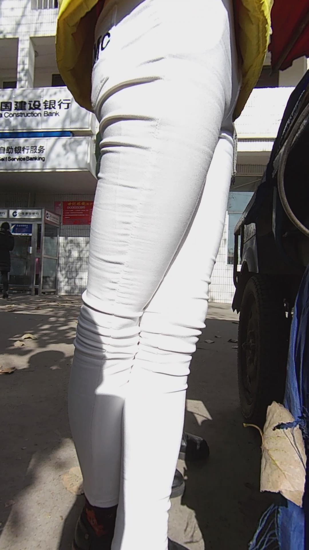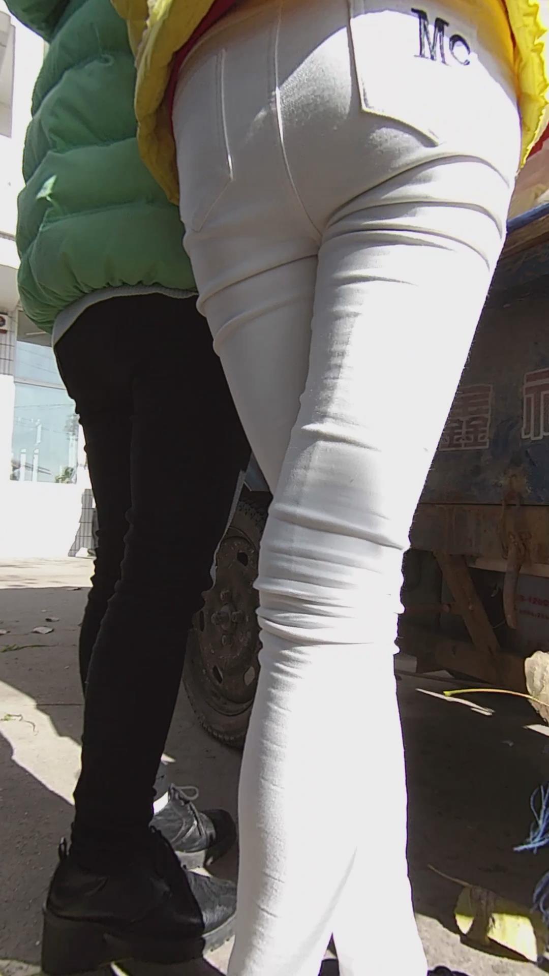 街拍和室友出门买饭的黄衣紧身白裤大学妹子 编号5821