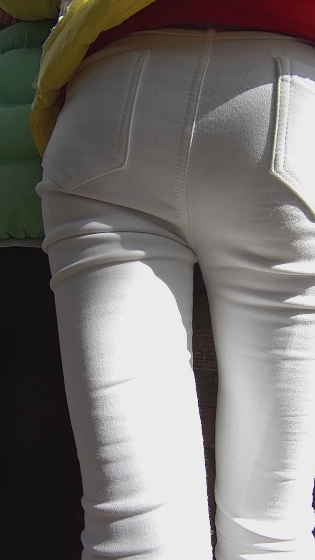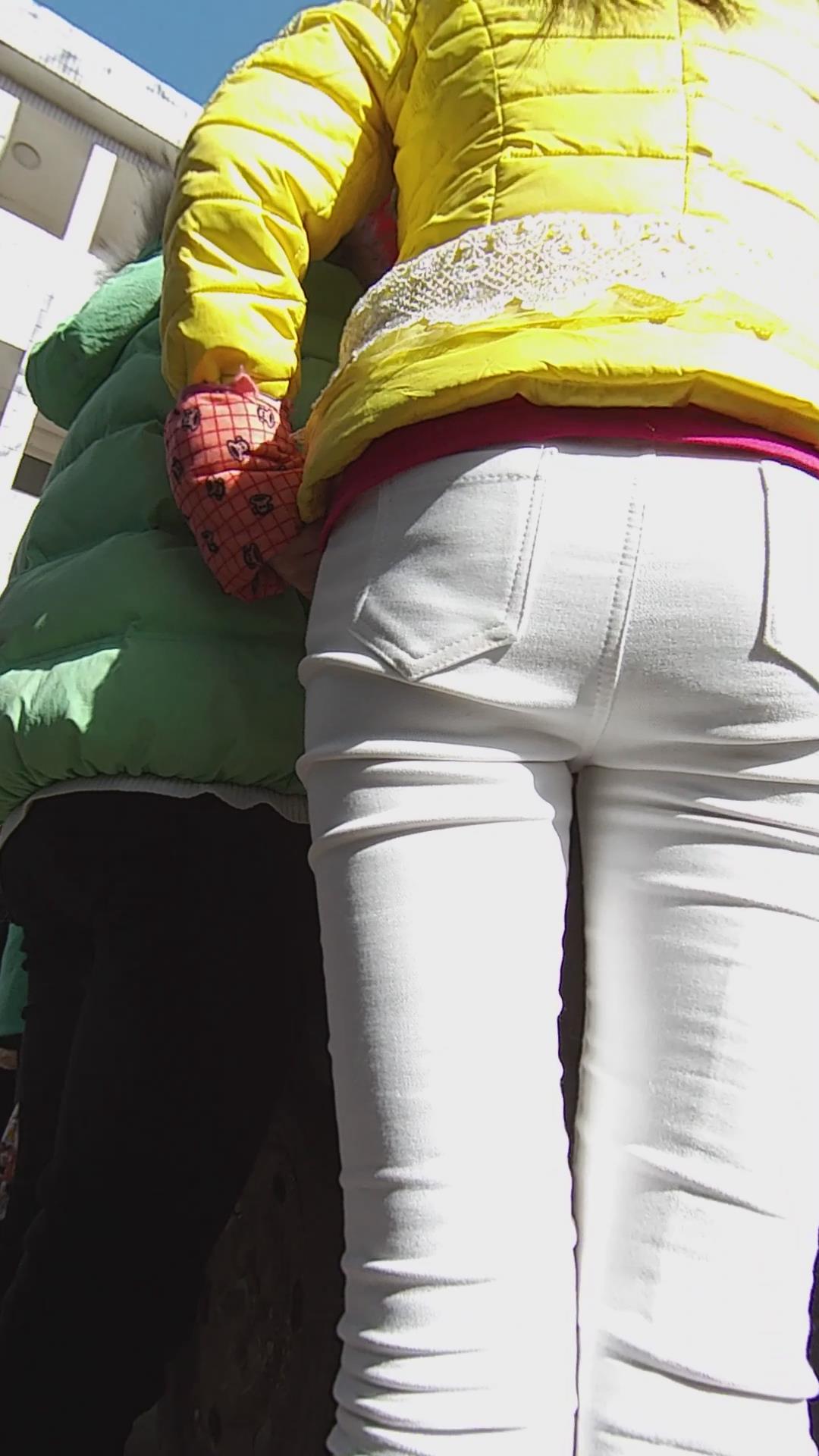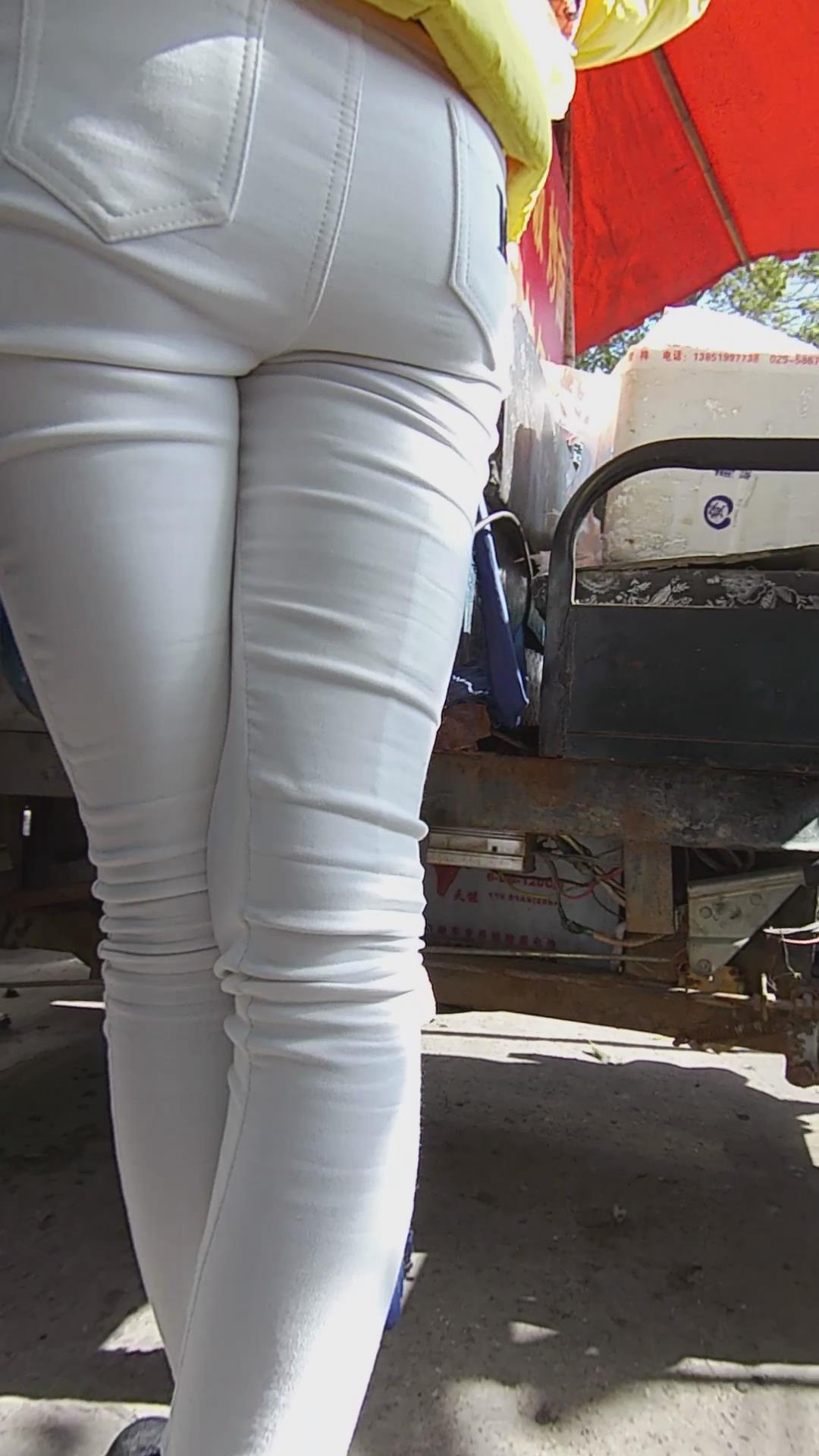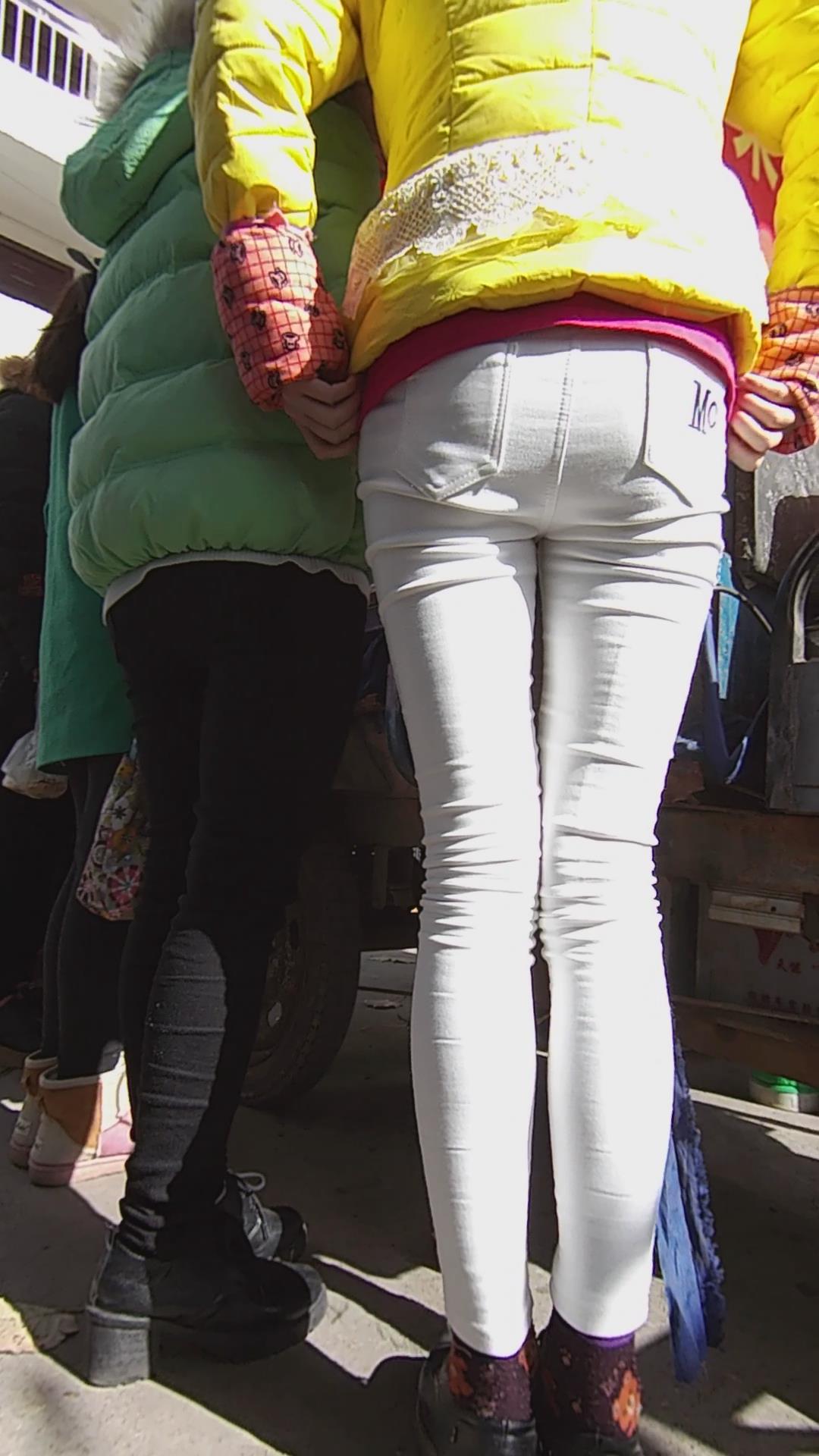 街拍和室友出门买饭的黄衣紧身白裤大学妹子 编号5821