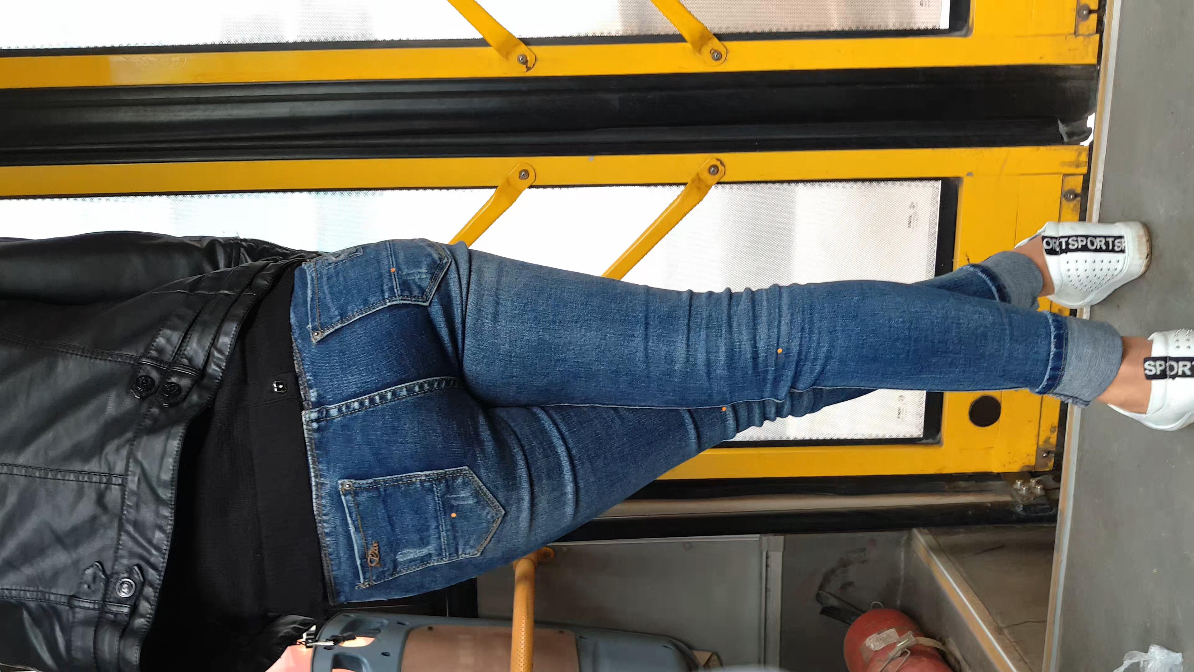 公交偶遇紧身蓝色牛仔裤翘臀美眉交叉腿站着 编号5827