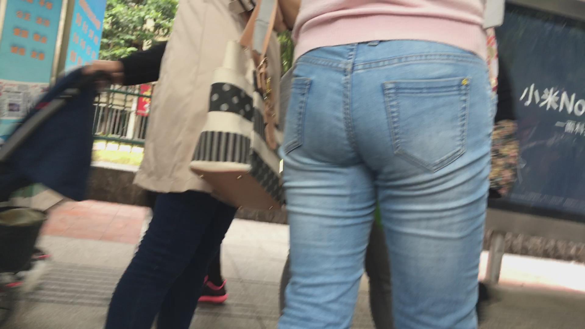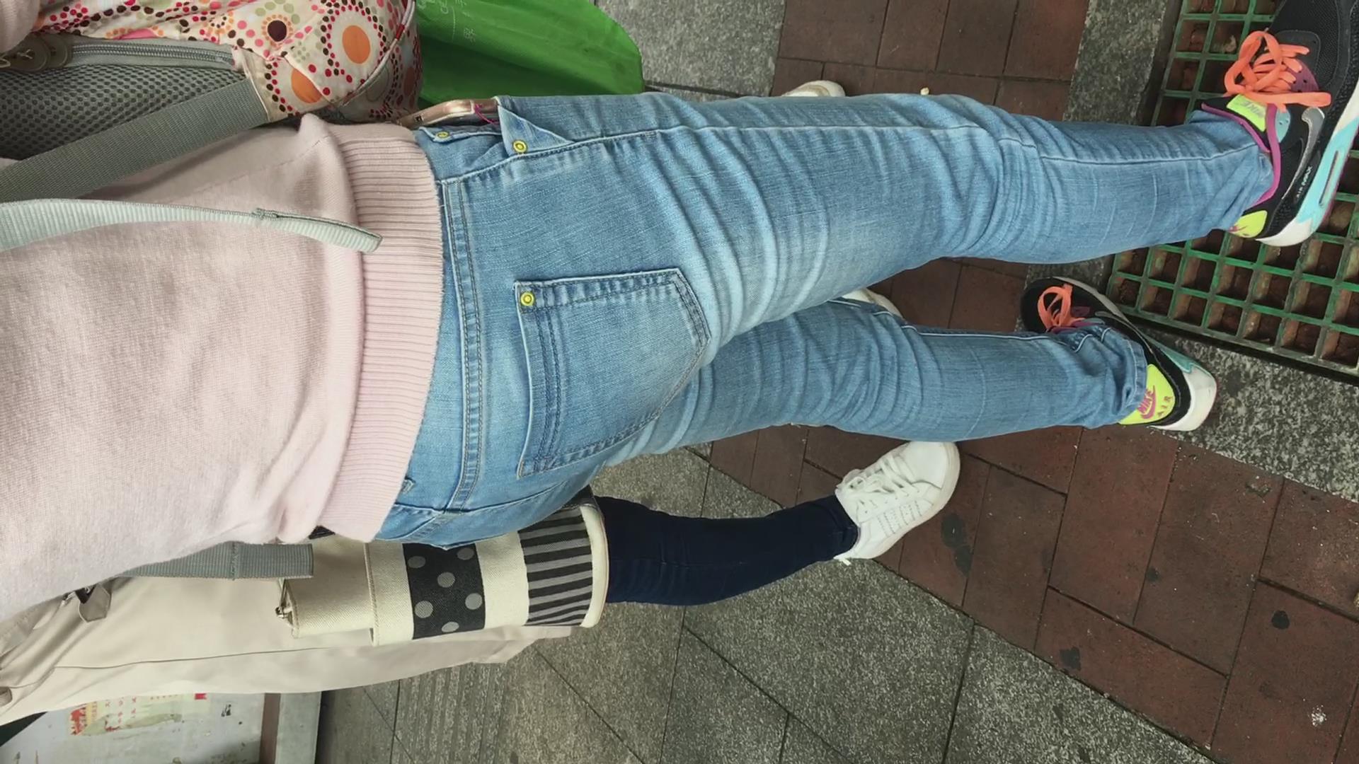公交站偶遇大美臀紧身蓝牛运动鞋美女 编号5837