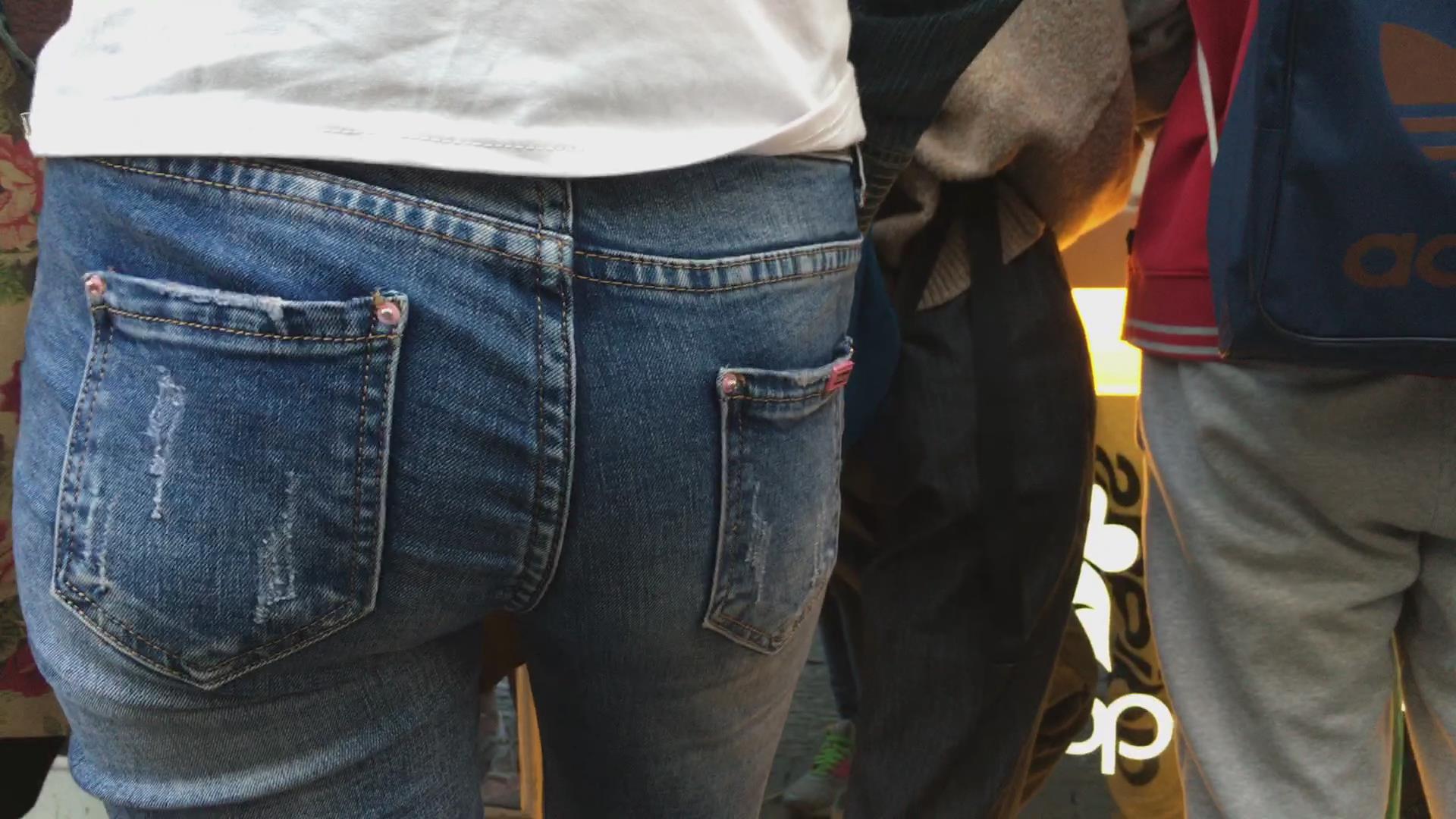 偶遇不错的紧身牛仔美臀小美女 编号5843