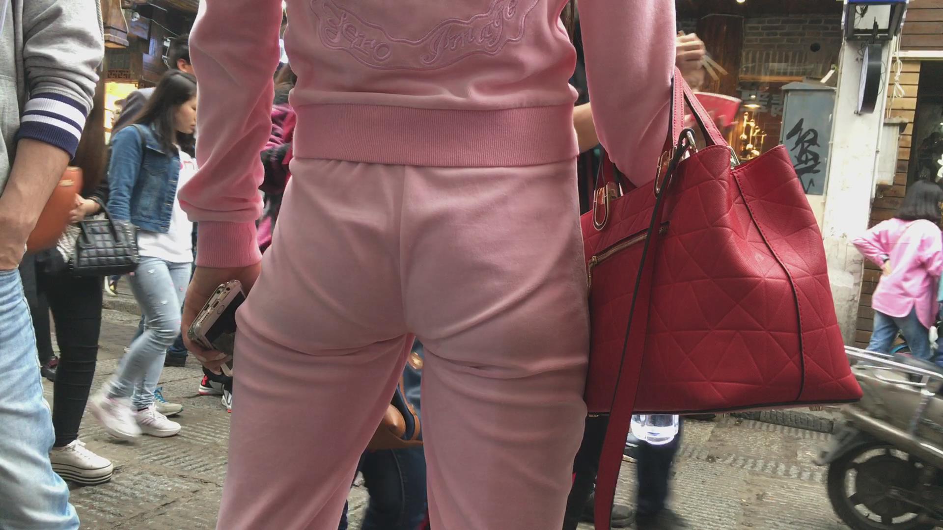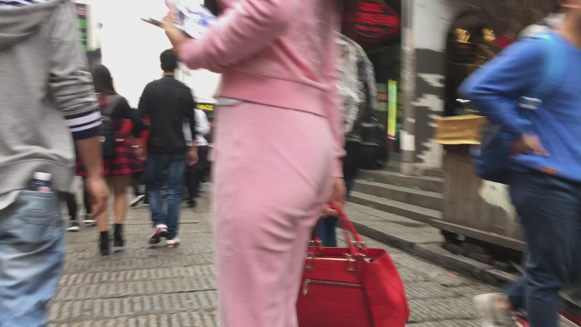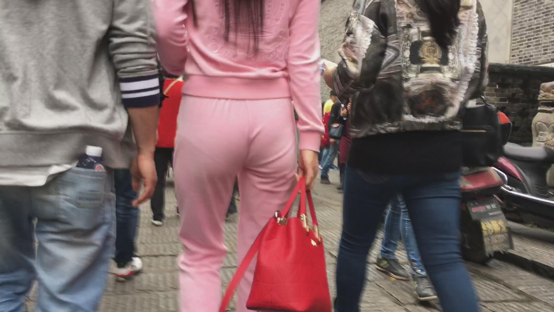贴身粉色运动装的妹子,漂亮的臀部很性感 编号5852