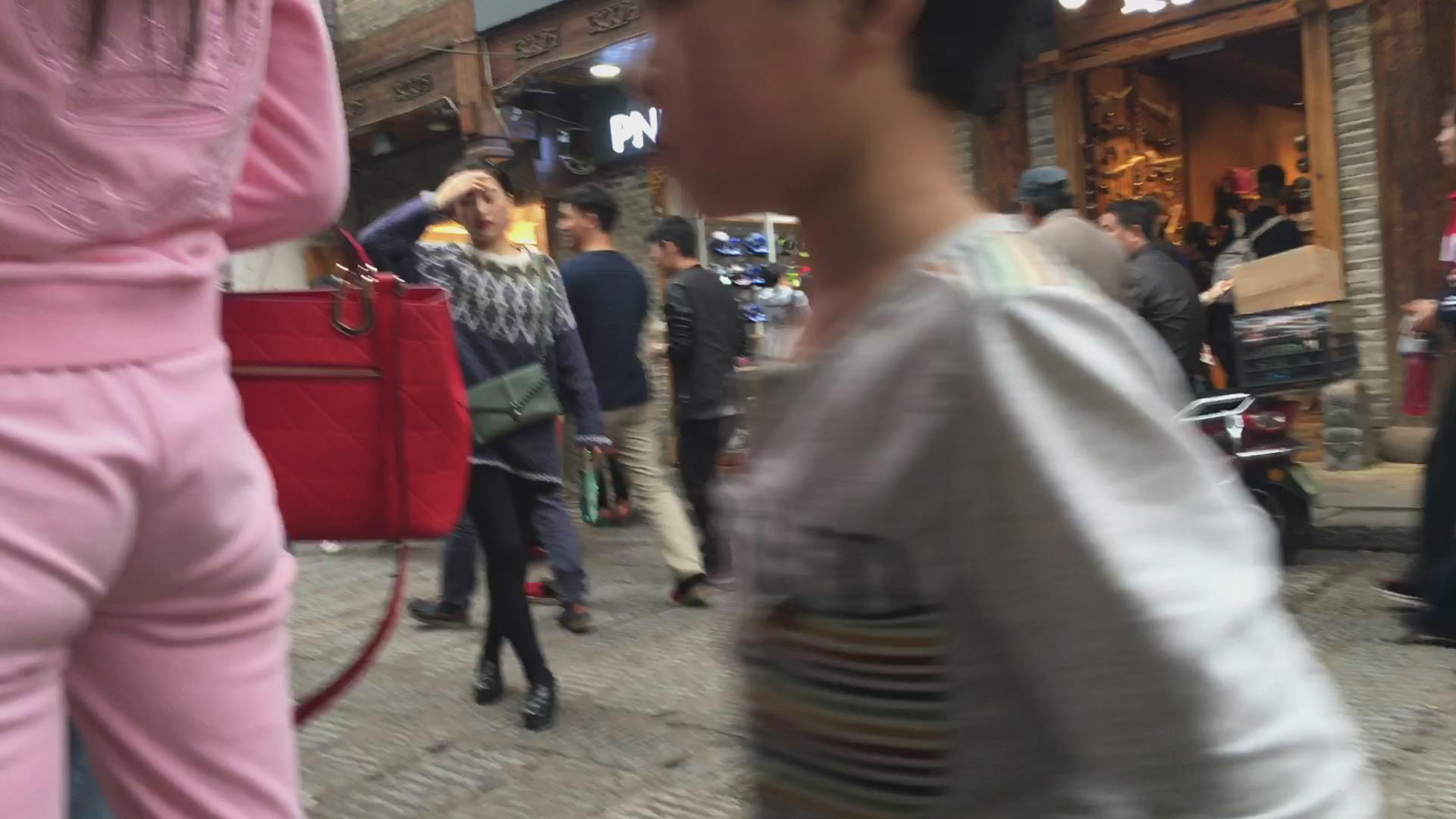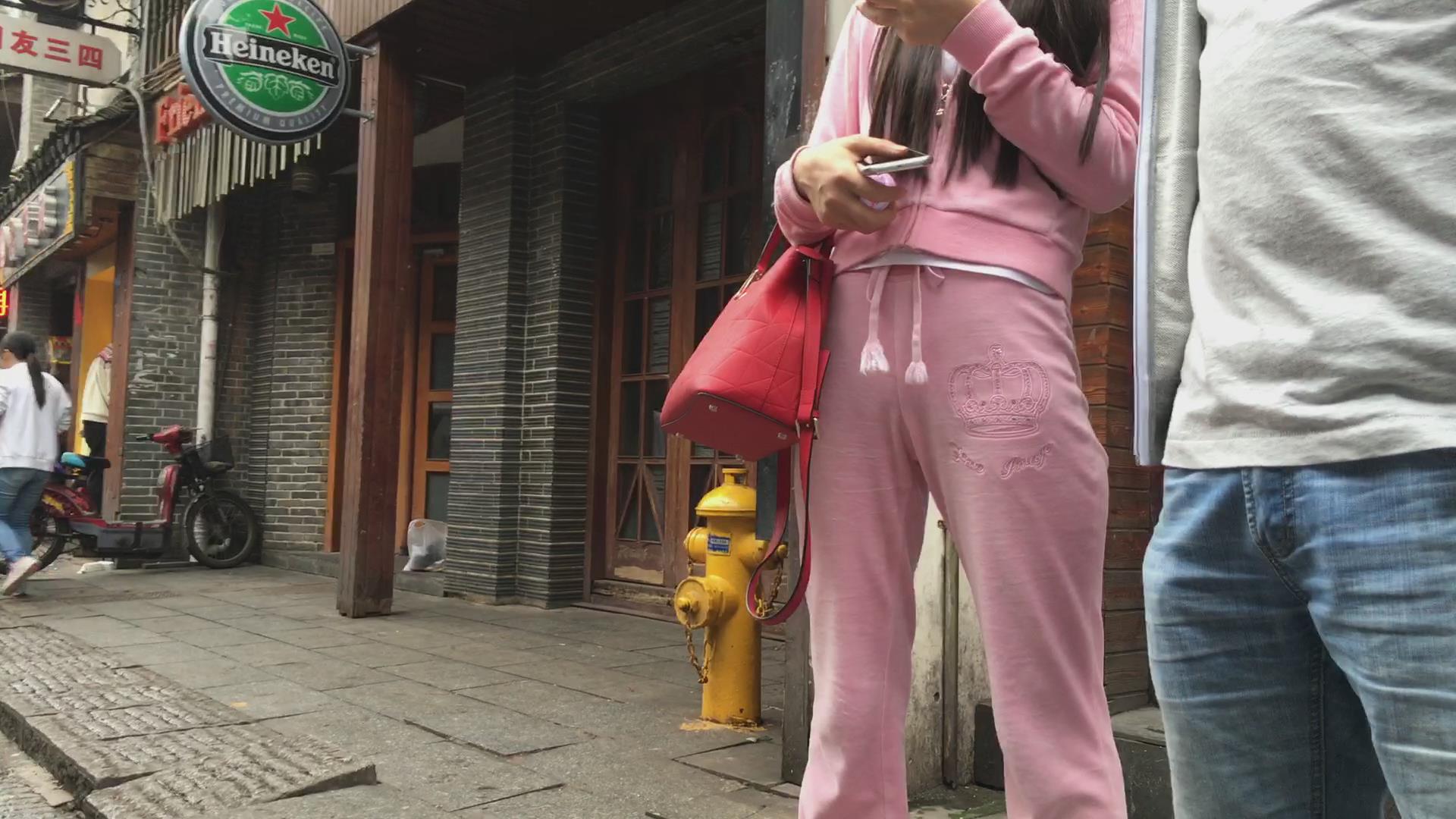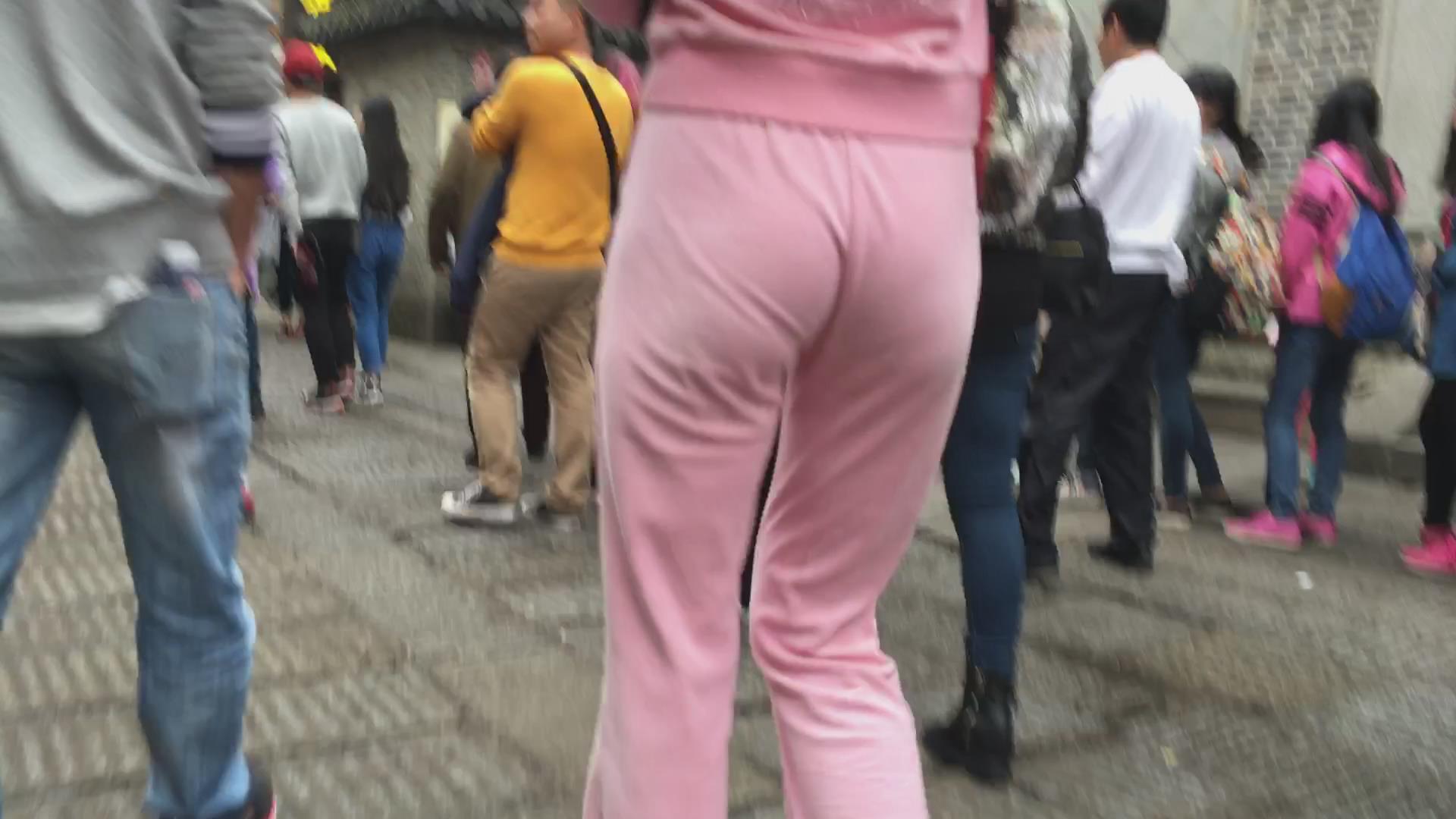 贴身粉色运动装的妹子,漂亮的臀部很性感 编号5852
