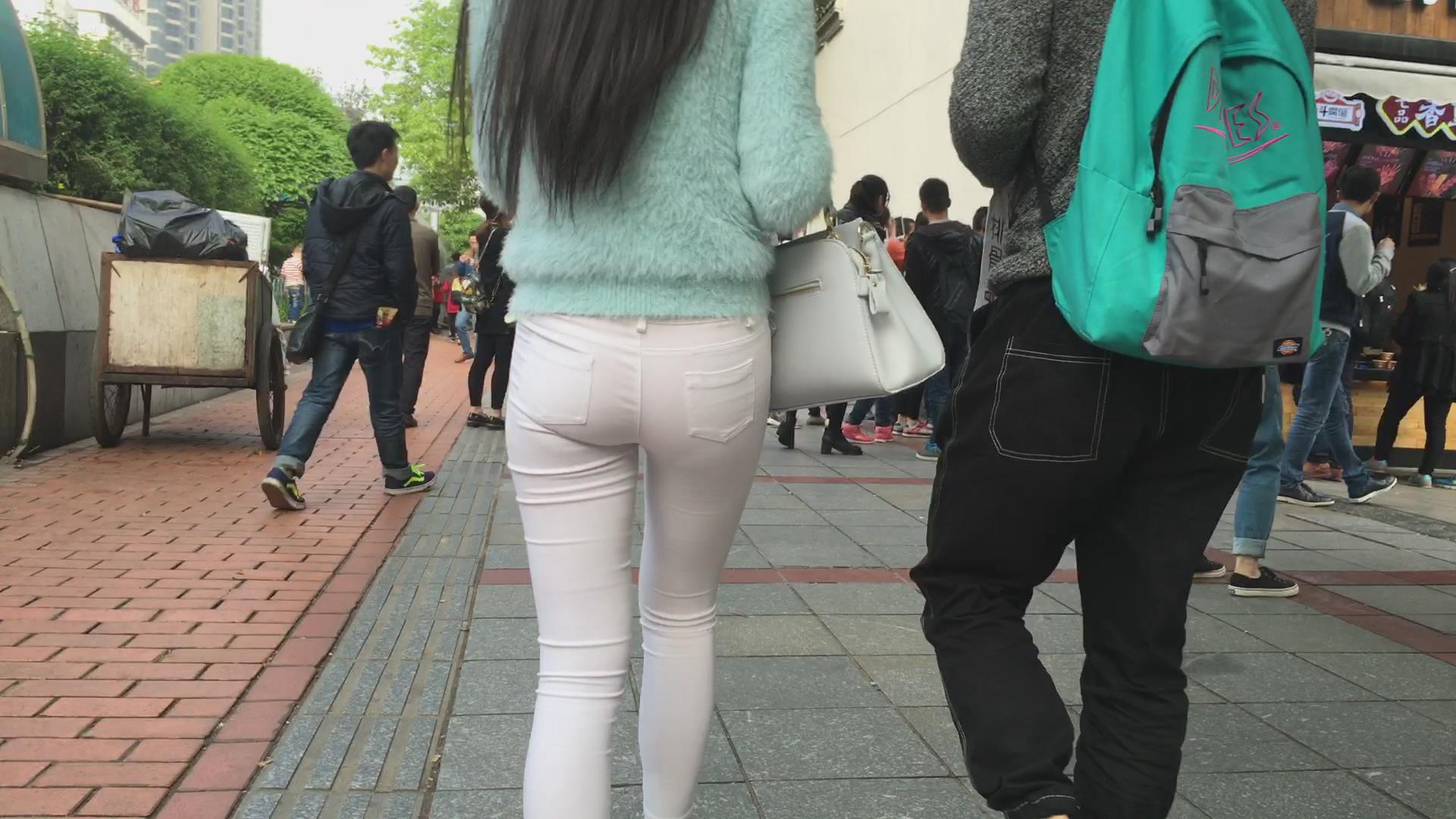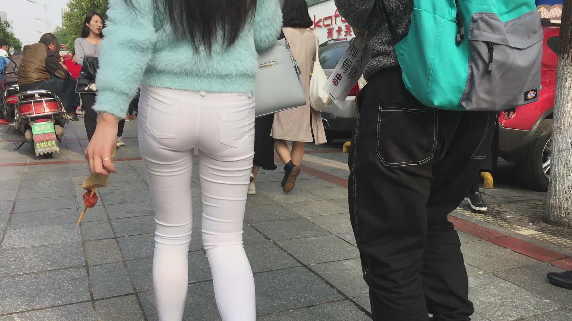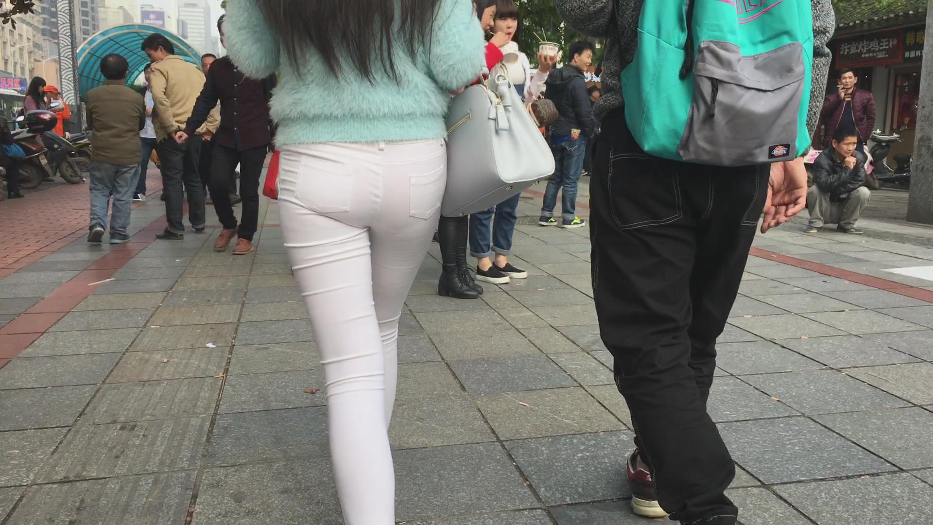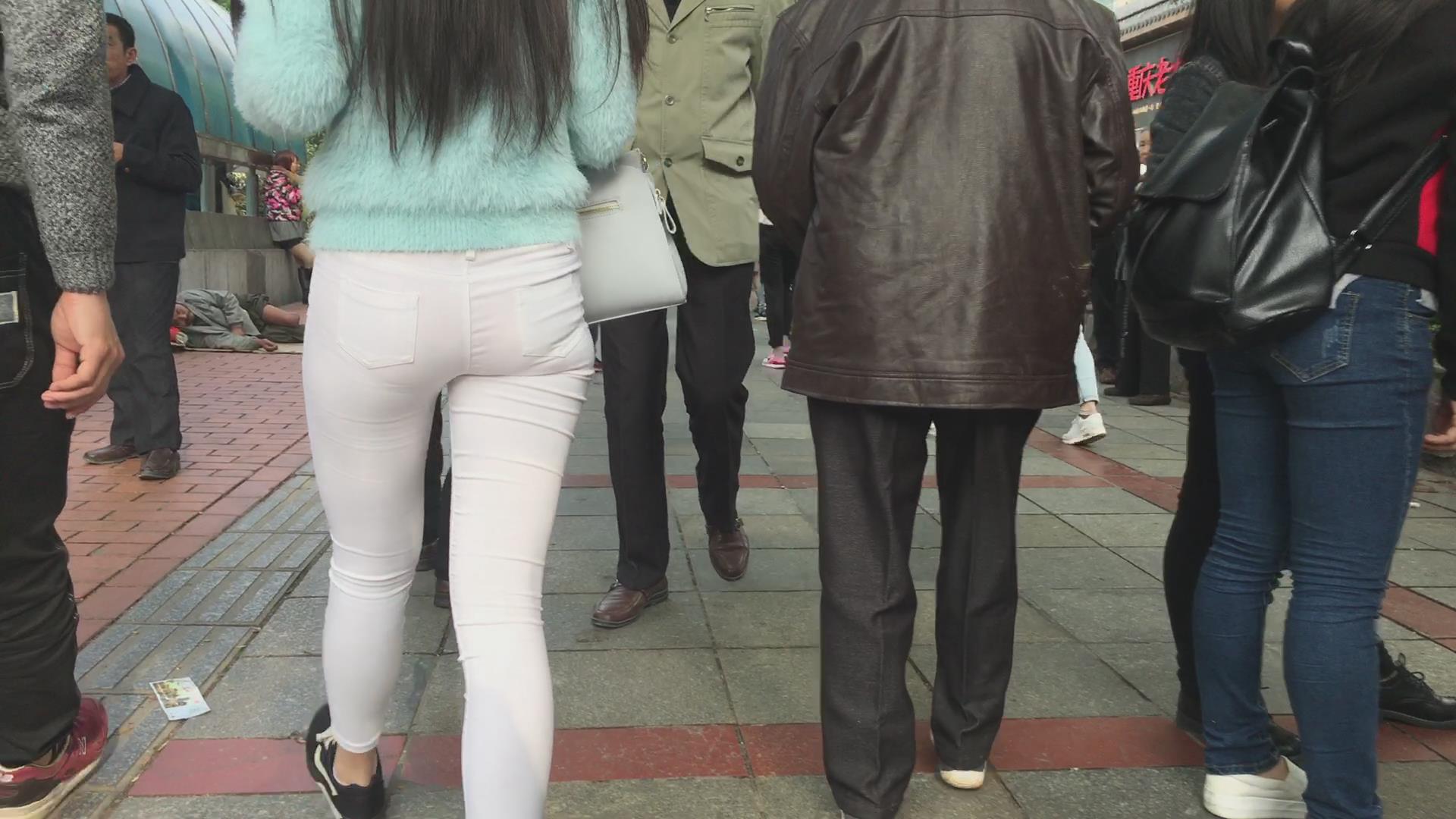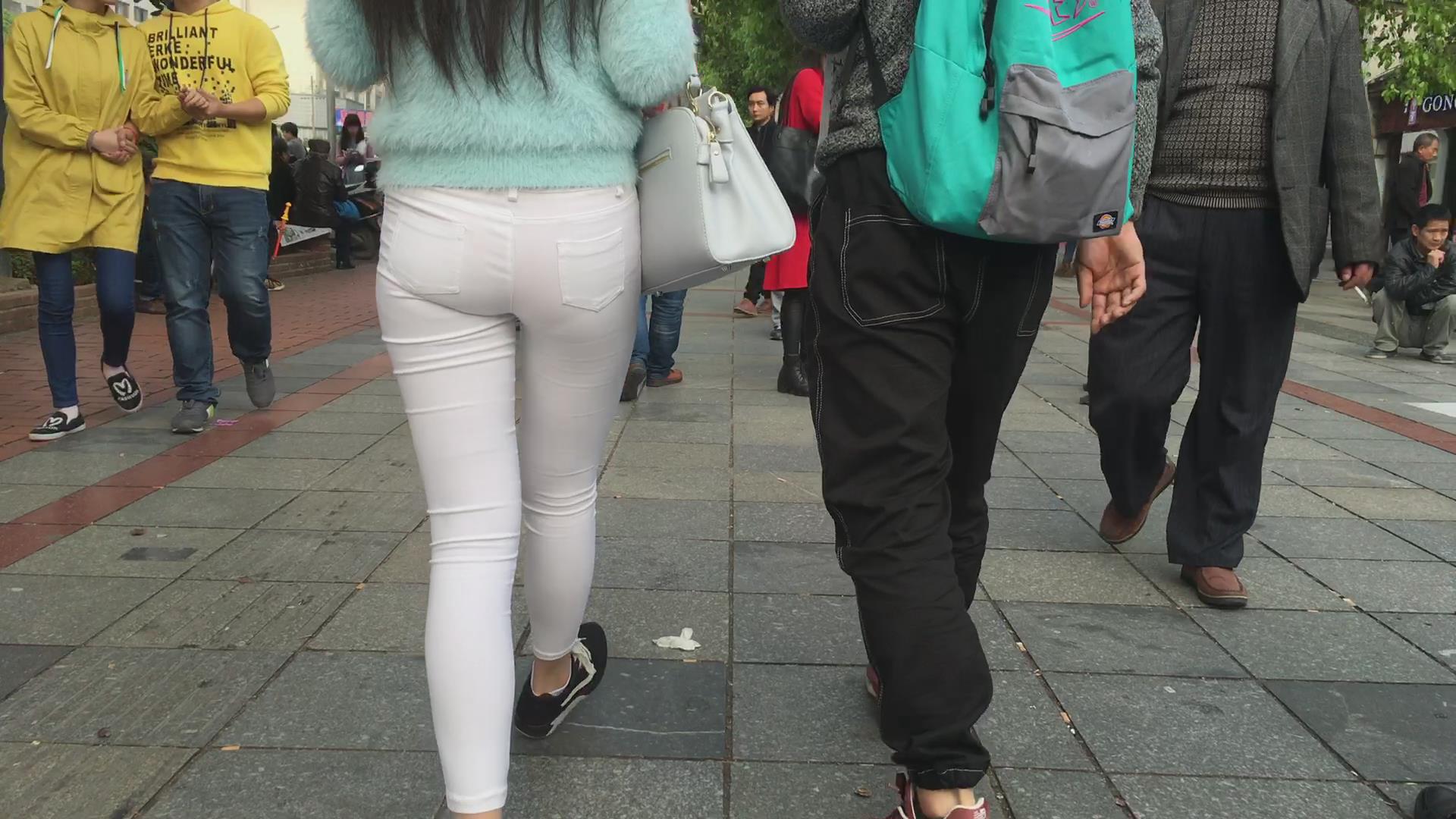 跟拍超级紧身透明白裤美眉,内内清晰可见 编号5853