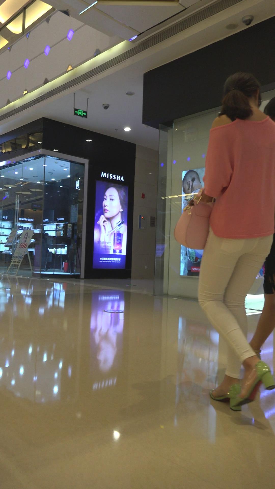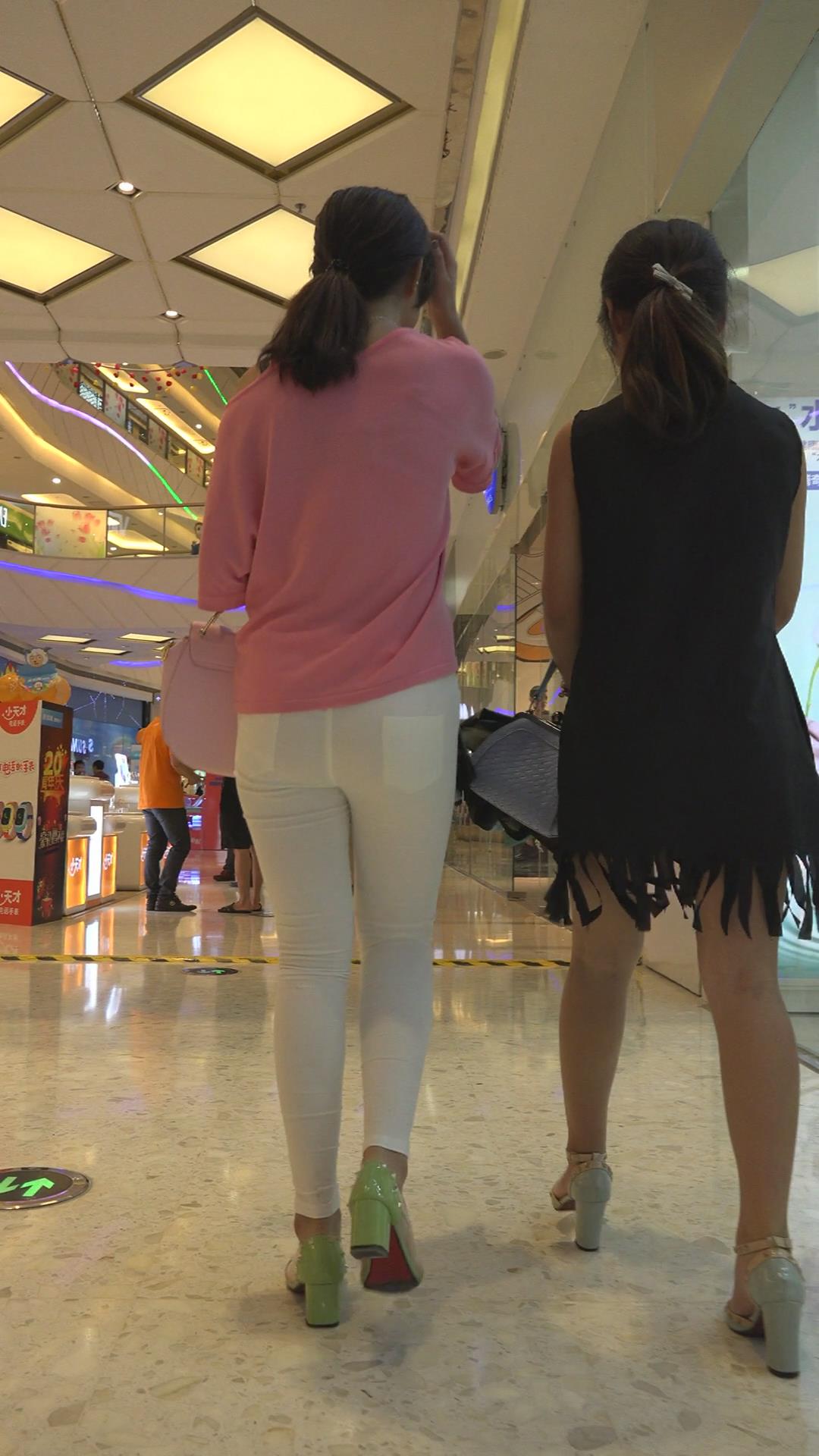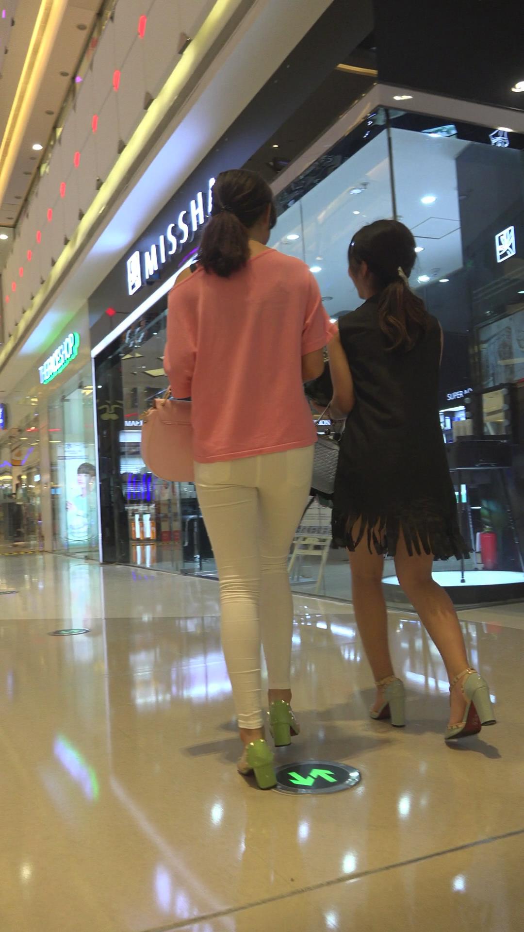 紧身白裤粉衣秀美姐妹花逛商场 编号5865