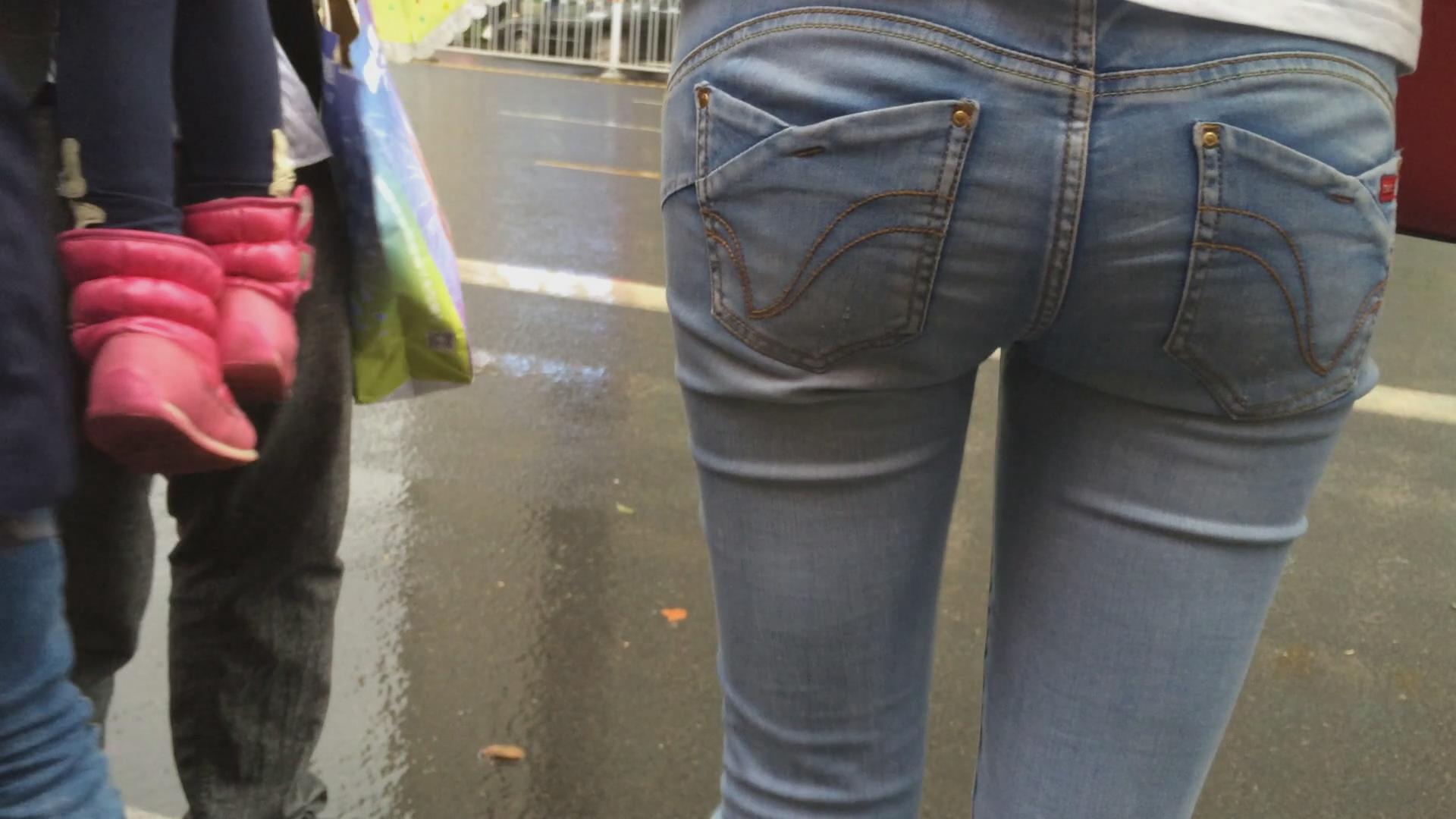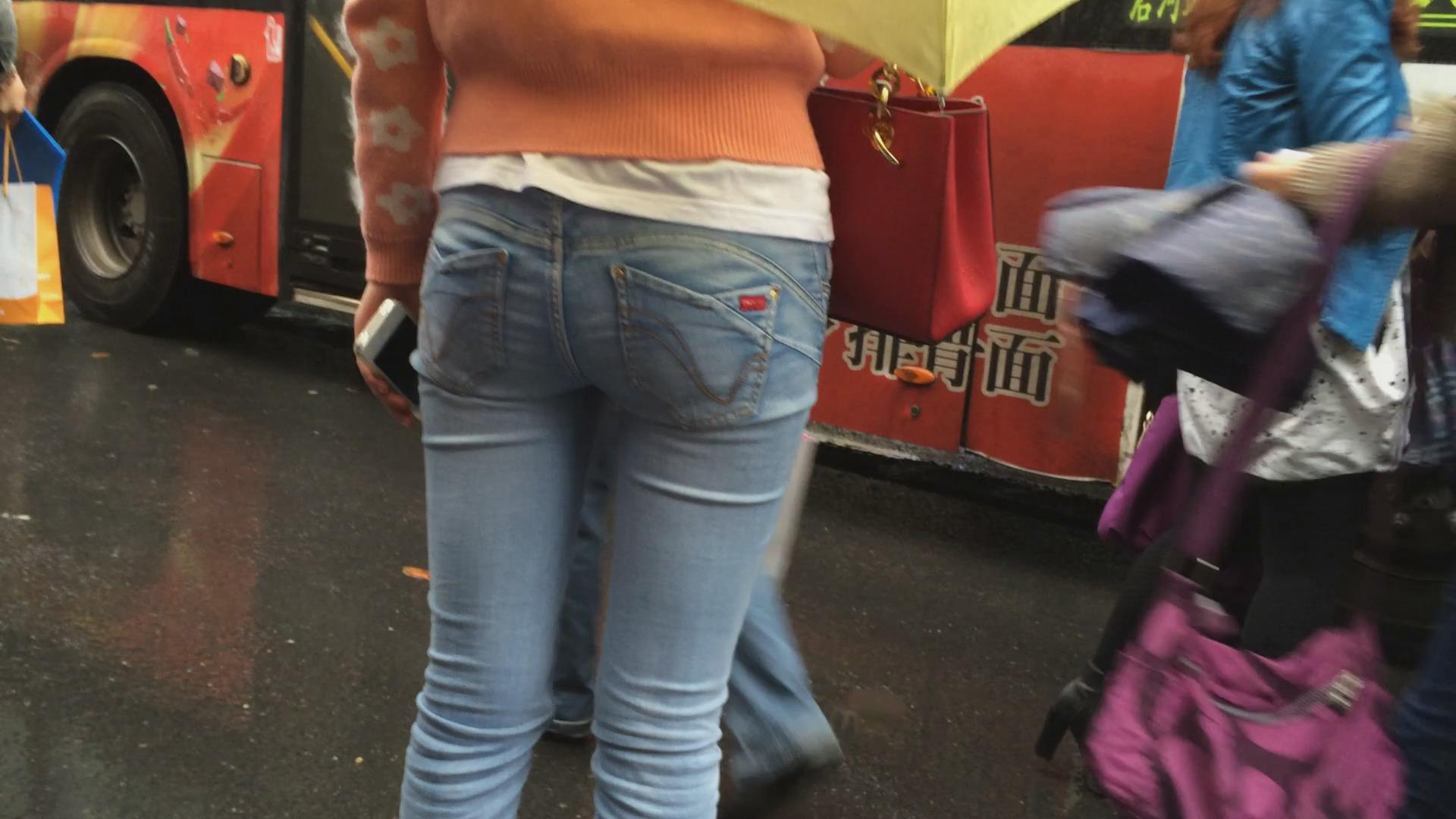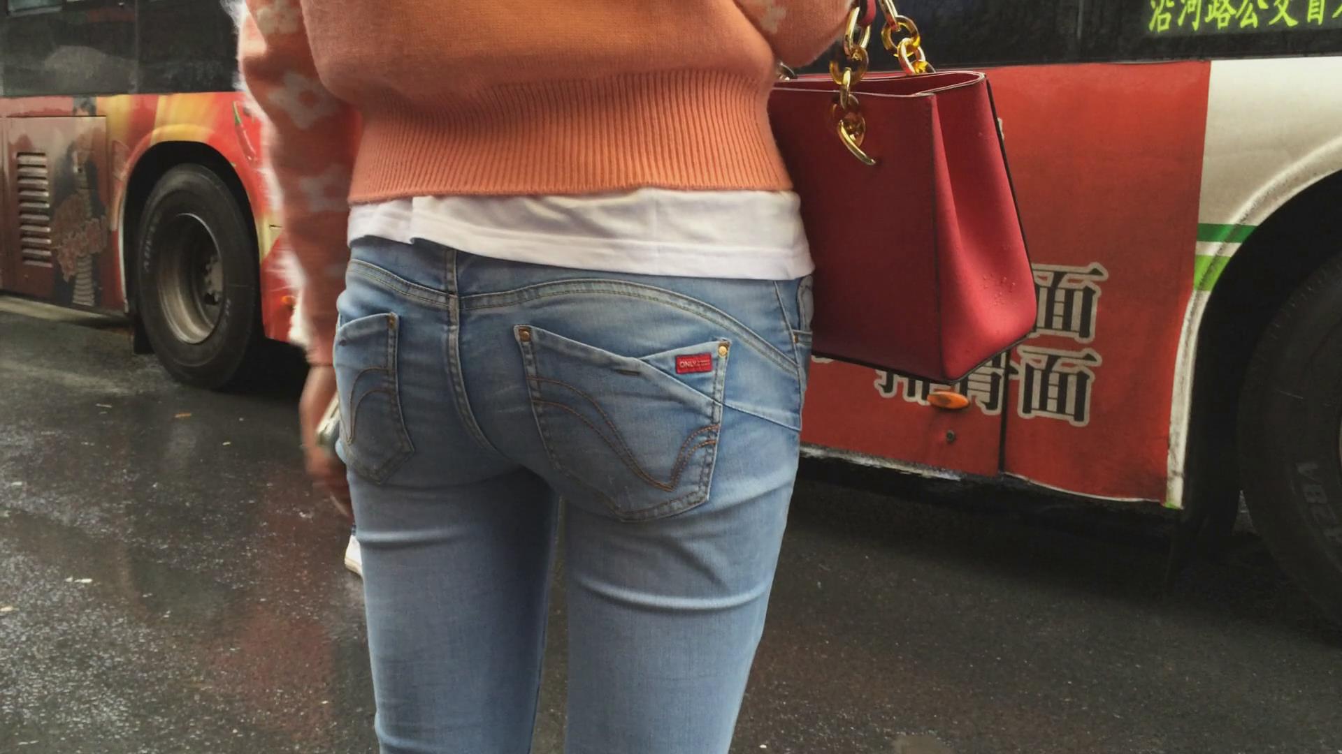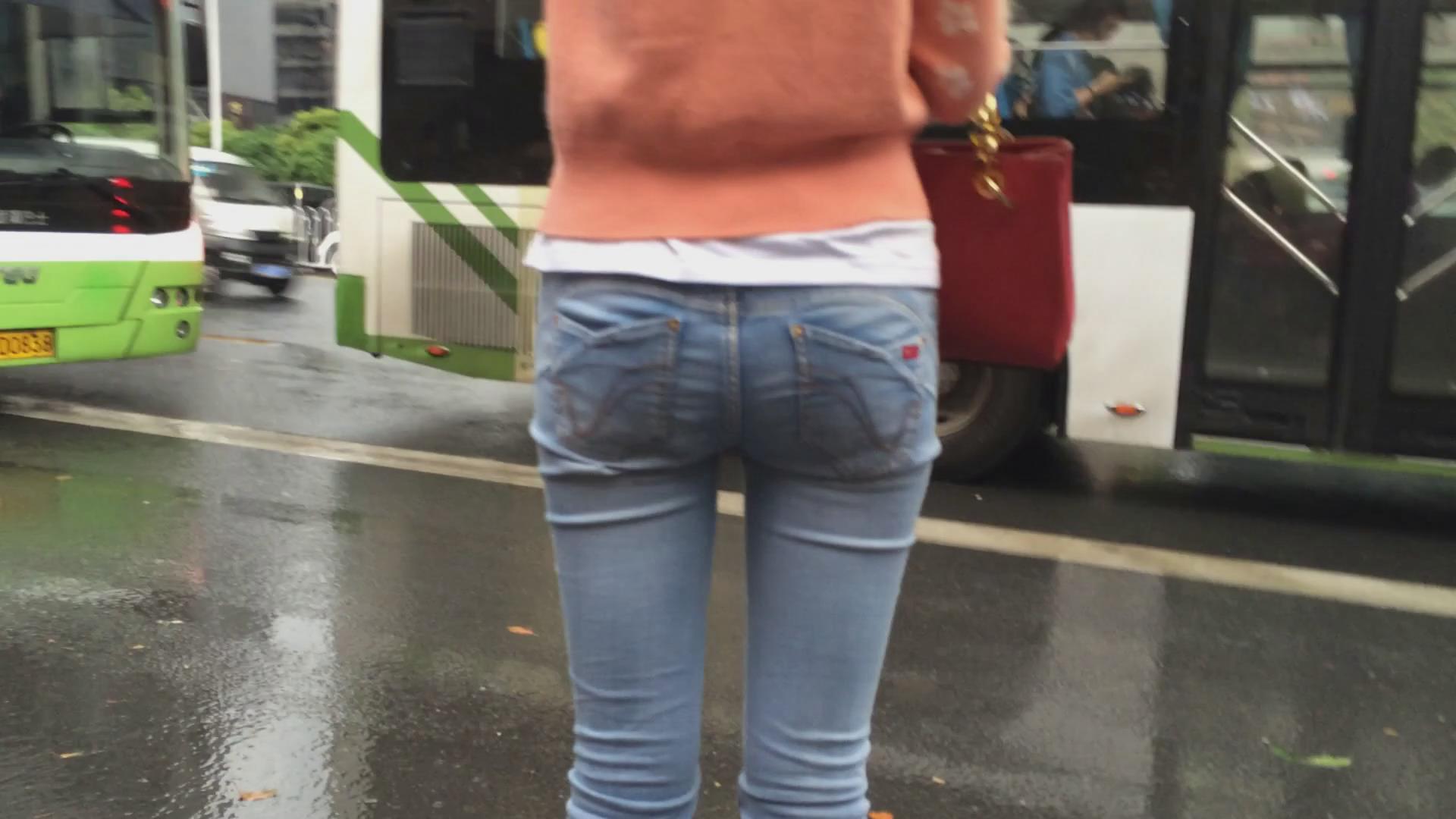 等公交的蓝色紧身牛仔裤小妹 编号5872