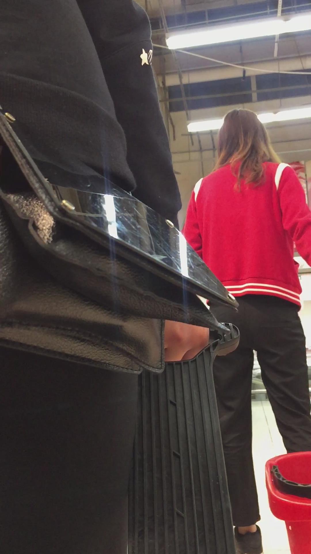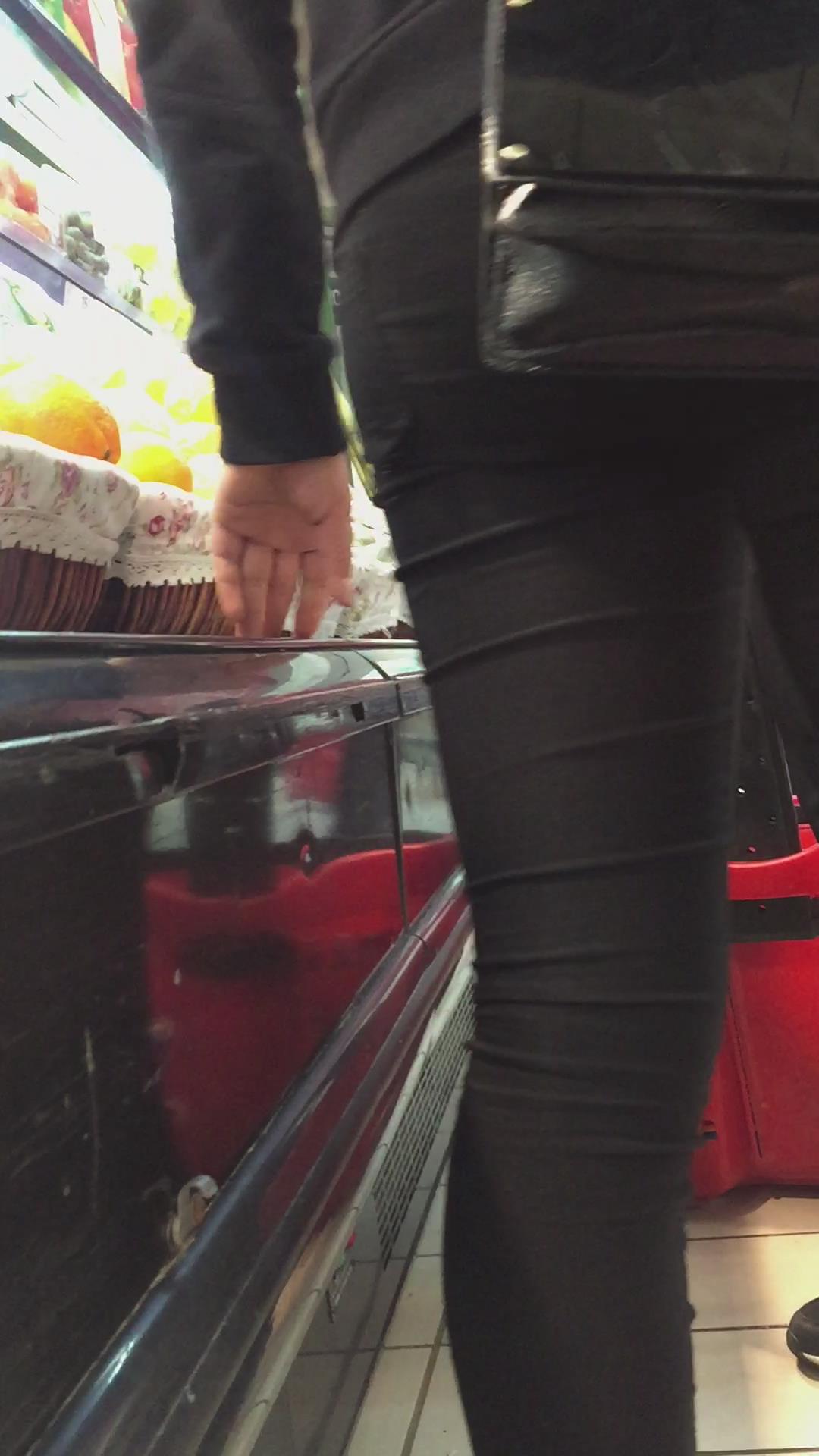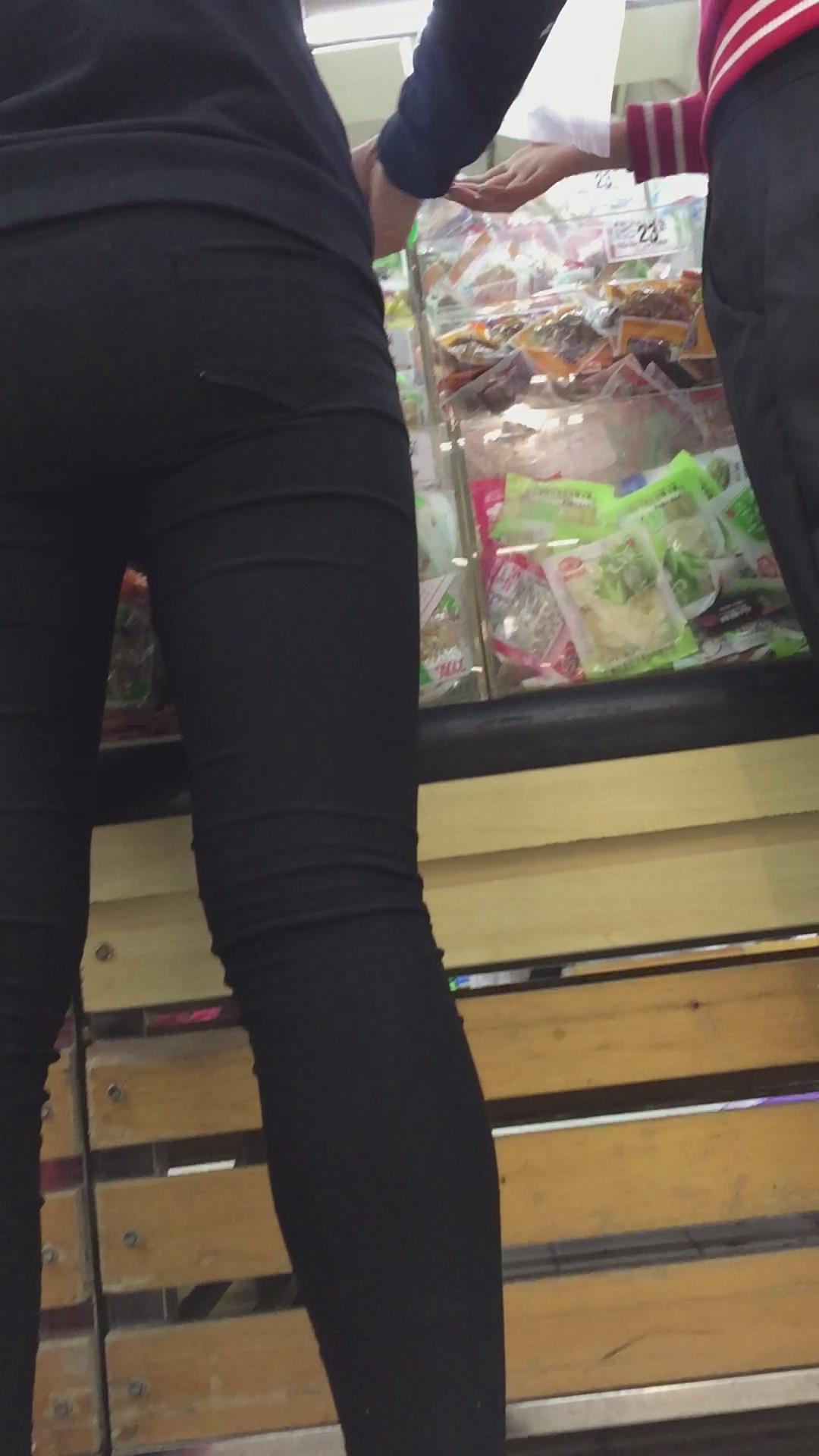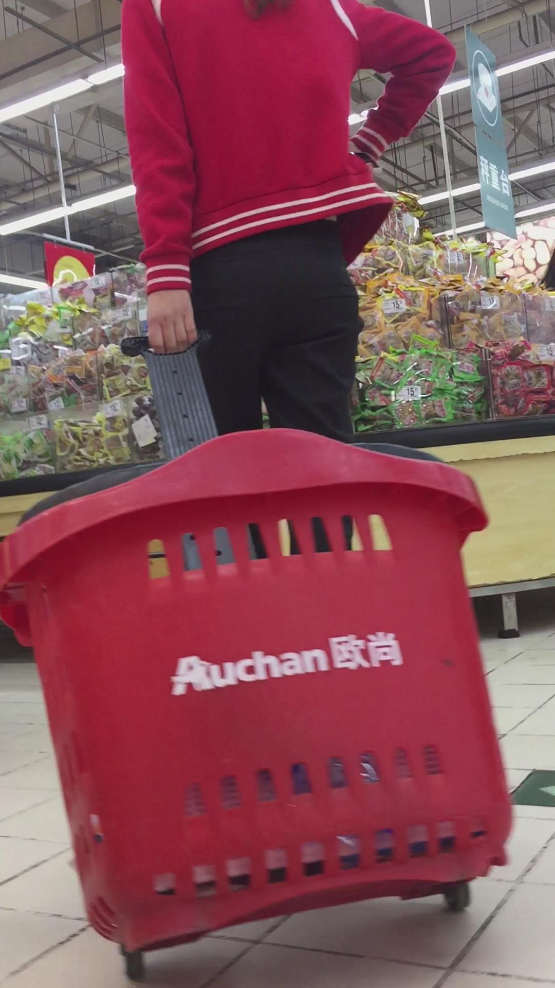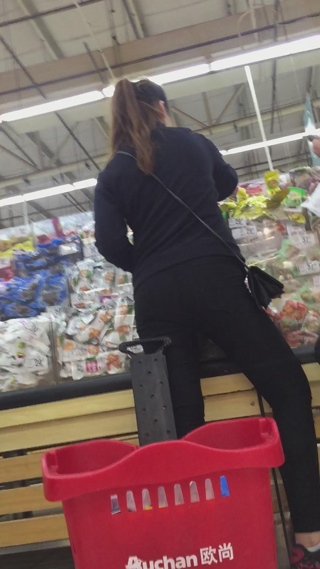 黑色紧身裤肥妹跟密友逛超市。 编号5874