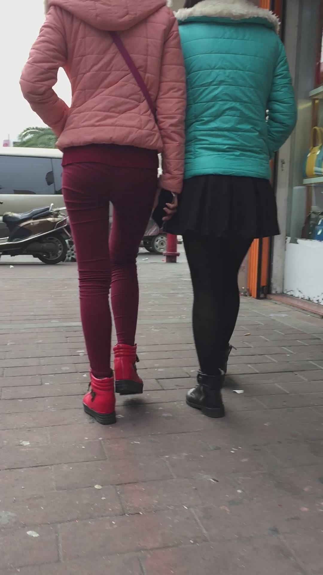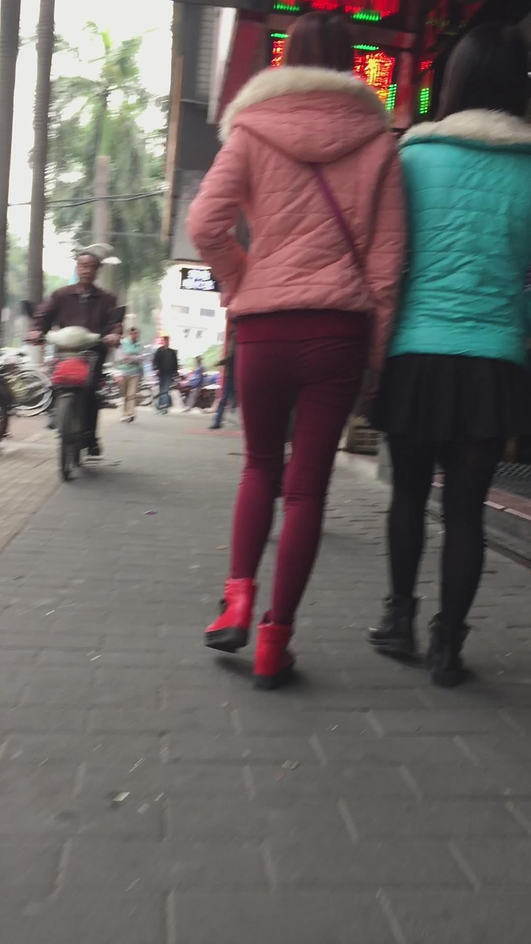 街拍红色紧身裤美眉 编号5877
