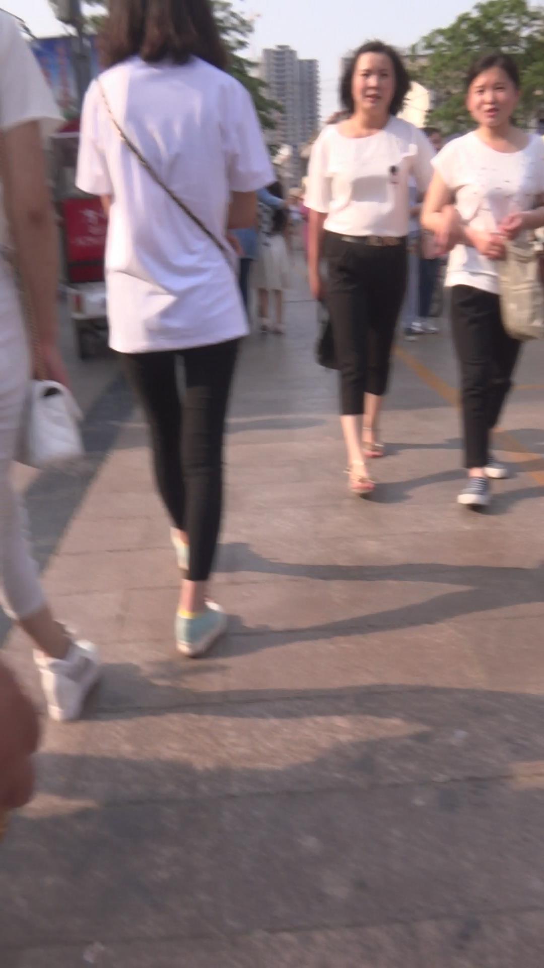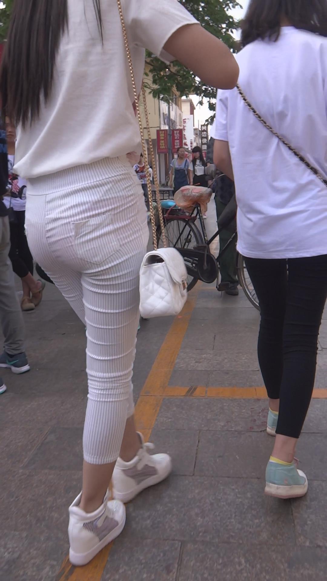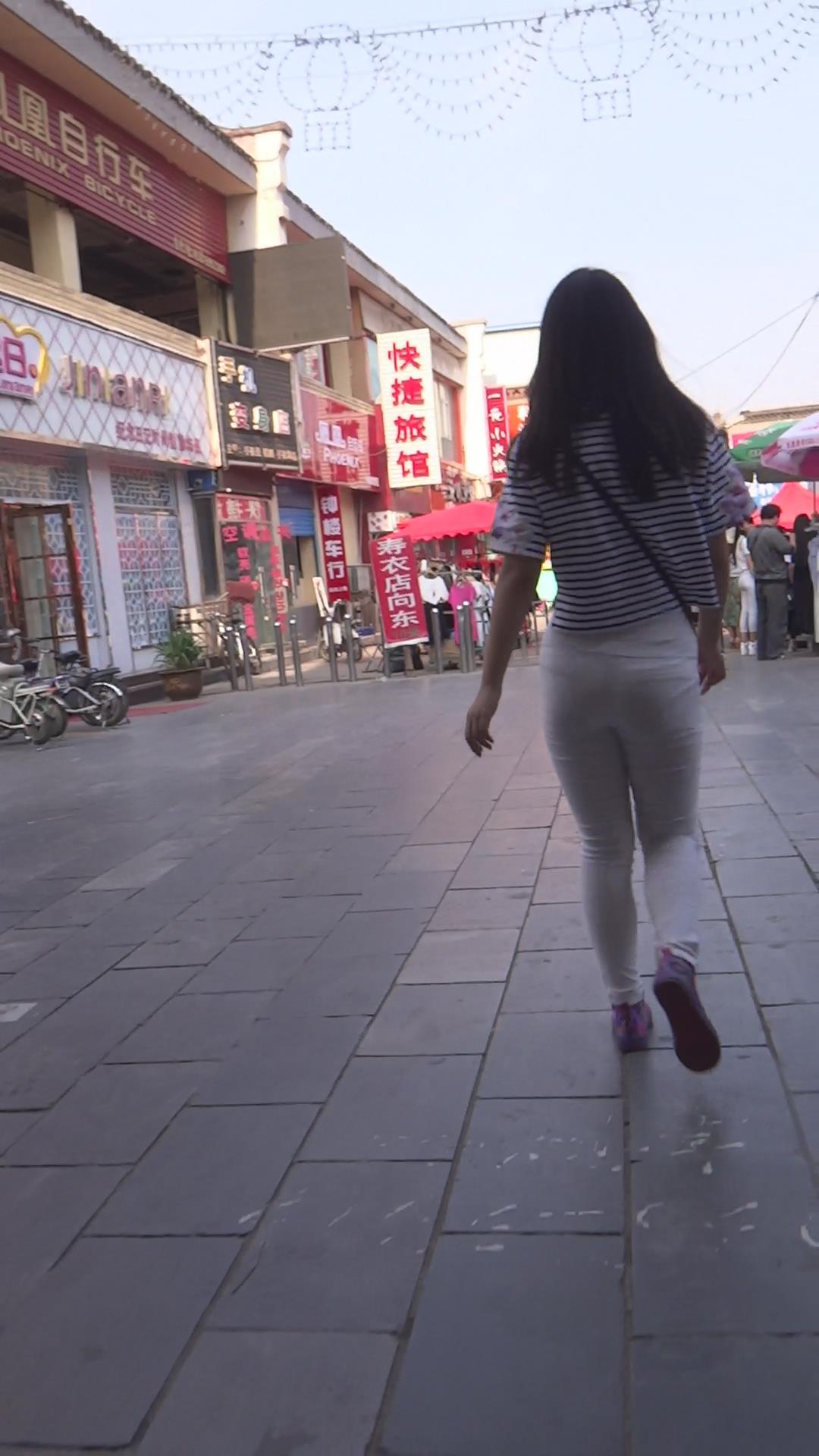 街拍条纹紧身裤圆臀性感美女 编号5885