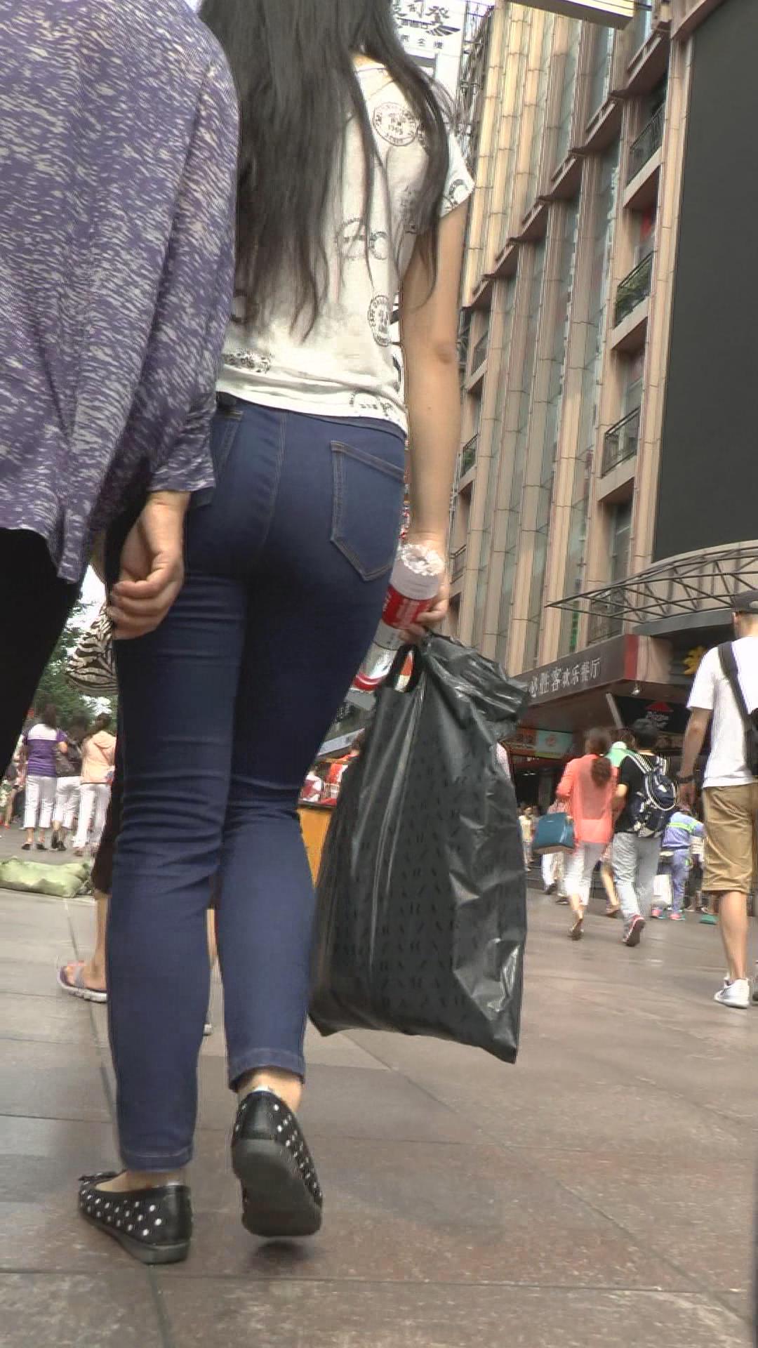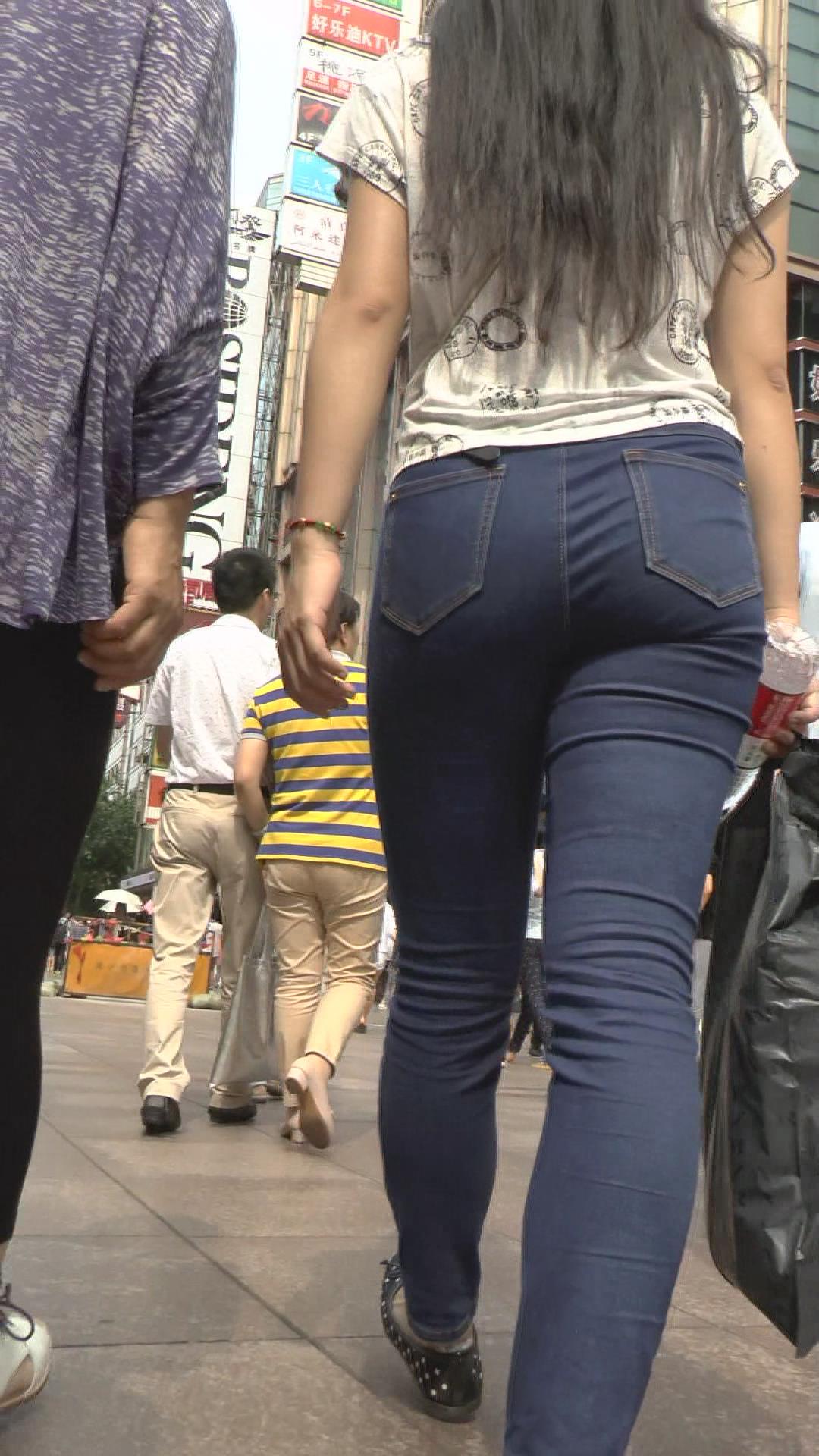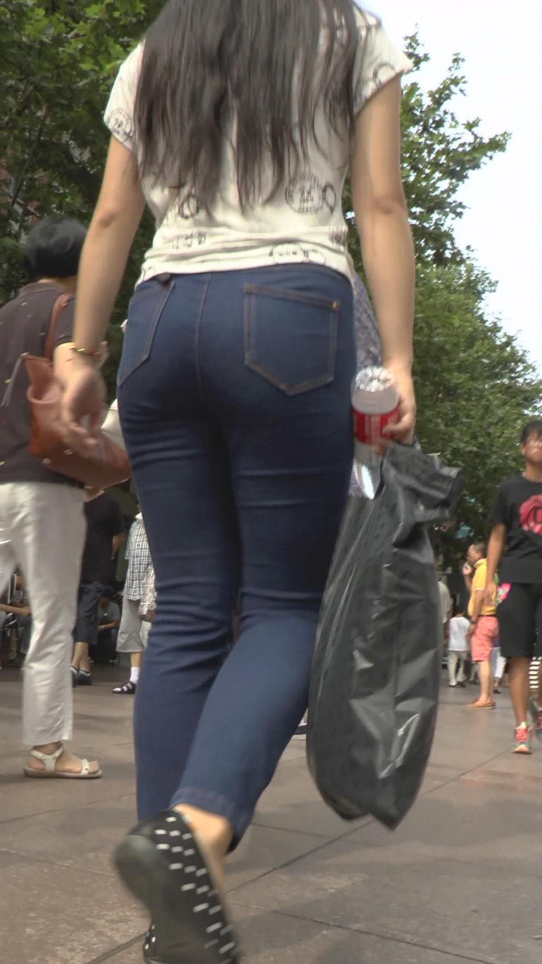 街拍蓝色牛仔裤女孩 编号5897