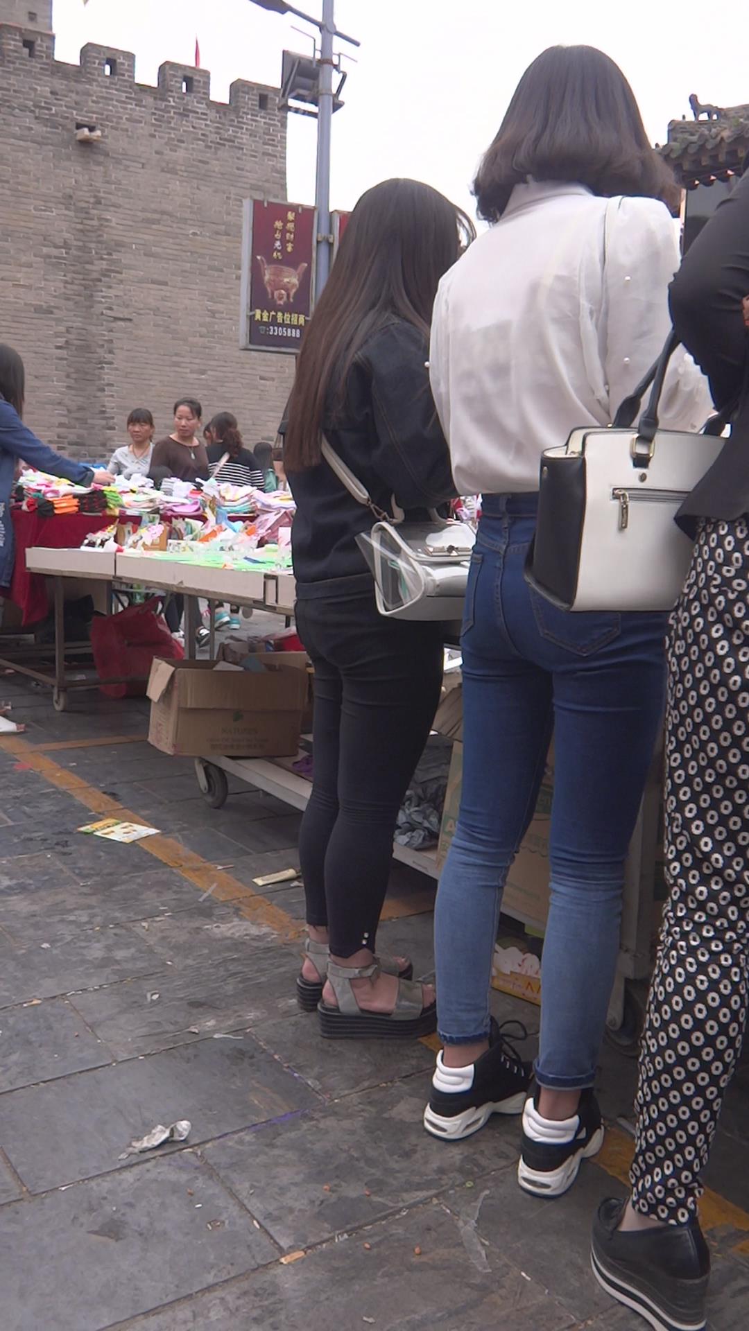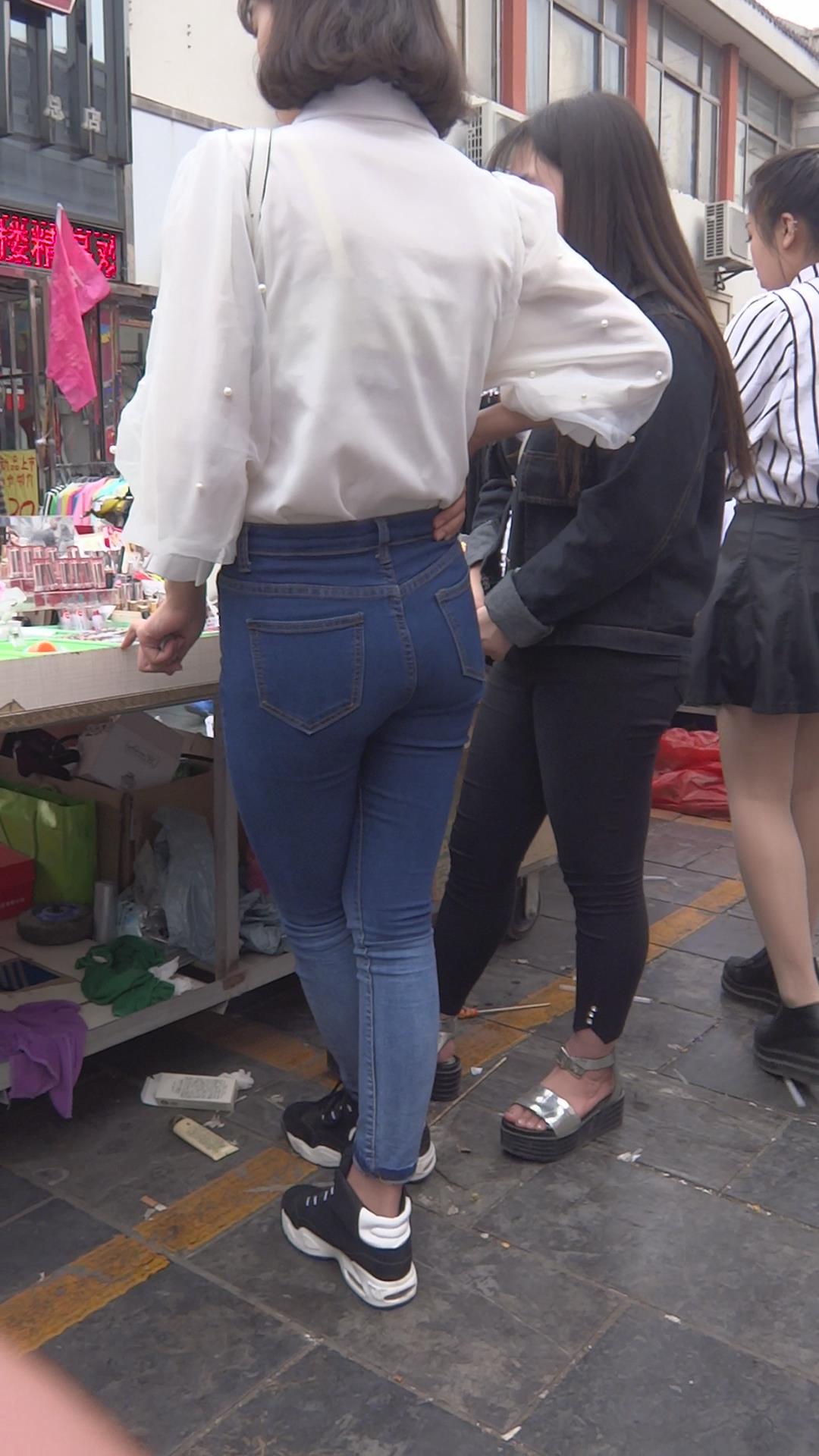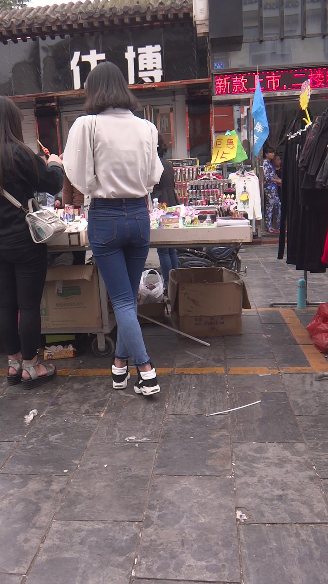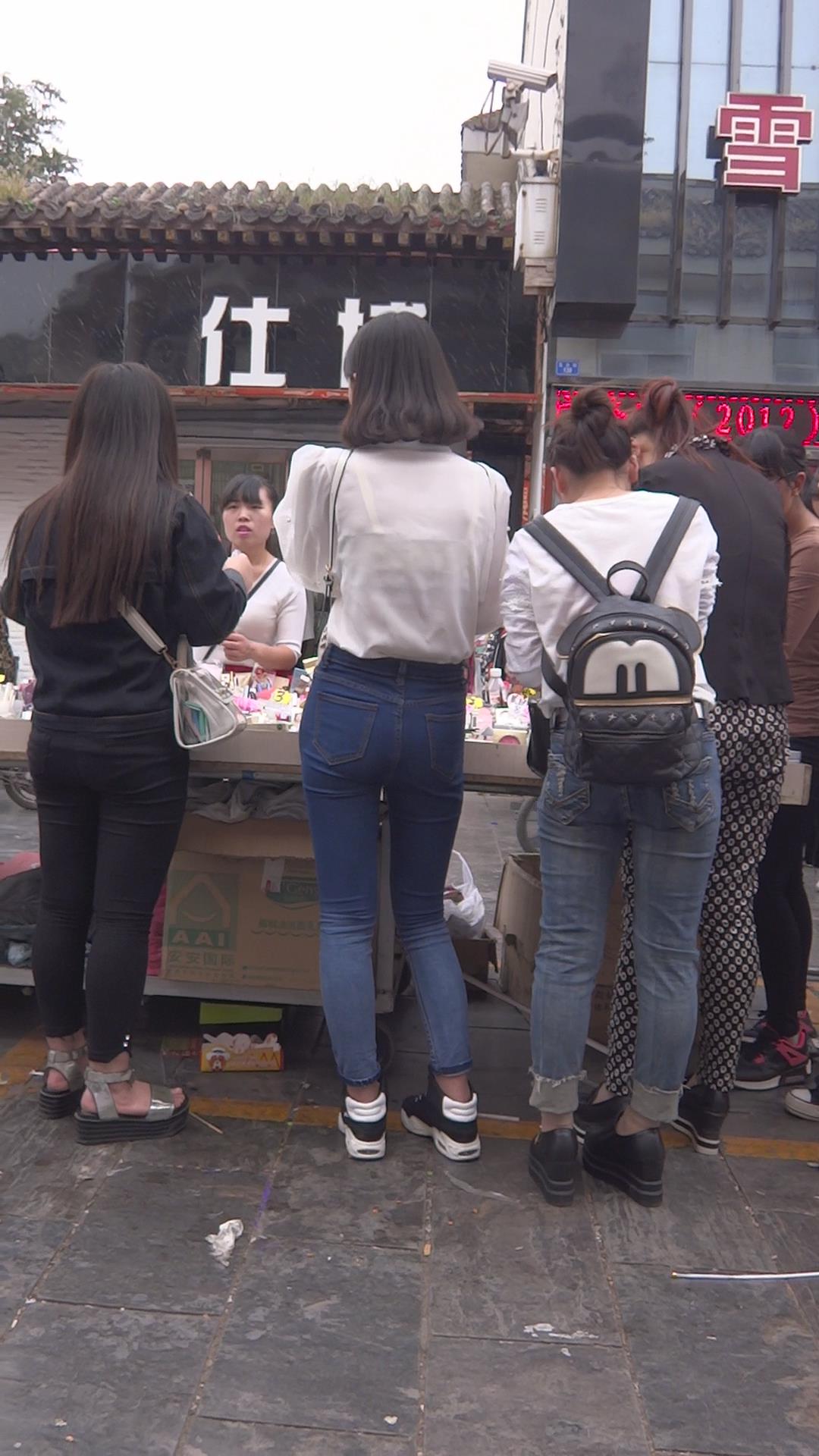 街拍超级紧身蓝色牛仔裤小清新美女 编号5903