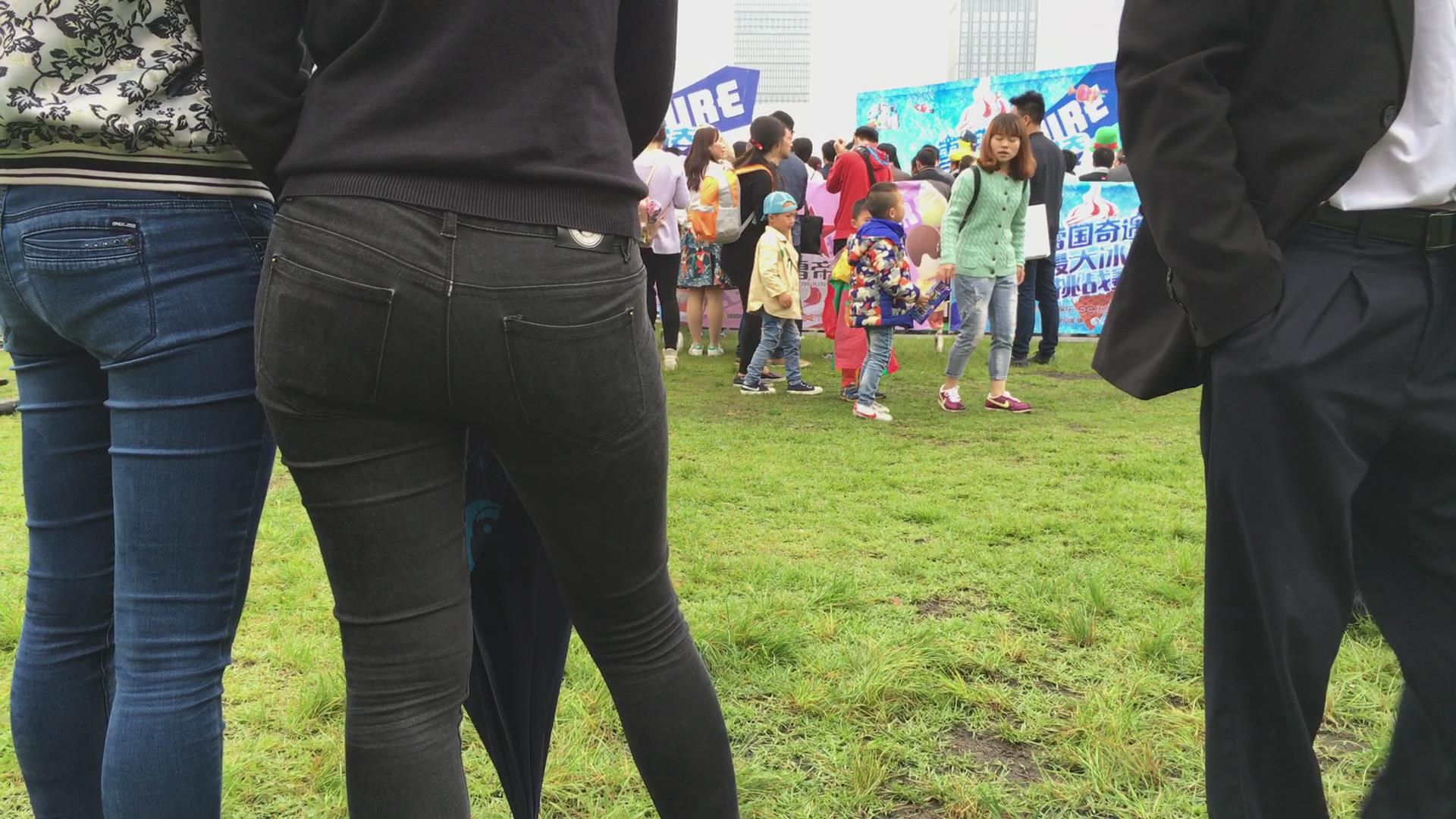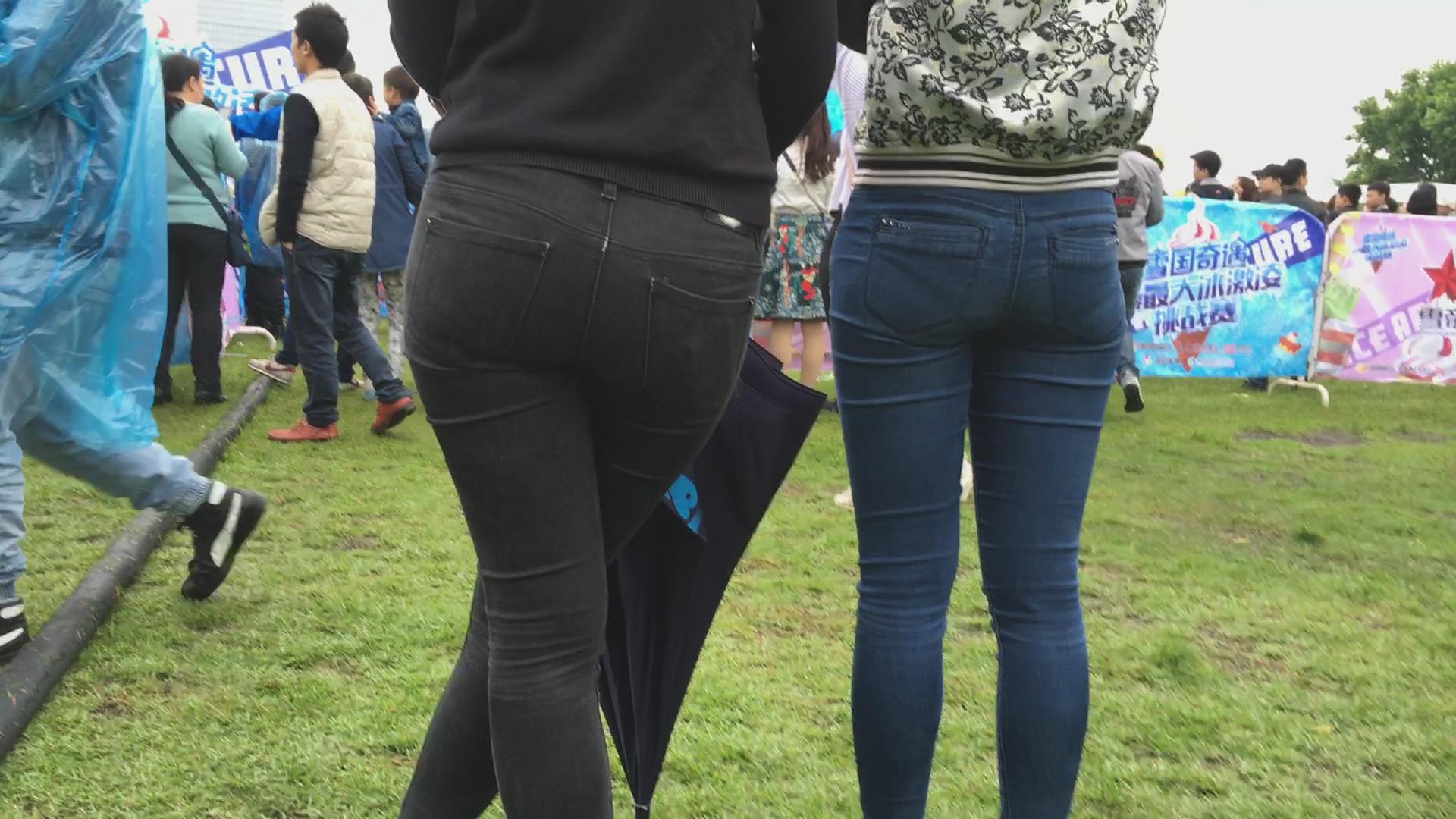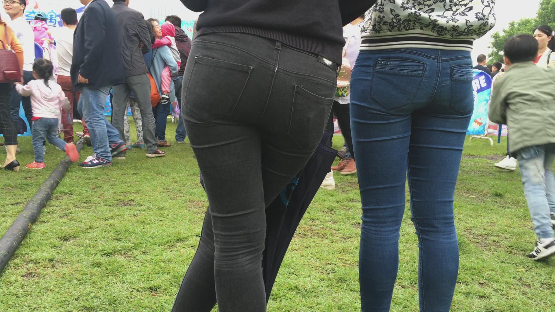 公园草地上后方悄悄拍摄两位美女的美臀。 编号5931