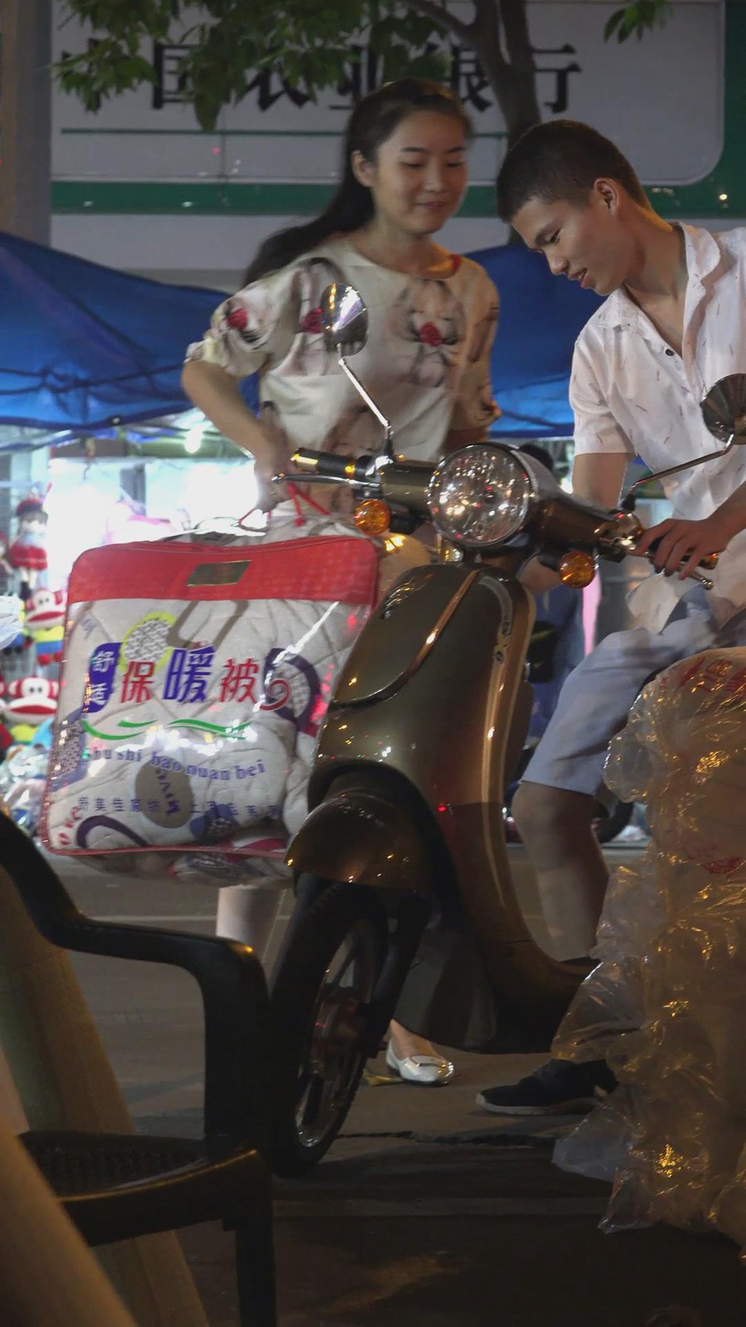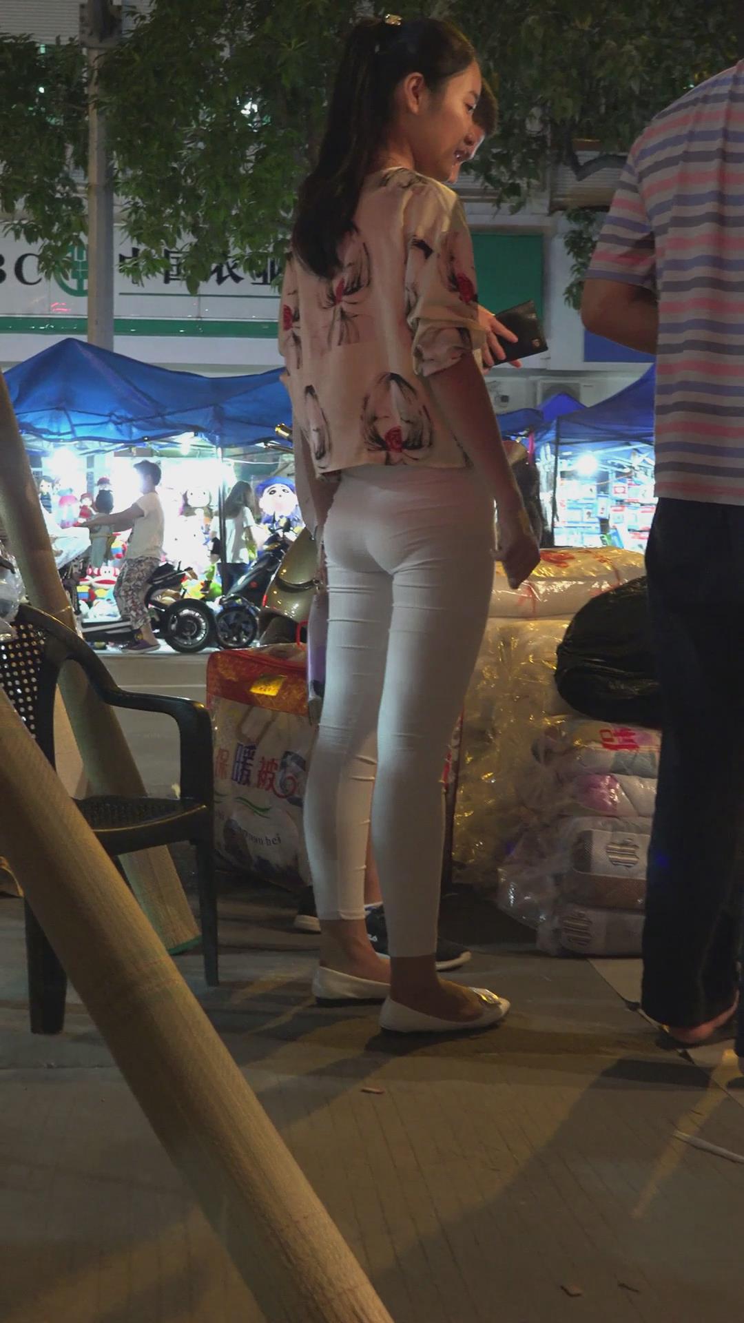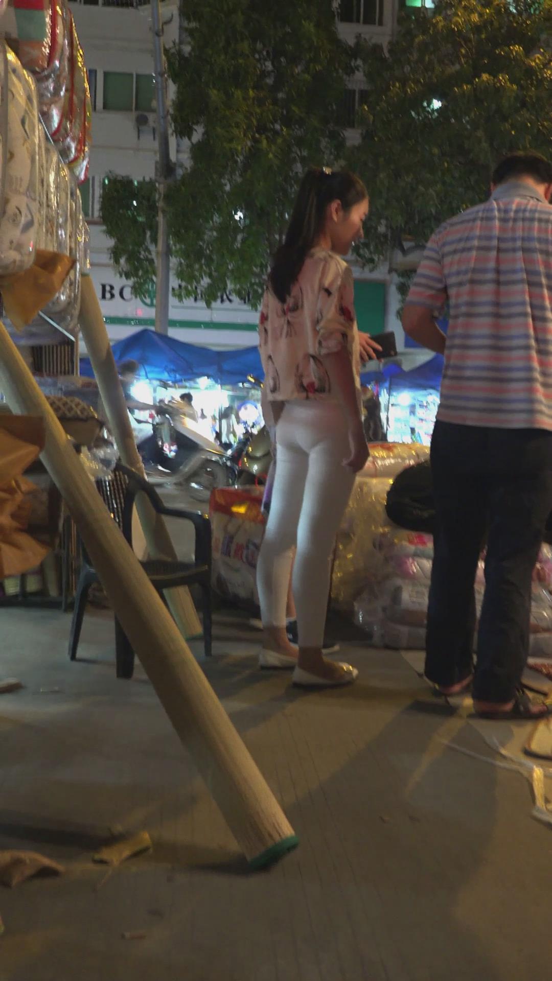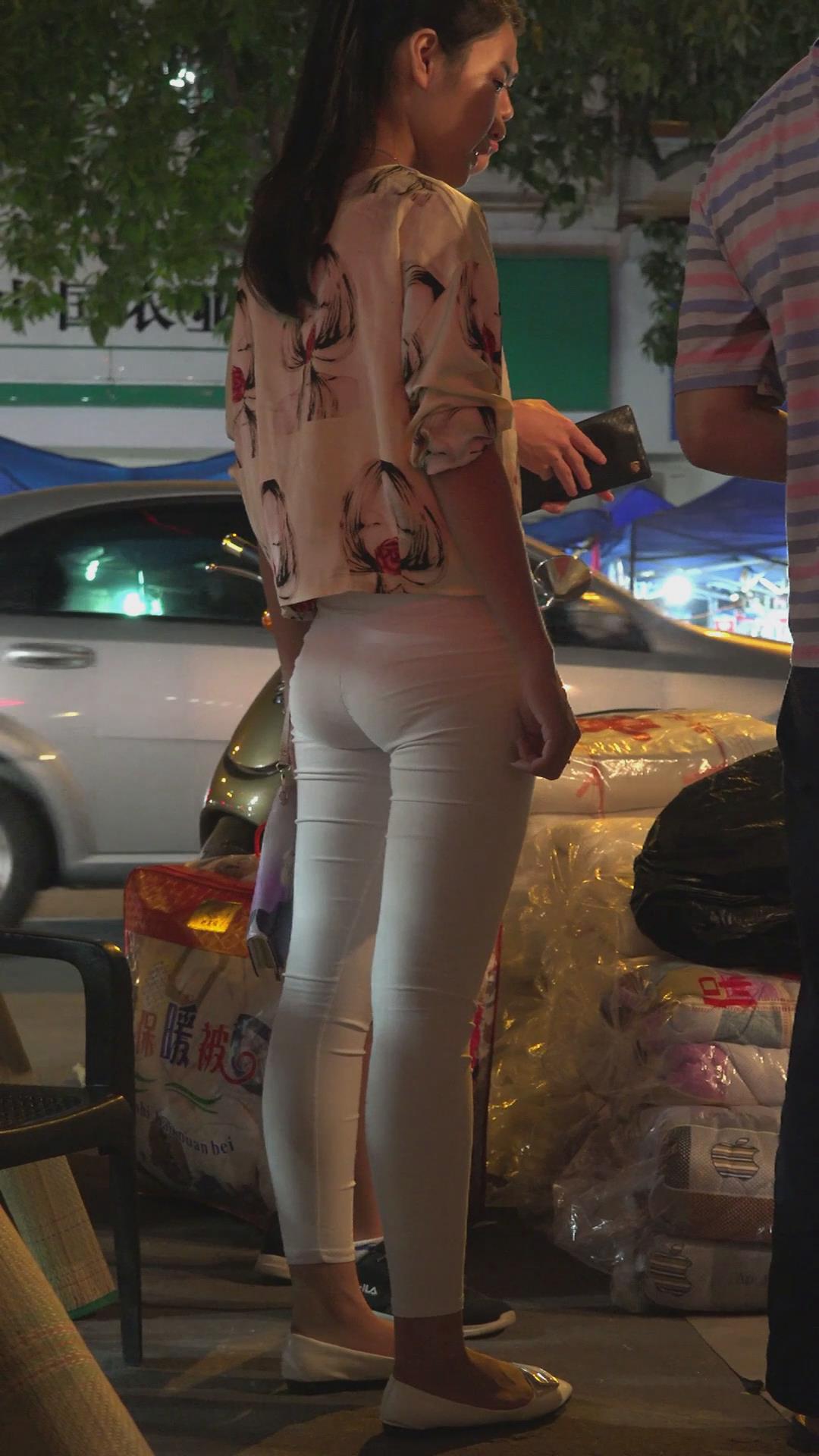 天冷了,白色紧身裤美女买了床被子 编号5935