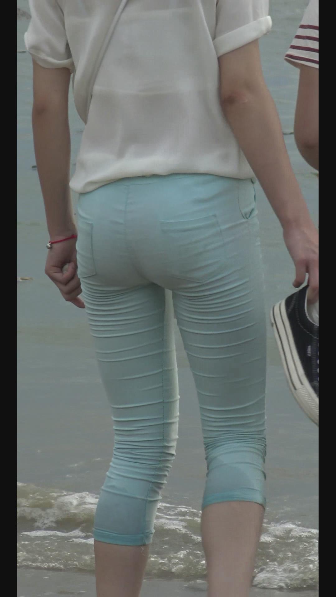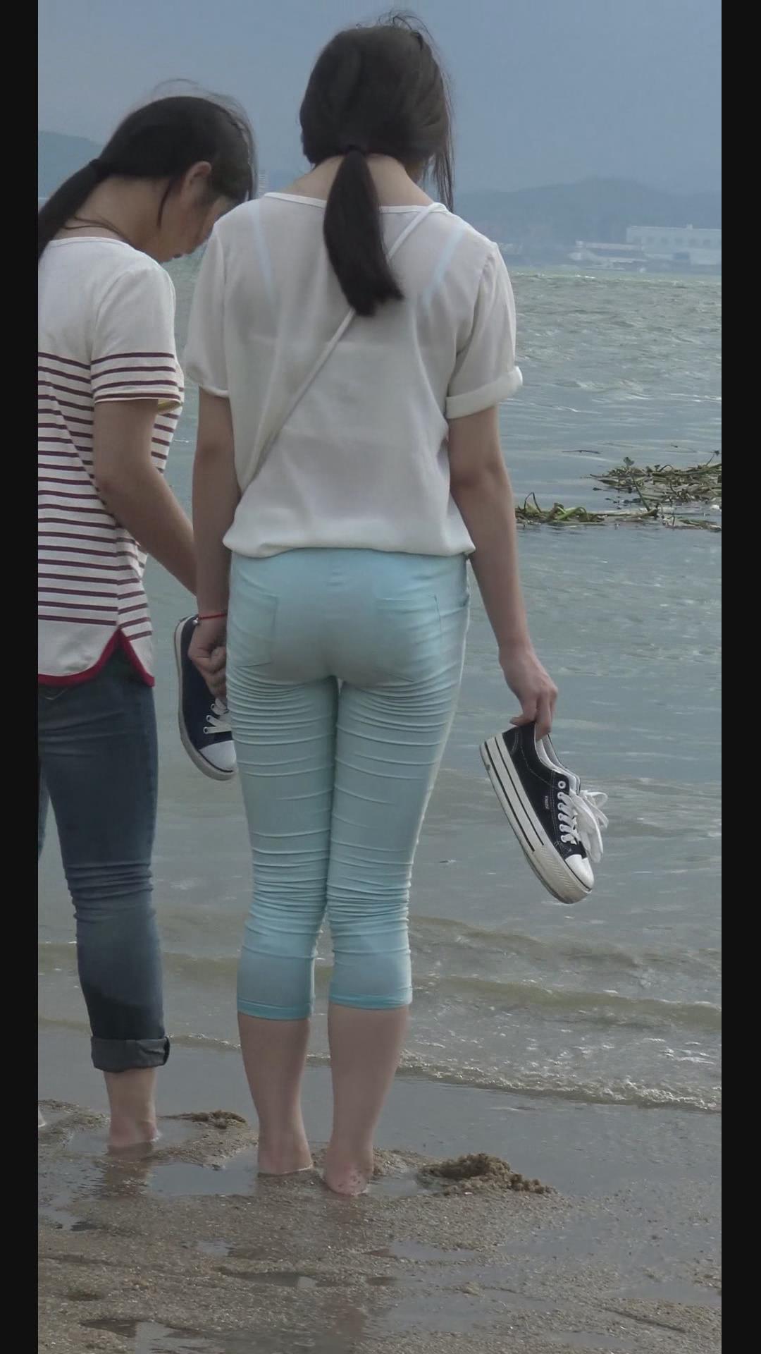 海边戏水的美臀紧身裤少女 编号5940