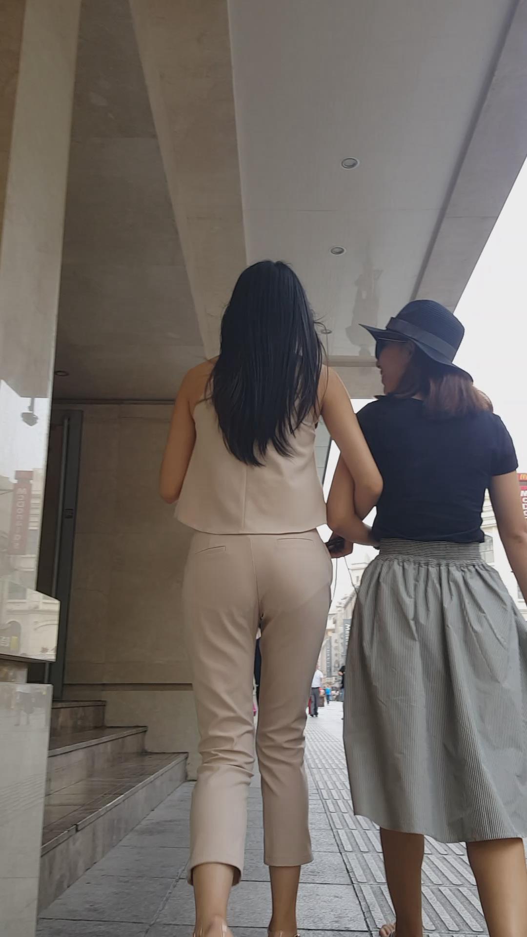 街拍的肉色套装大长腿高跟鞋美女。 编号5967