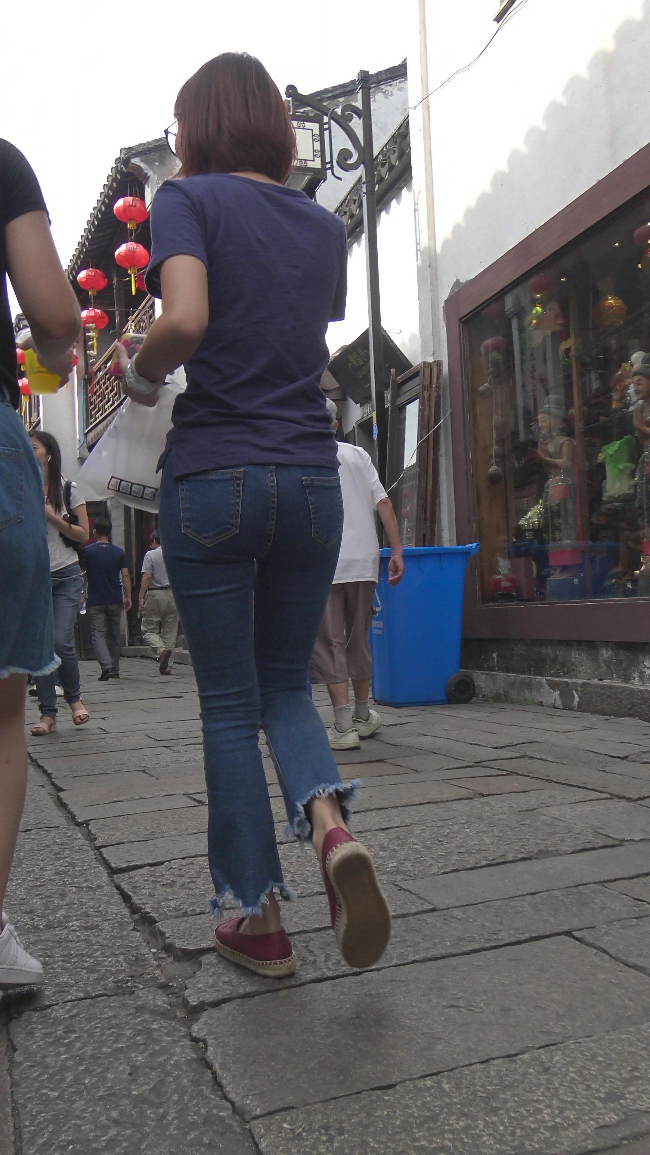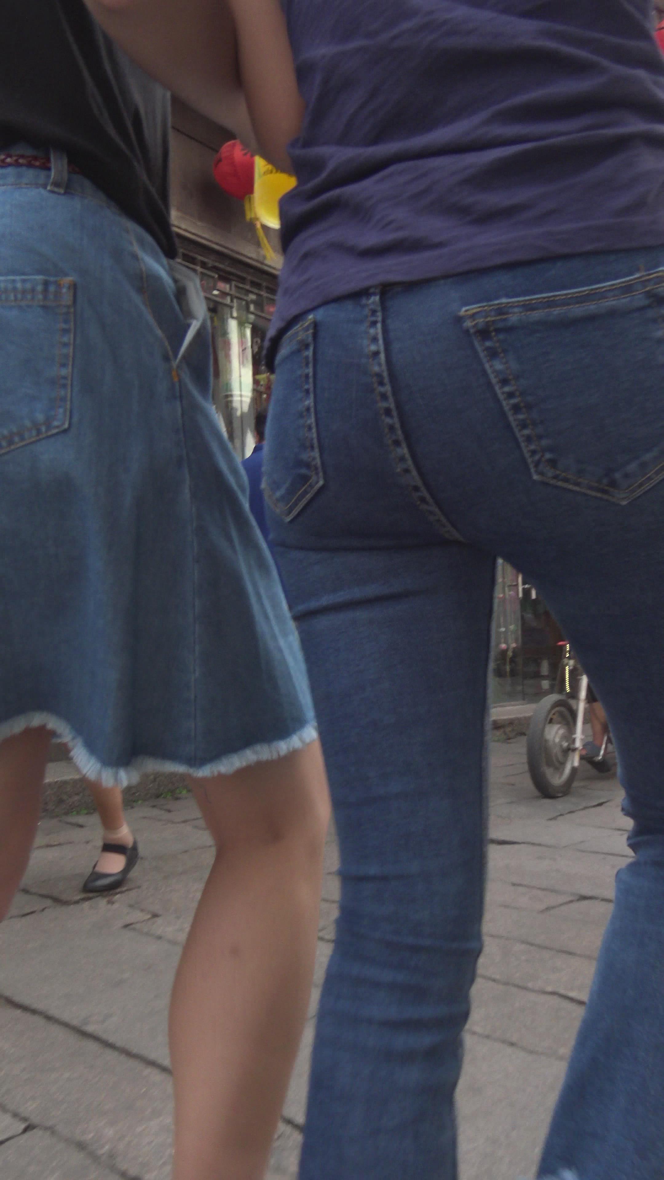 4k-超近距离特写紧身蓝牛美眉的圆臀。 编号5977