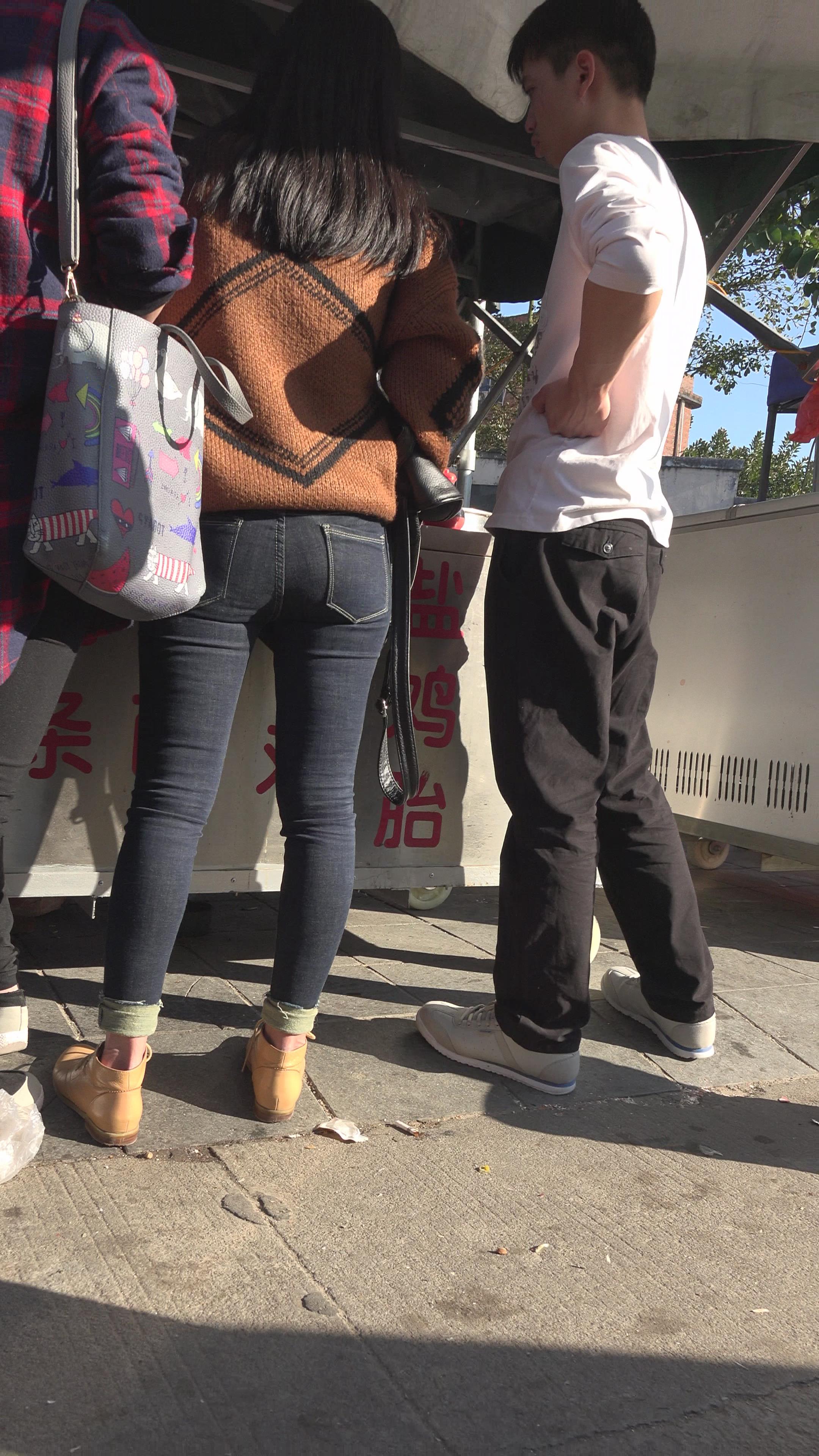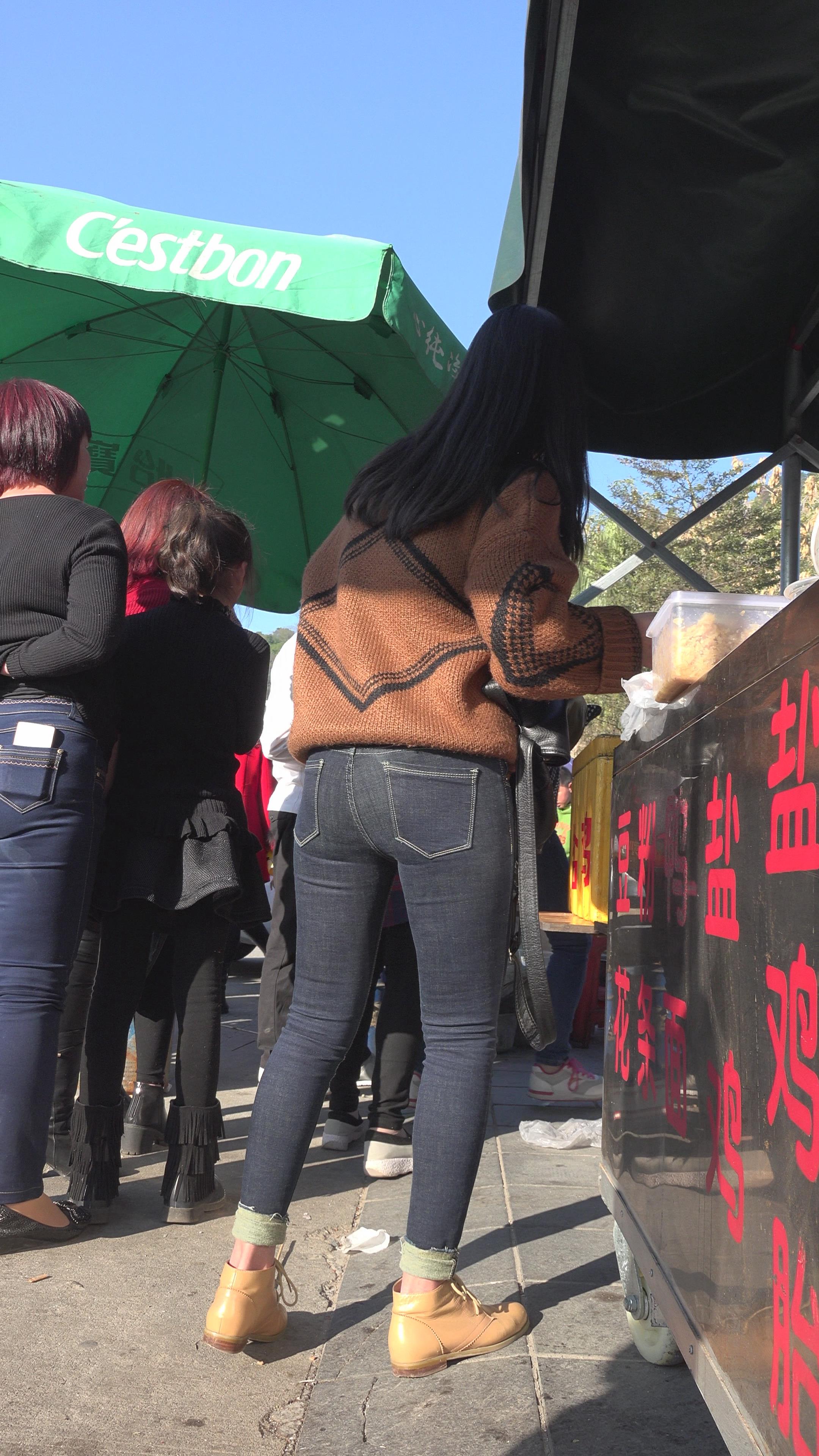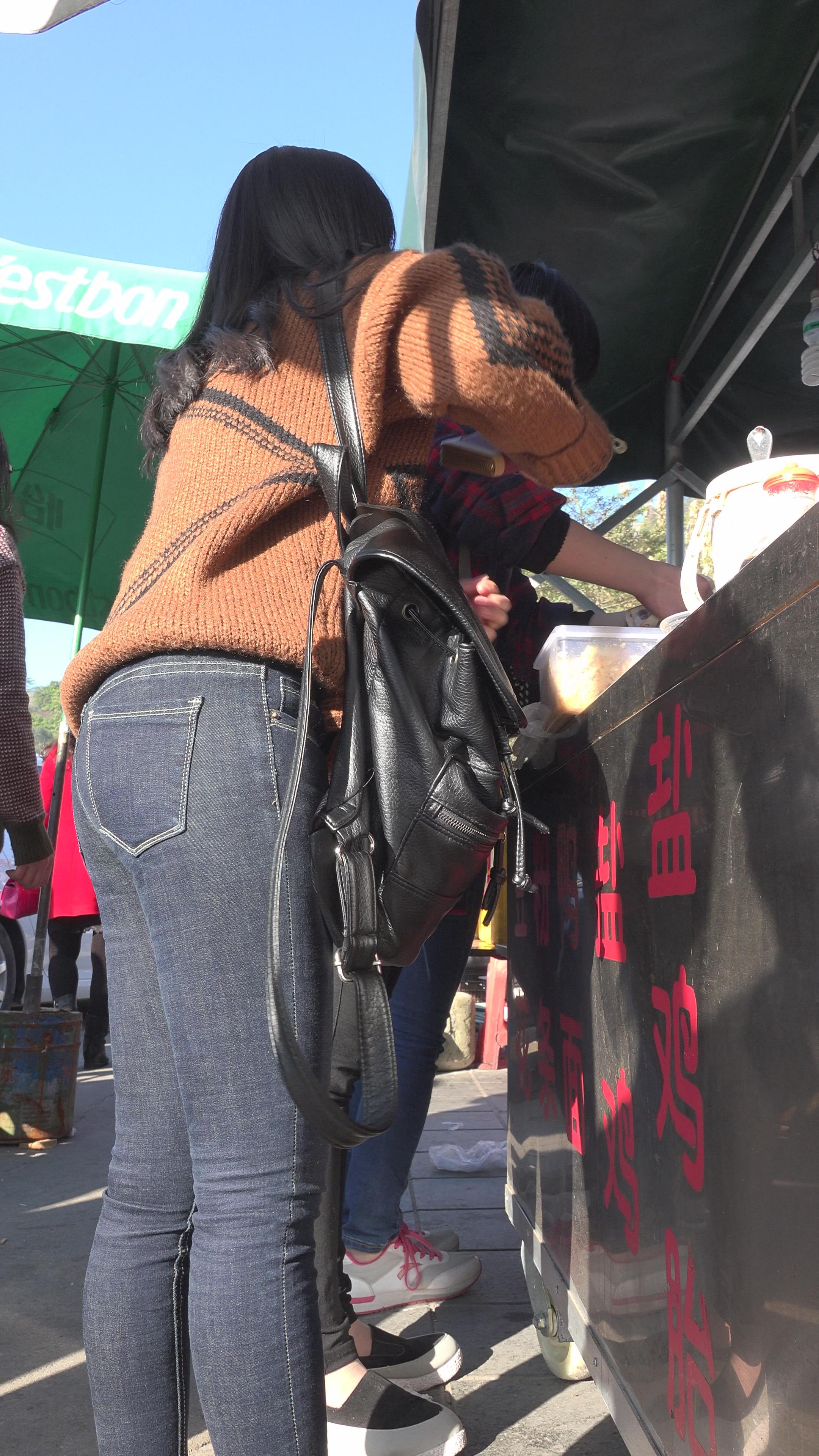 4k-紧身黑牛美女买盐焗鸡。 编号5981