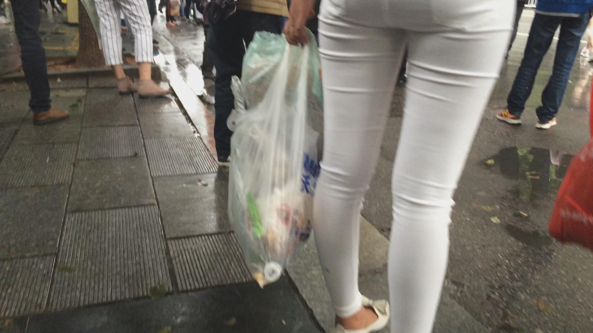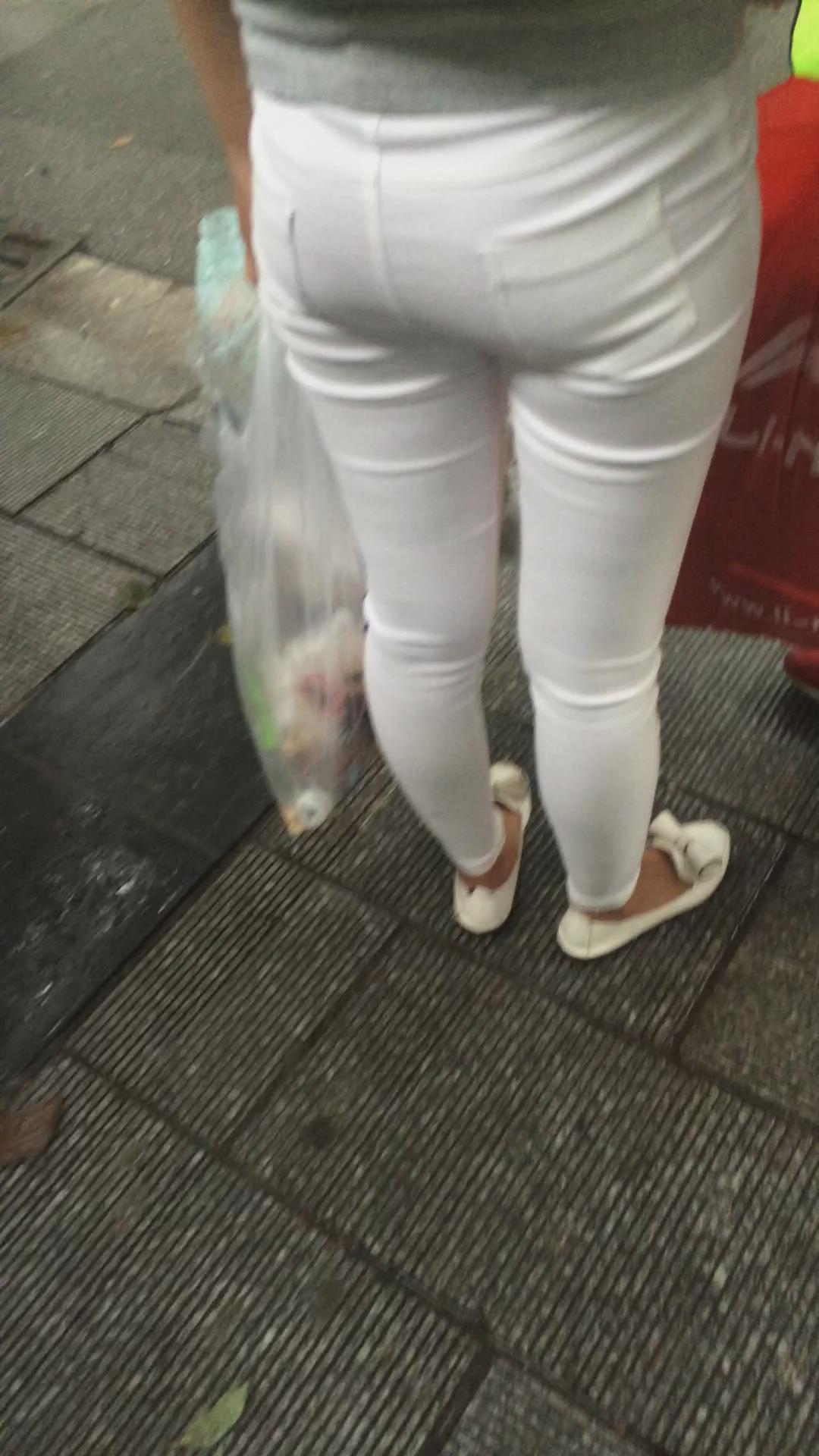 街拍极品紧绷宽臀白裤美眉等公交。 编号5995