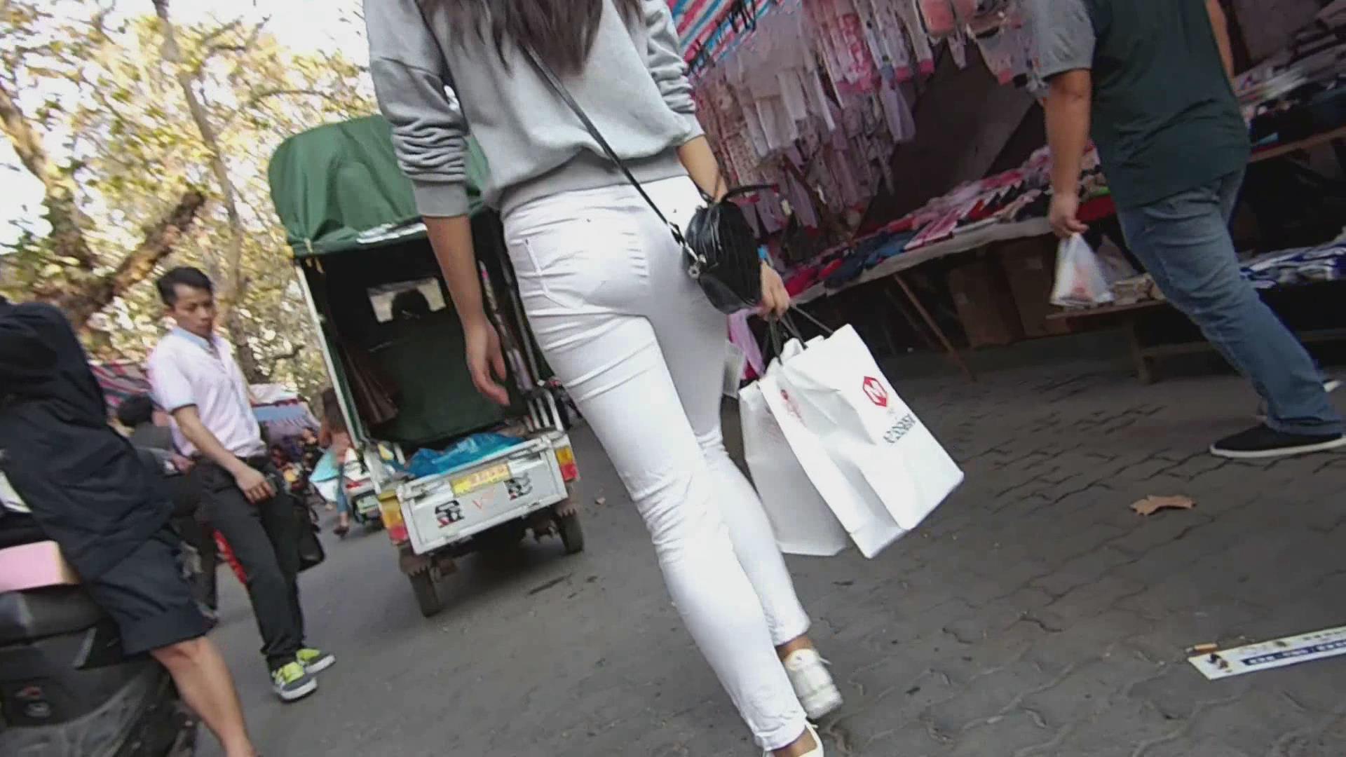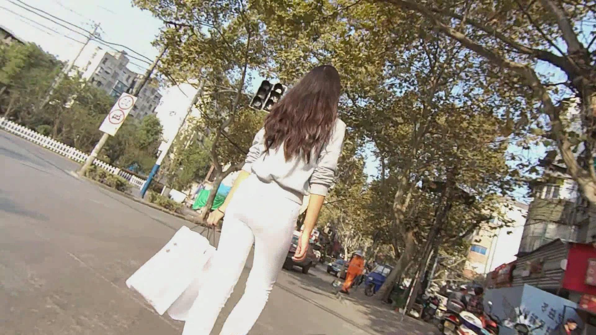 街拍紧身白裤土老妹 编号6014